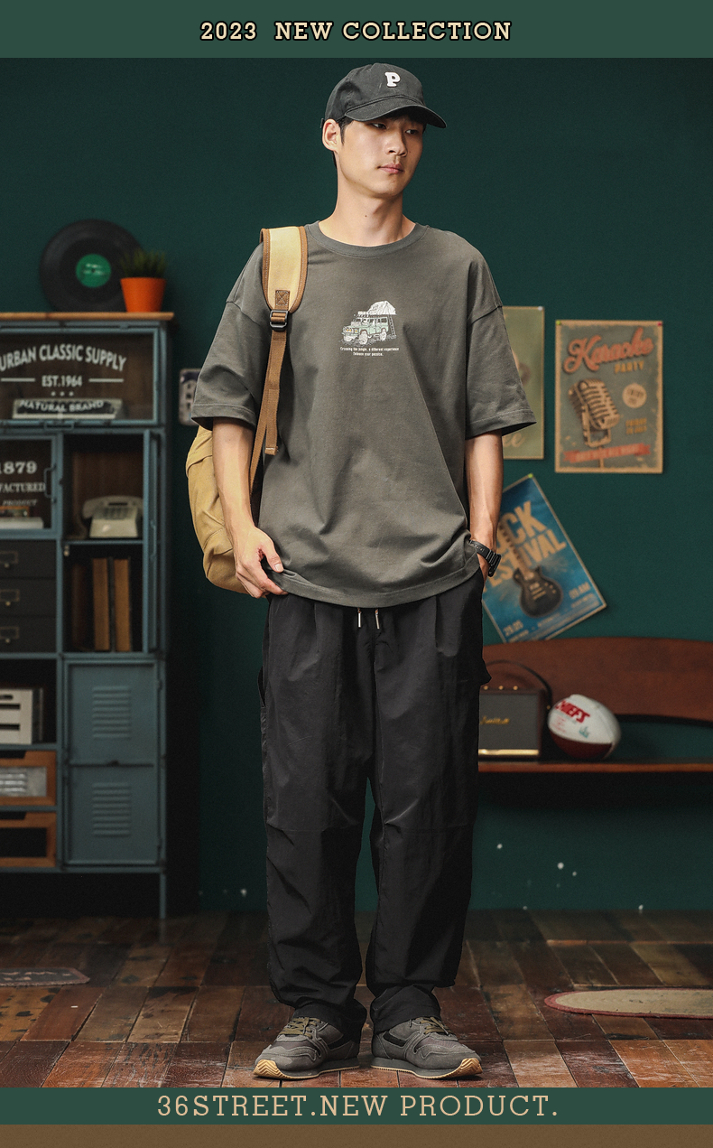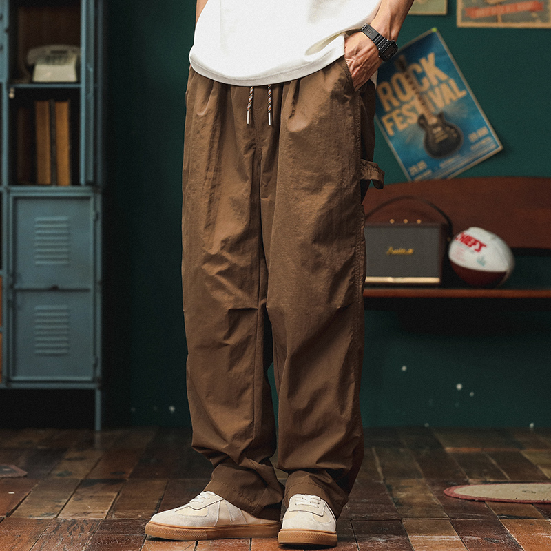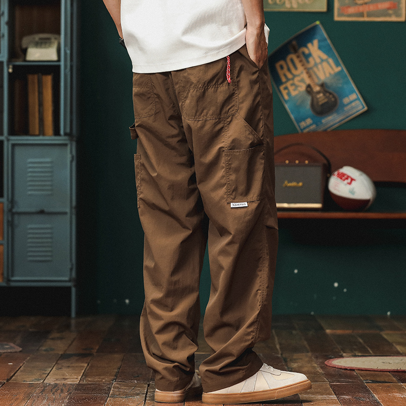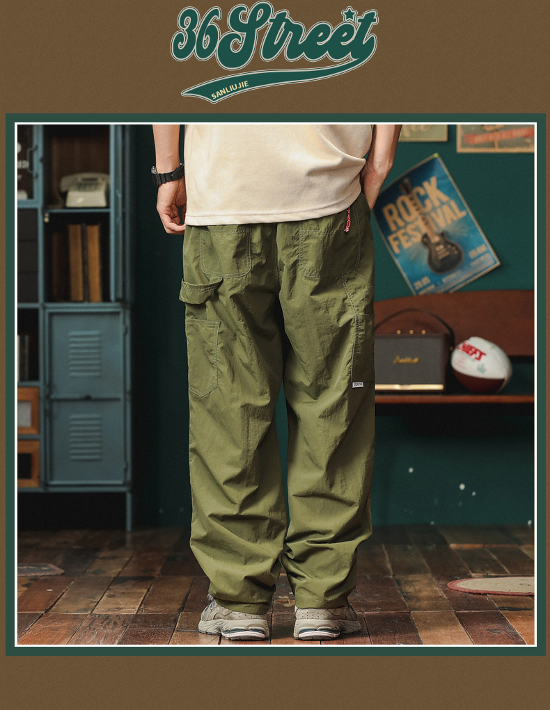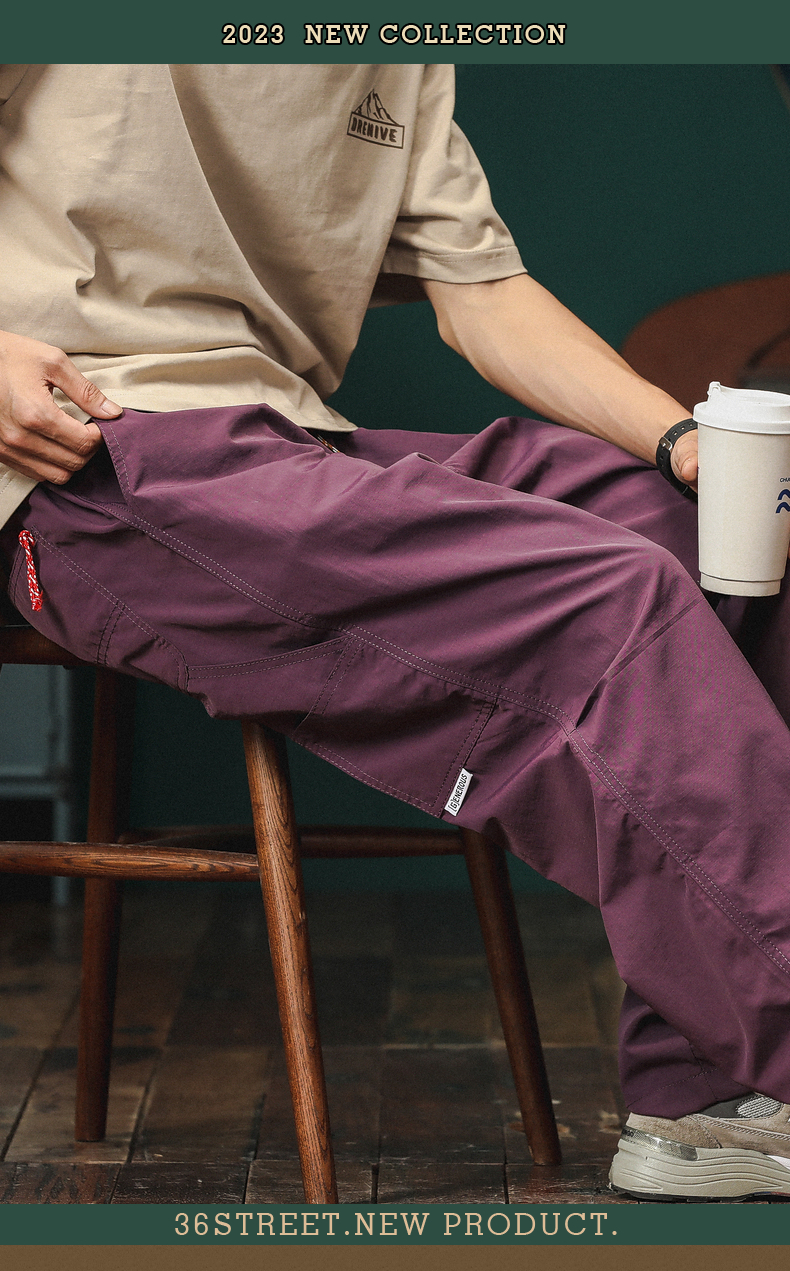 日系潮牌戶外露營衝鋒褲男薄款速乾工裝褲防潑水秋季直筒休閒長褲