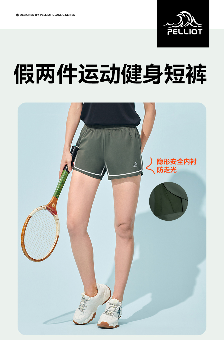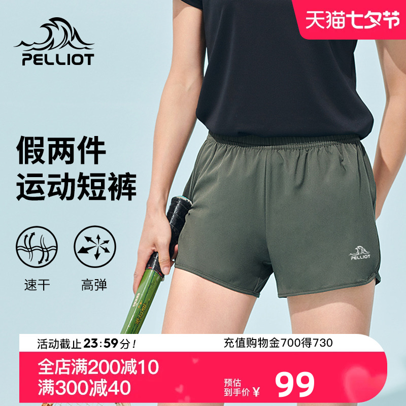 伯希和戶外運動短褲女士夏季防走光假兩件跑步健身褲寬鬆瑜伽短褲