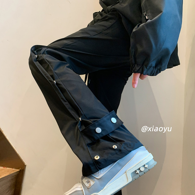排扣衝鋒褲女登山戶外運動褲春秋夏季薄款寬鬆防風防水大尺碼工裝褲