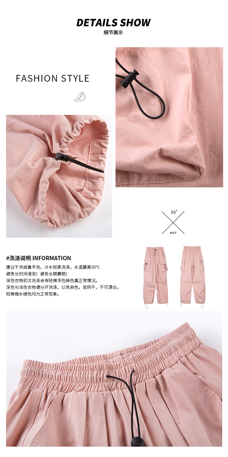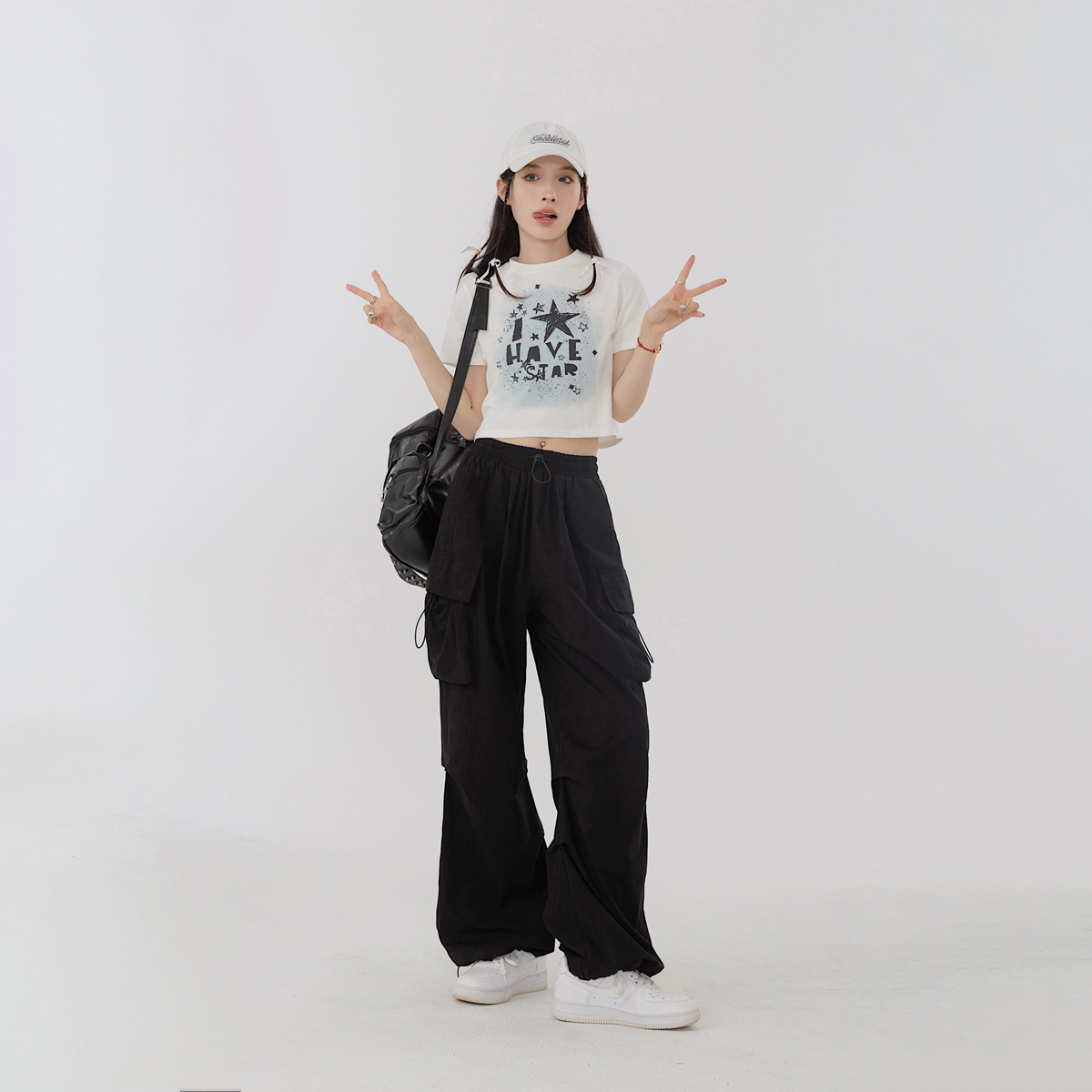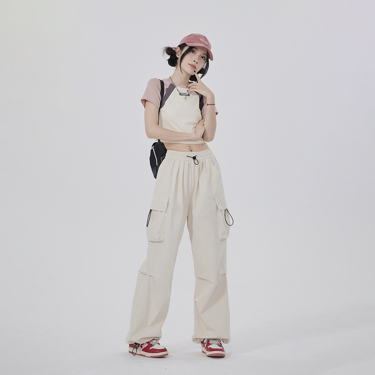 吵吵家工裝休閒褲女夏季高腰寬鬆小個子美式抽繩設計感小眾運動褲