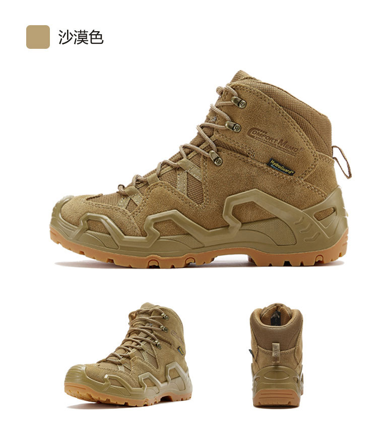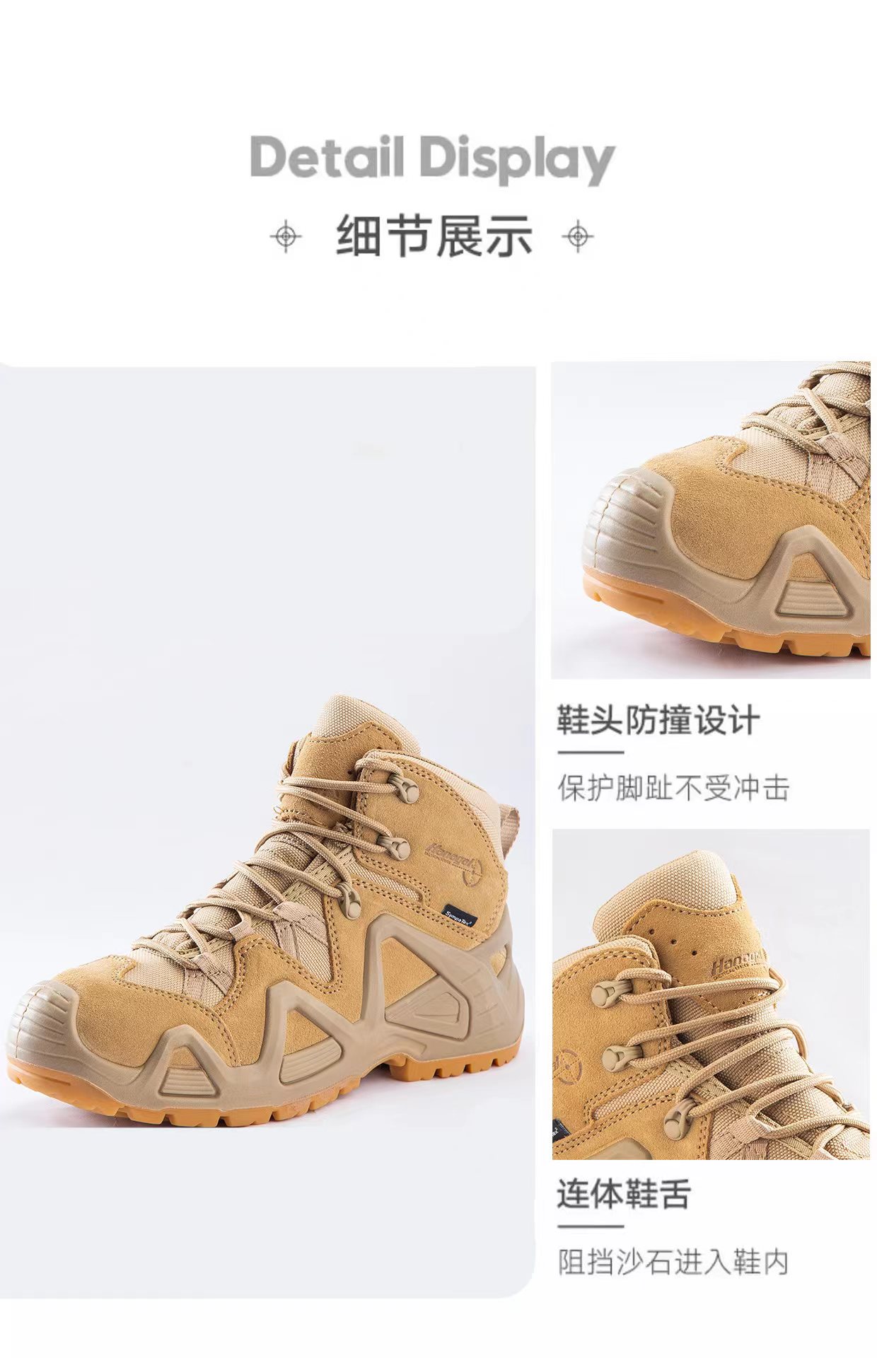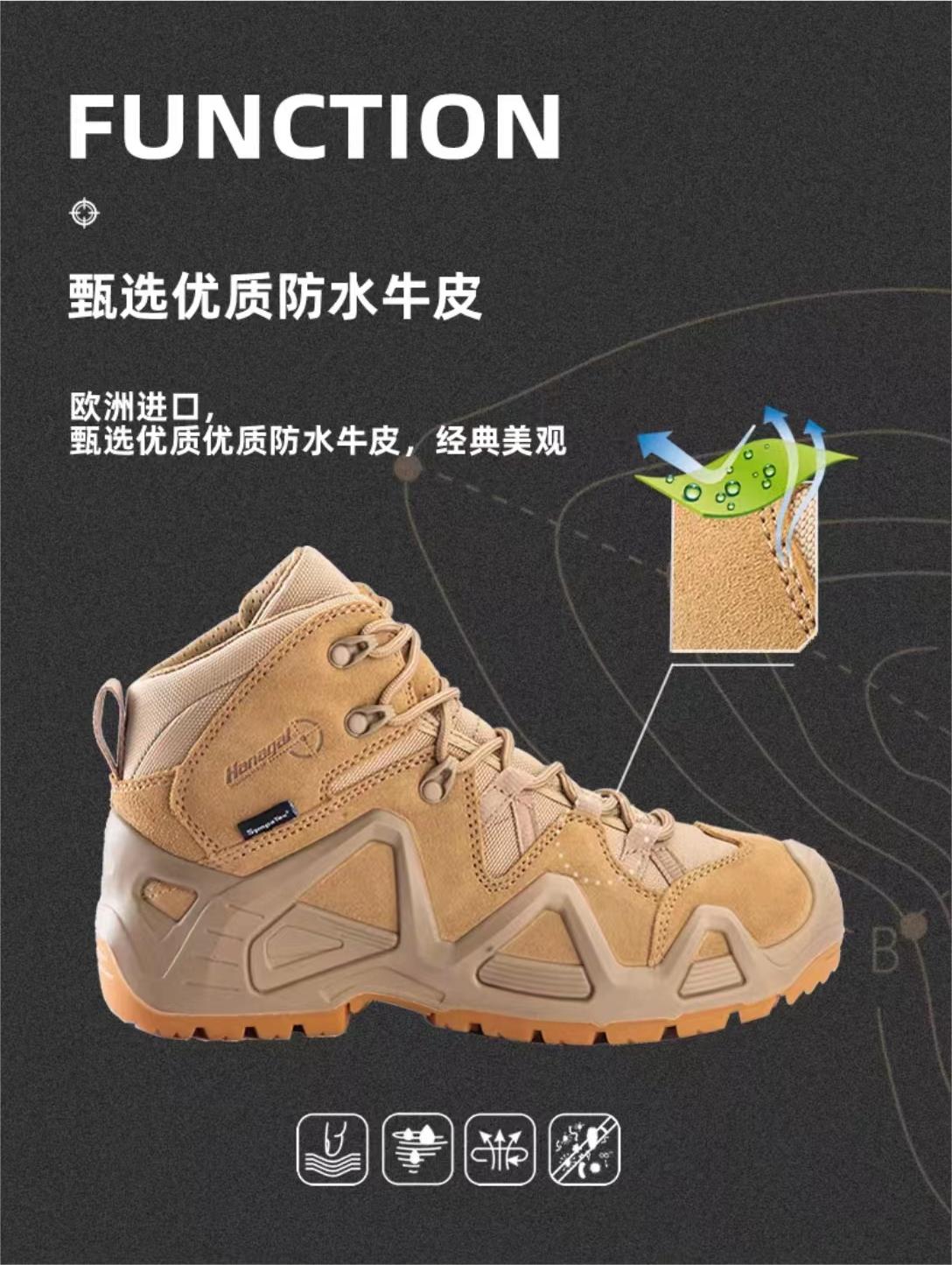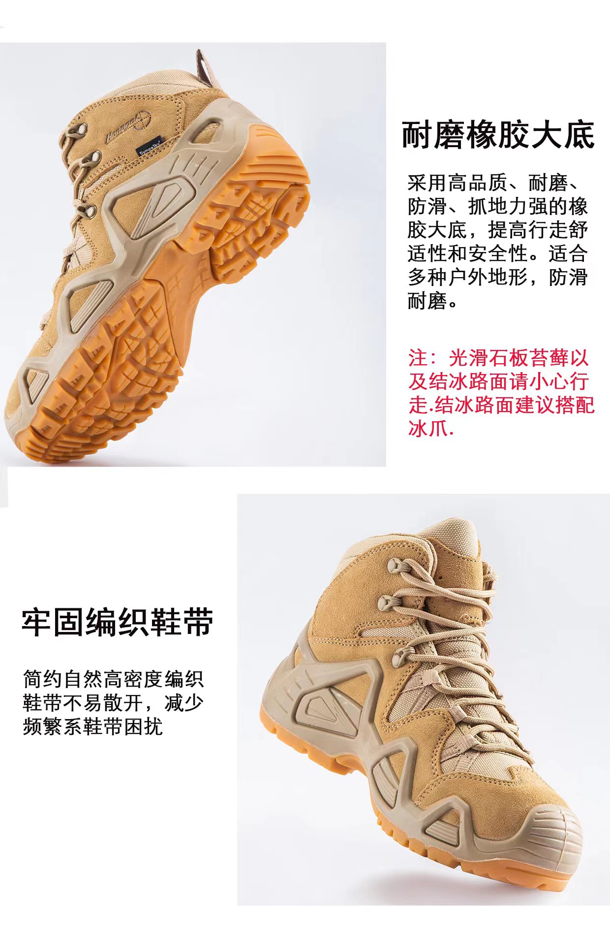 悍戈戶外登山鞋徒步鞋男女防水作戰靴沙漠靴沙色中筒戰術靴作戰訓練鞋