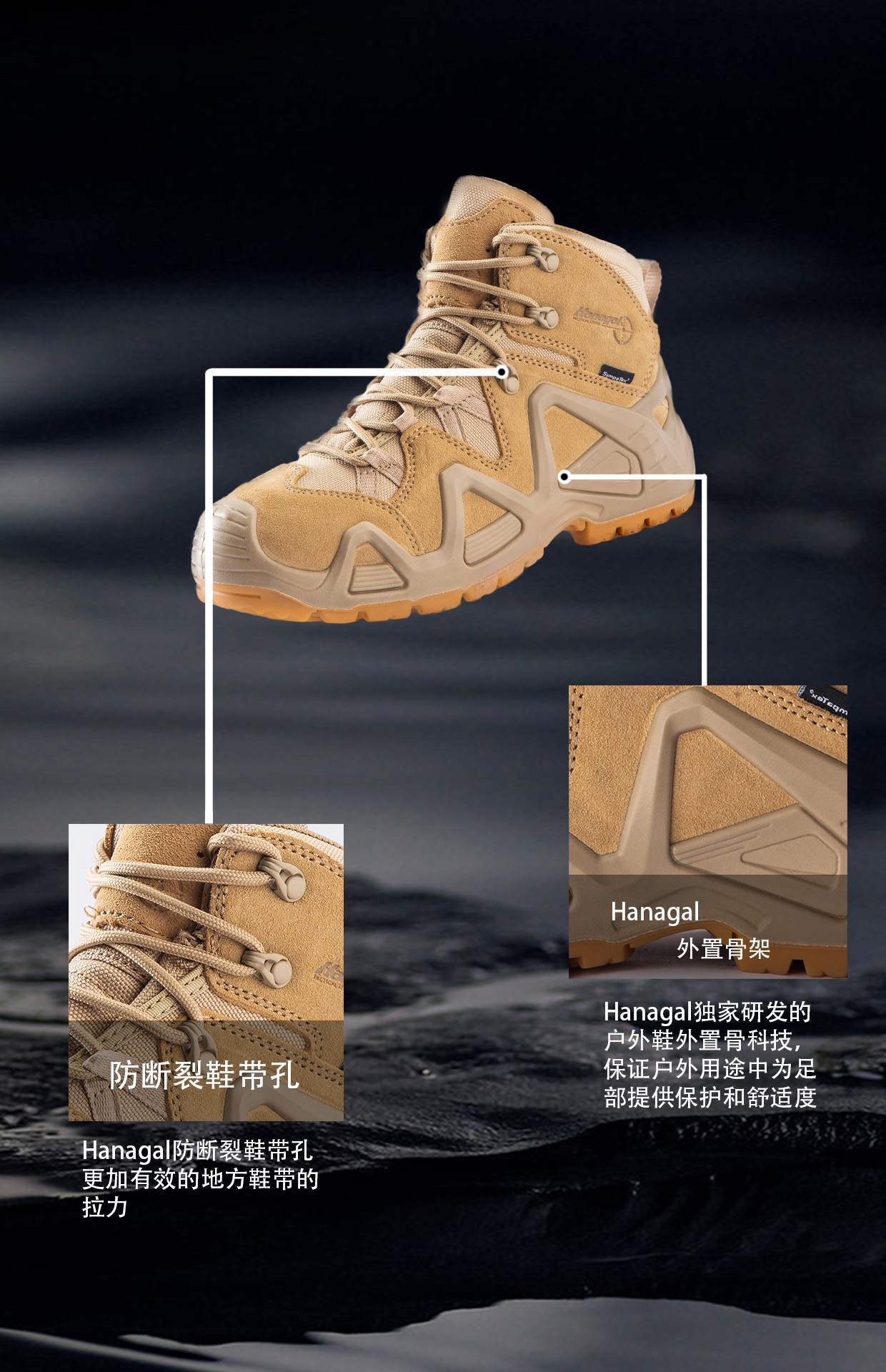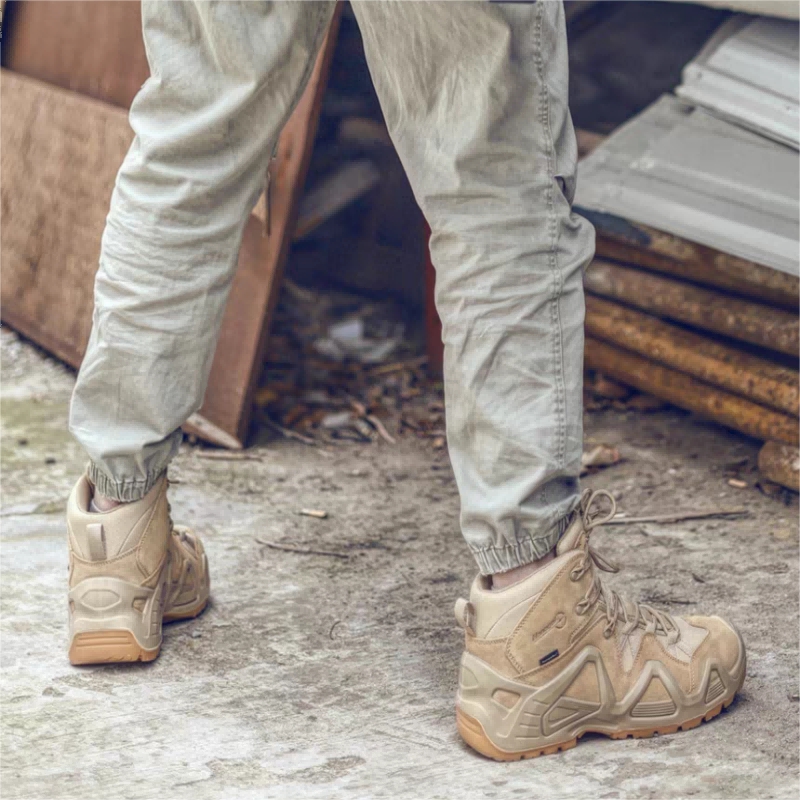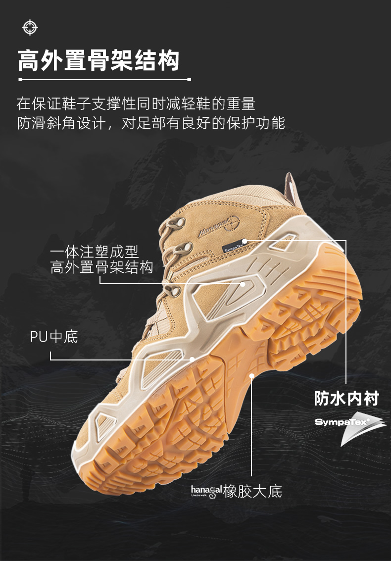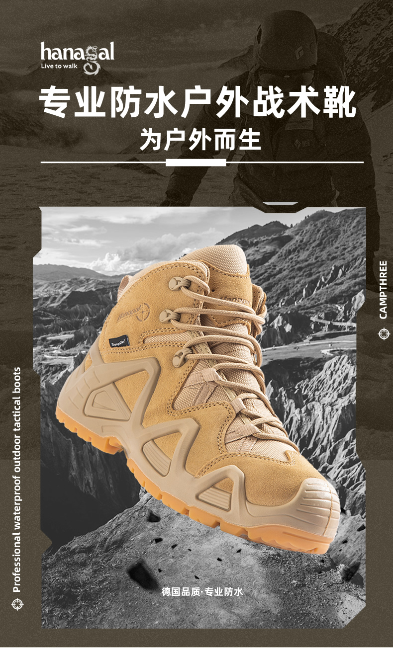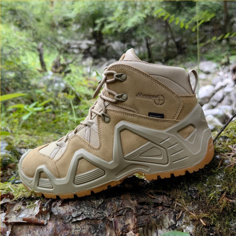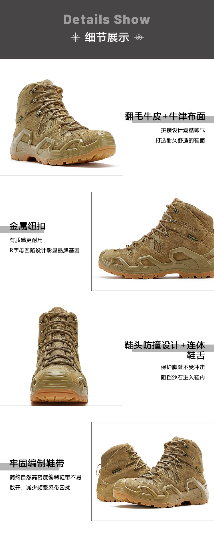 悍戈戶外登山鞋徒步鞋男女防水作戰靴沙漠靴沙色中筒戰術靴作戰訓練鞋