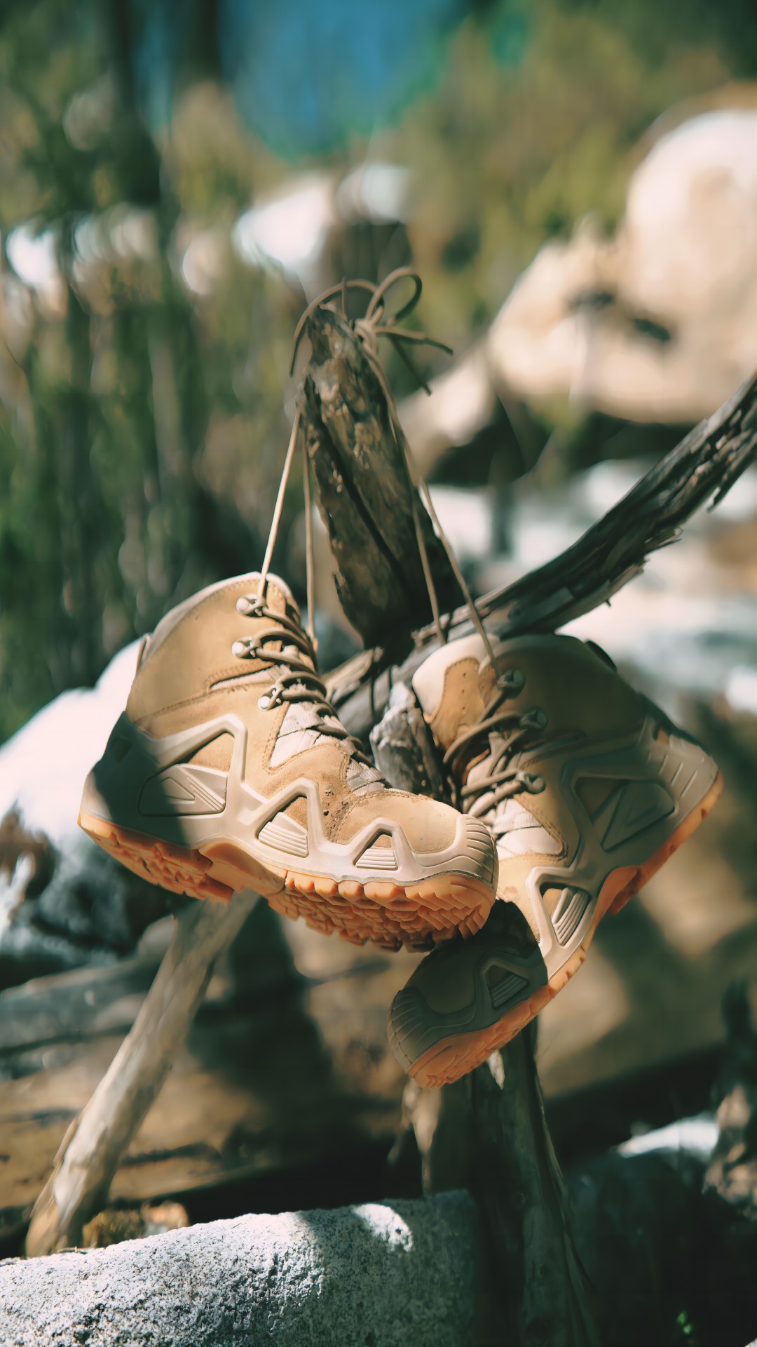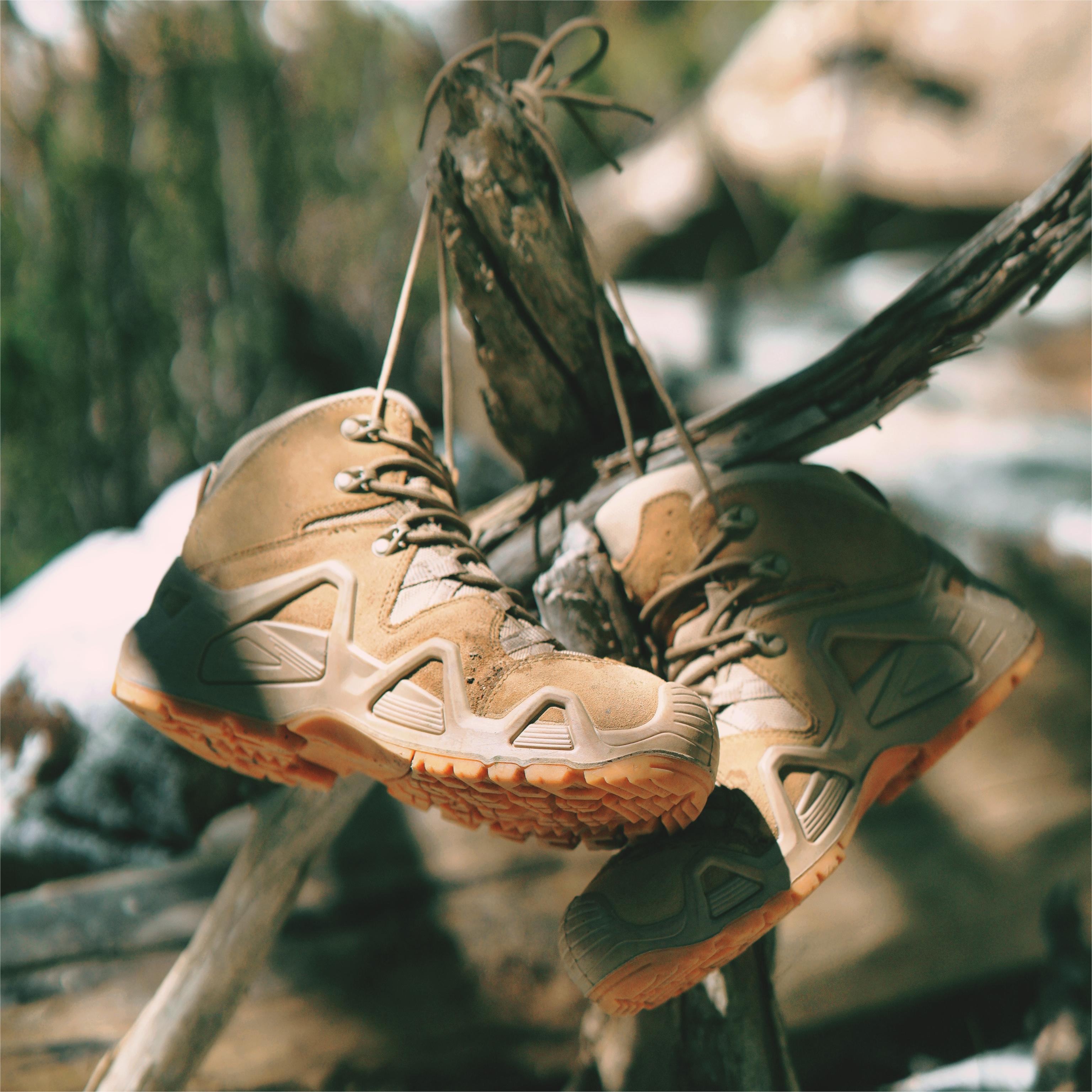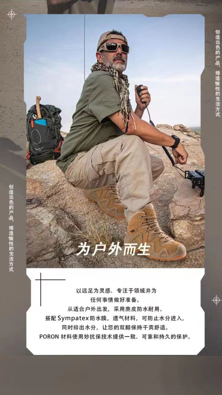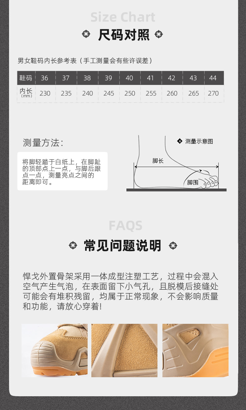 悍戈戶外登山鞋徒步鞋男女防水作戰靴沙漠靴沙色中筒戰術靴作戰訓練鞋