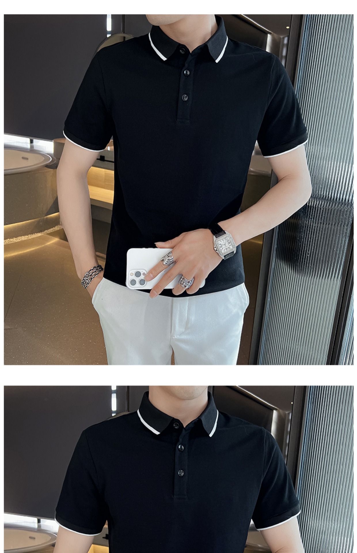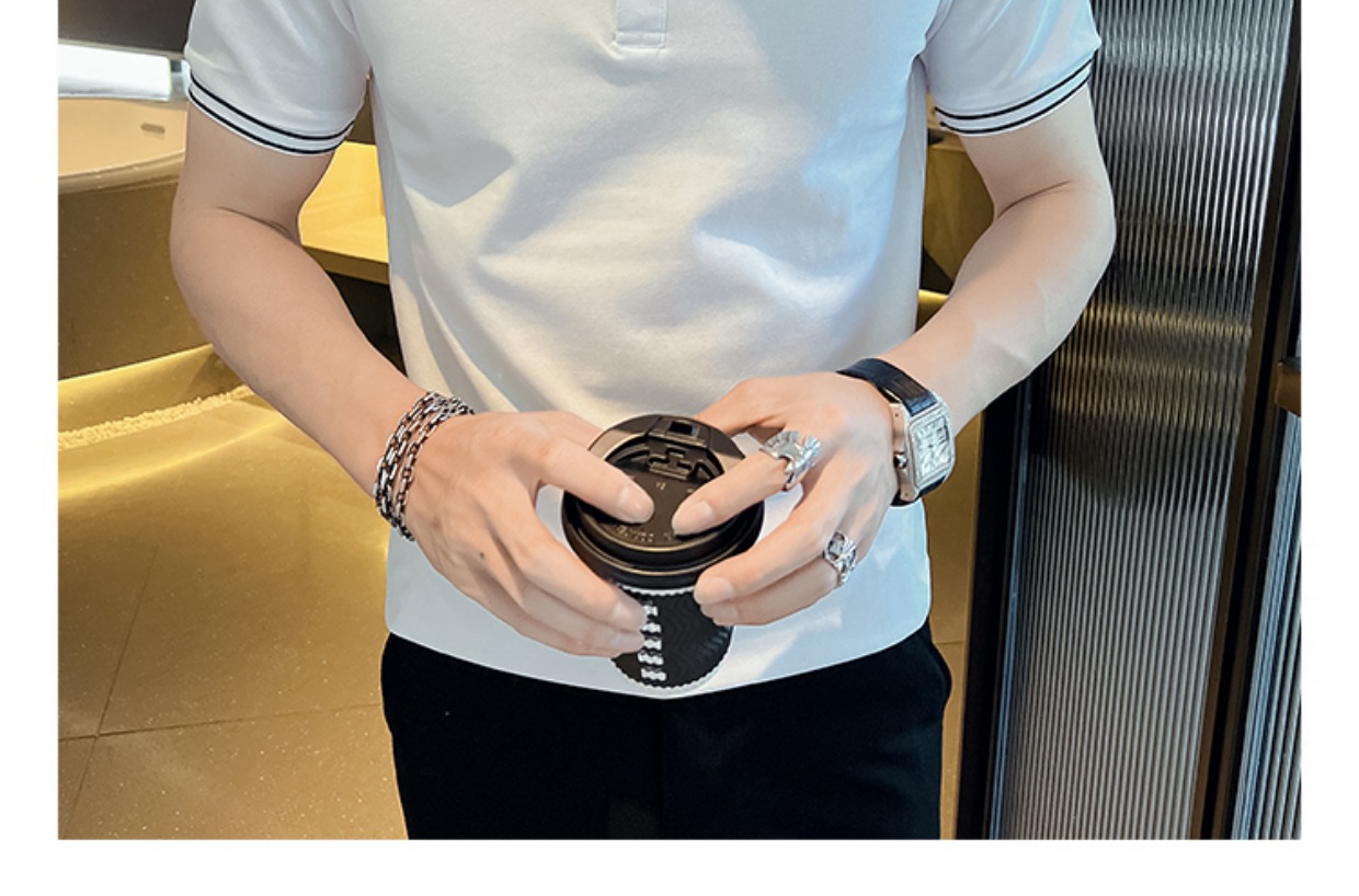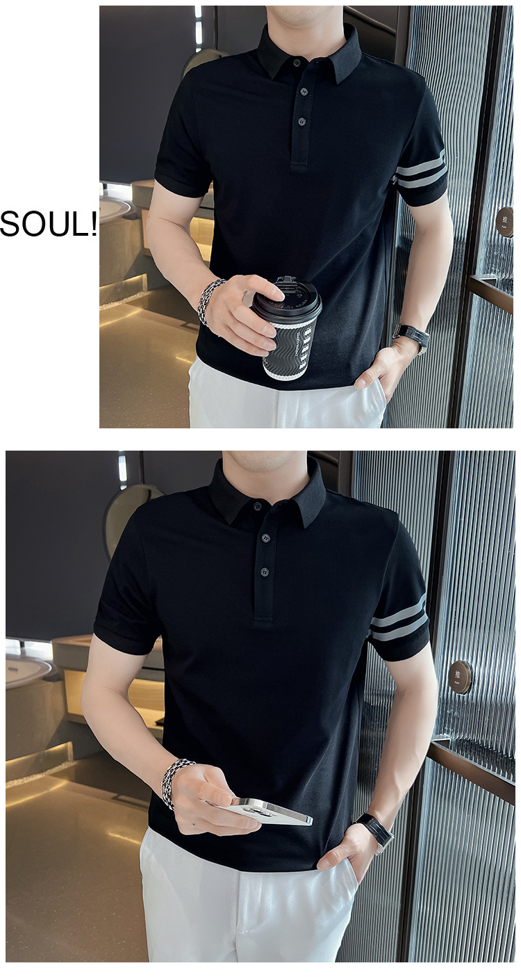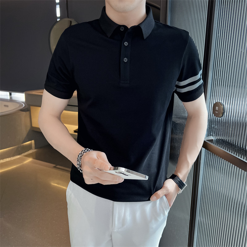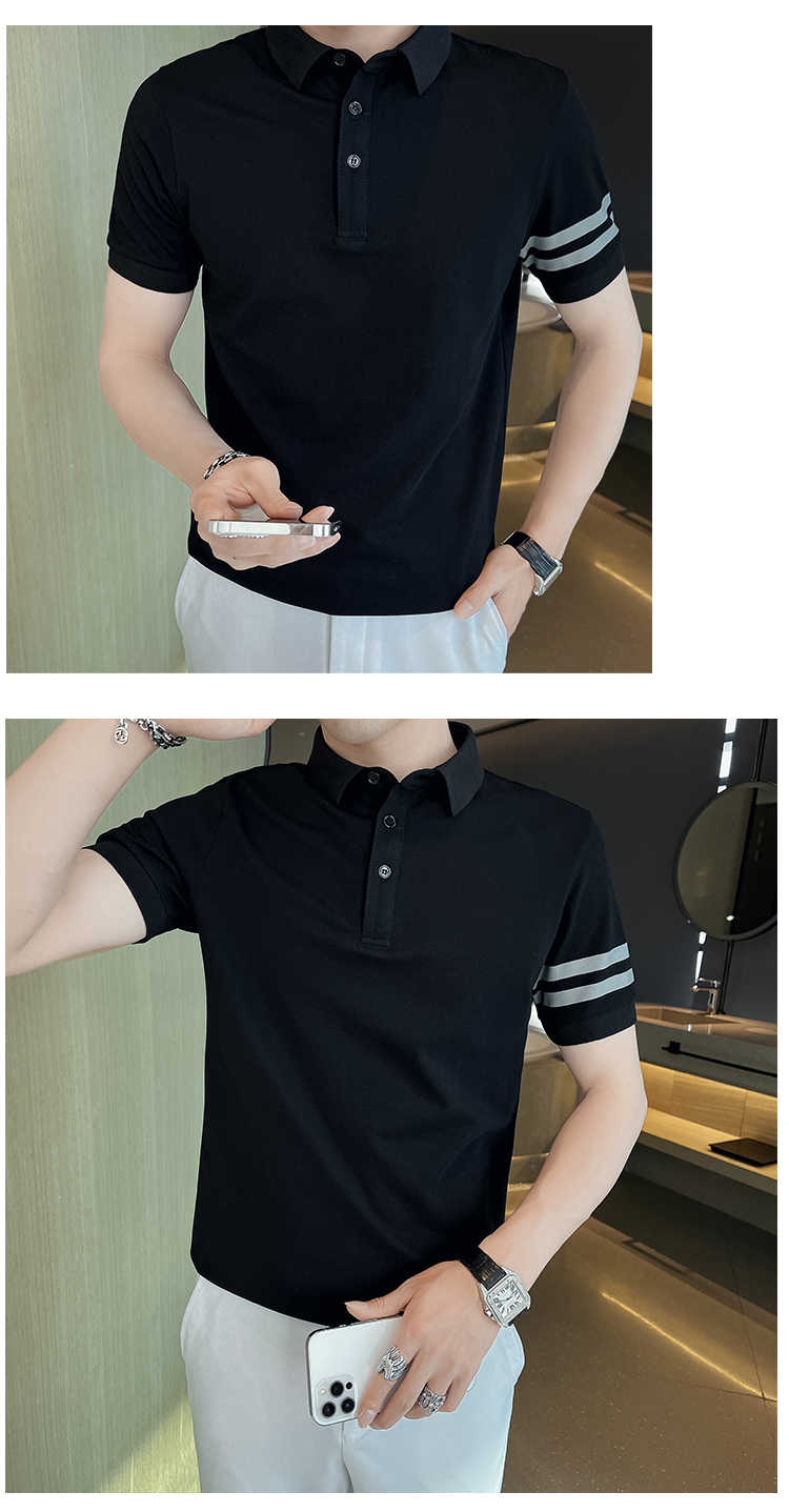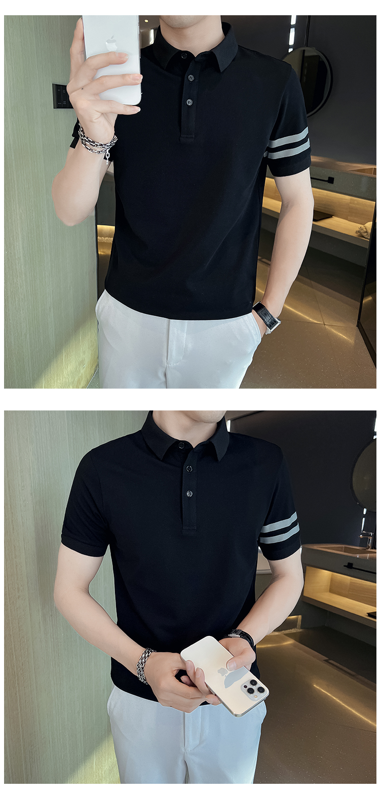 男士POLO衫短袖韓版潮流黑色T恤ins潮牌半袖2023新款夏季男裝T恤