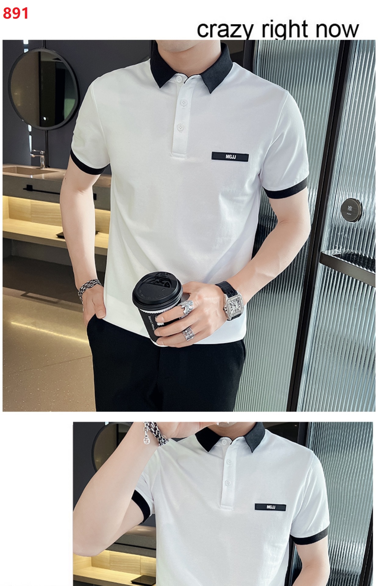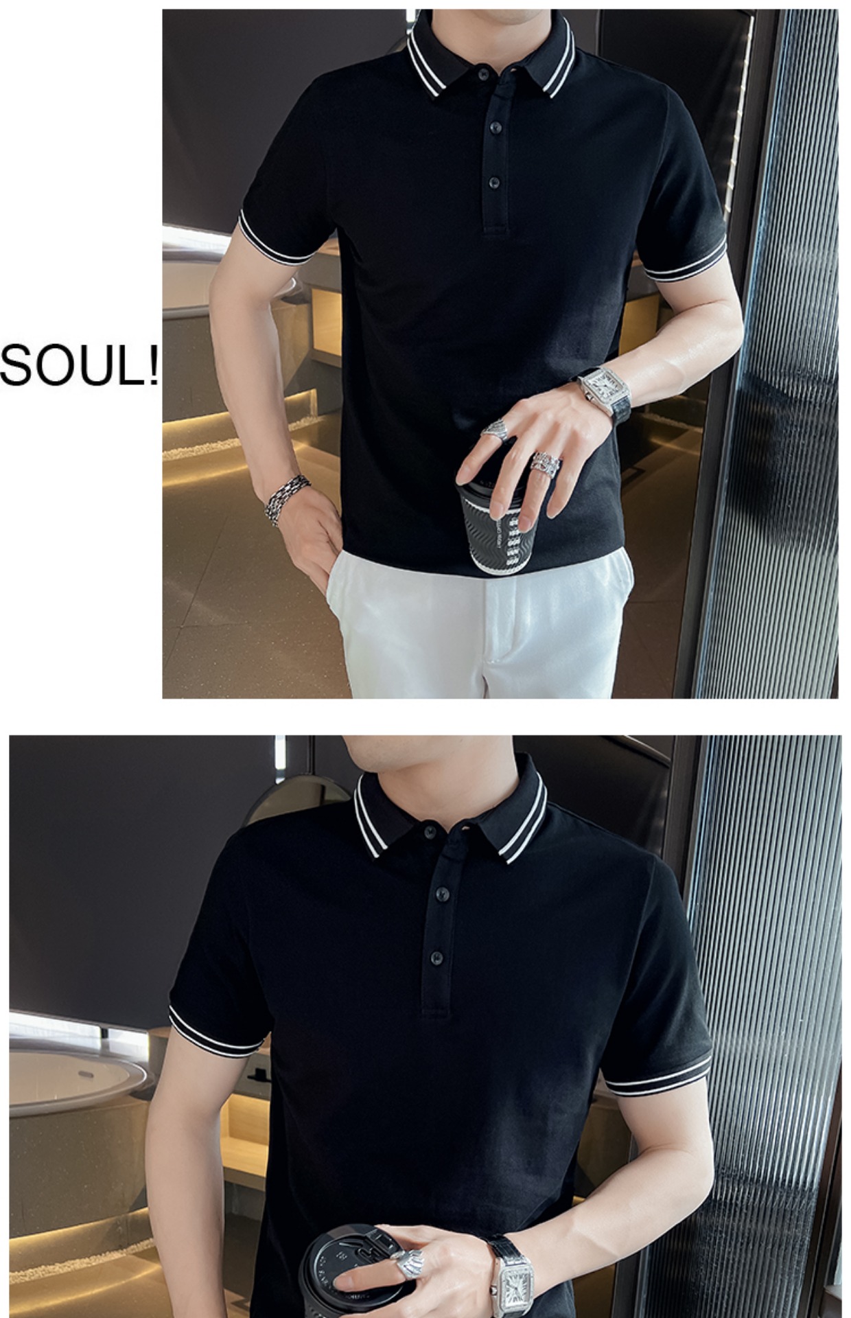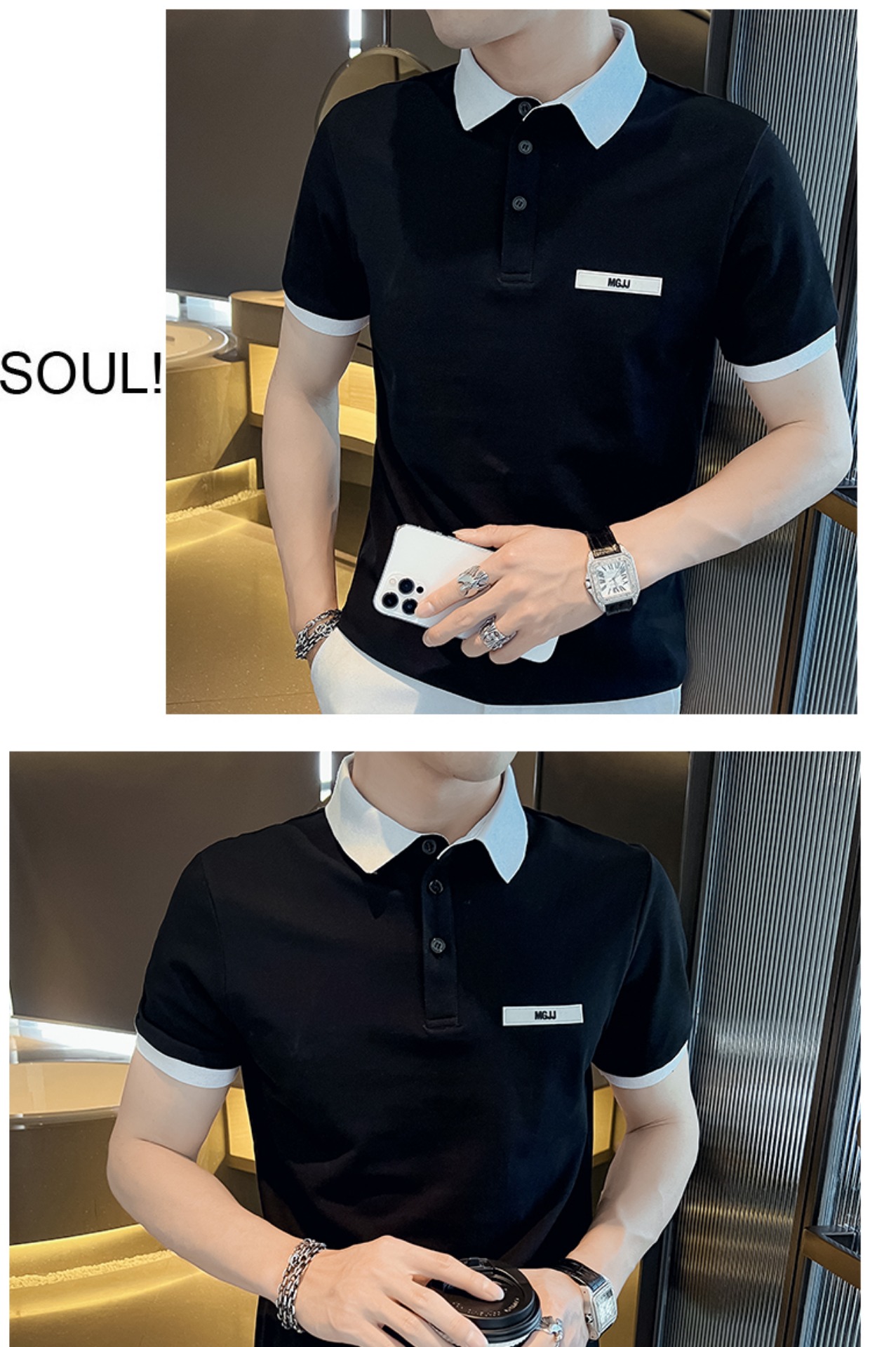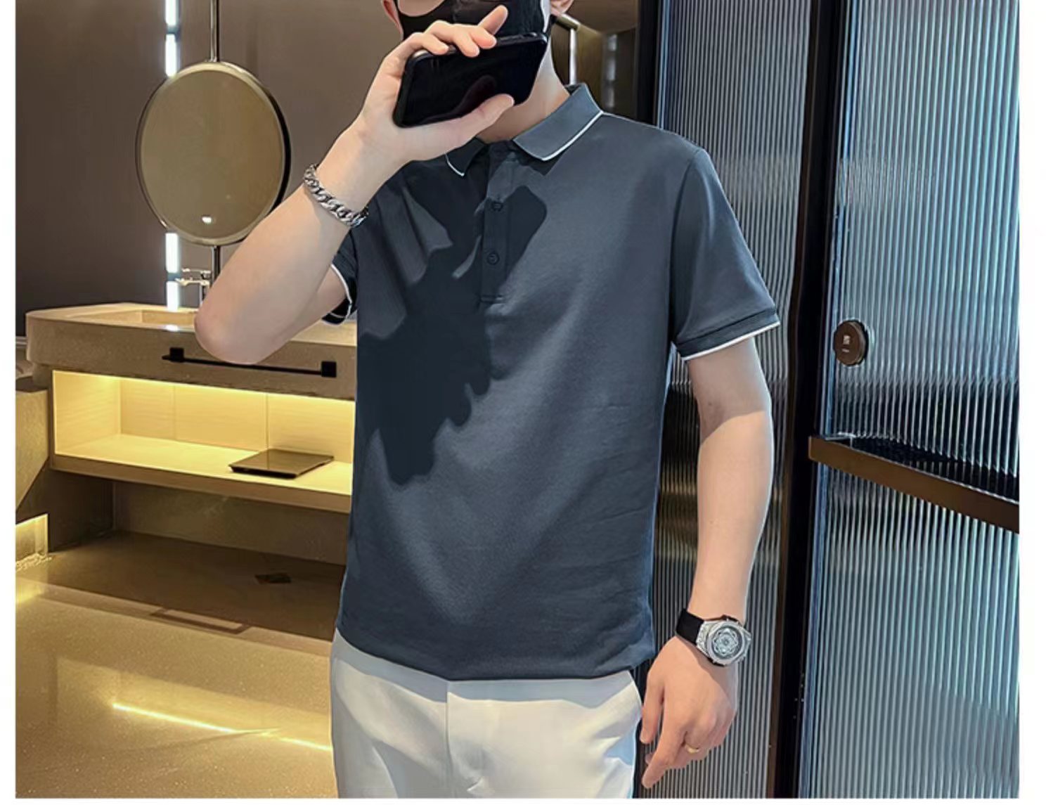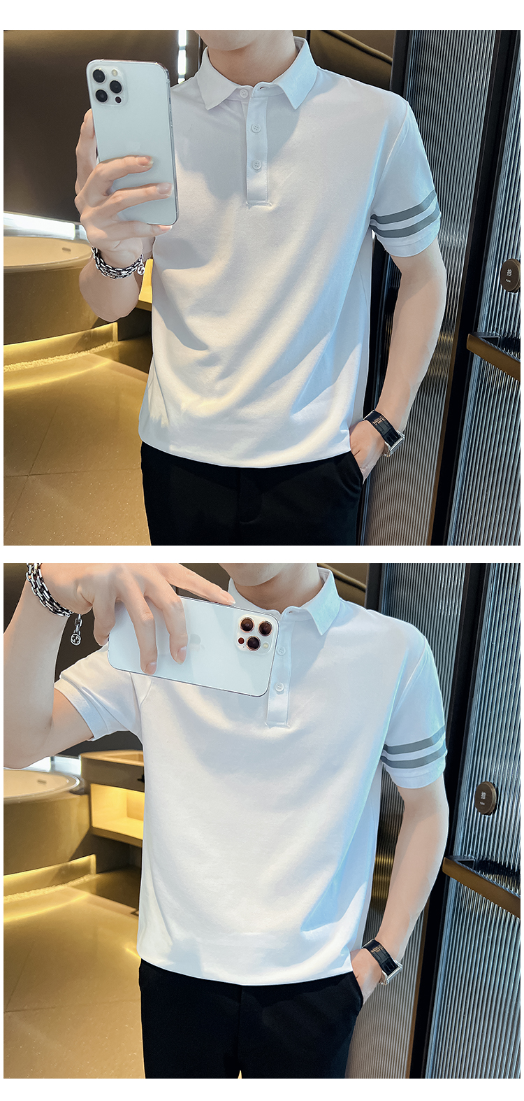 男士POLO衫短袖韓版潮流黑色T恤ins潮牌半袖2023新款夏季男裝T恤