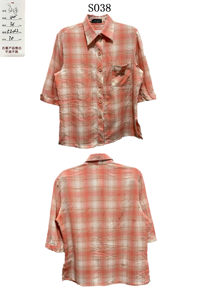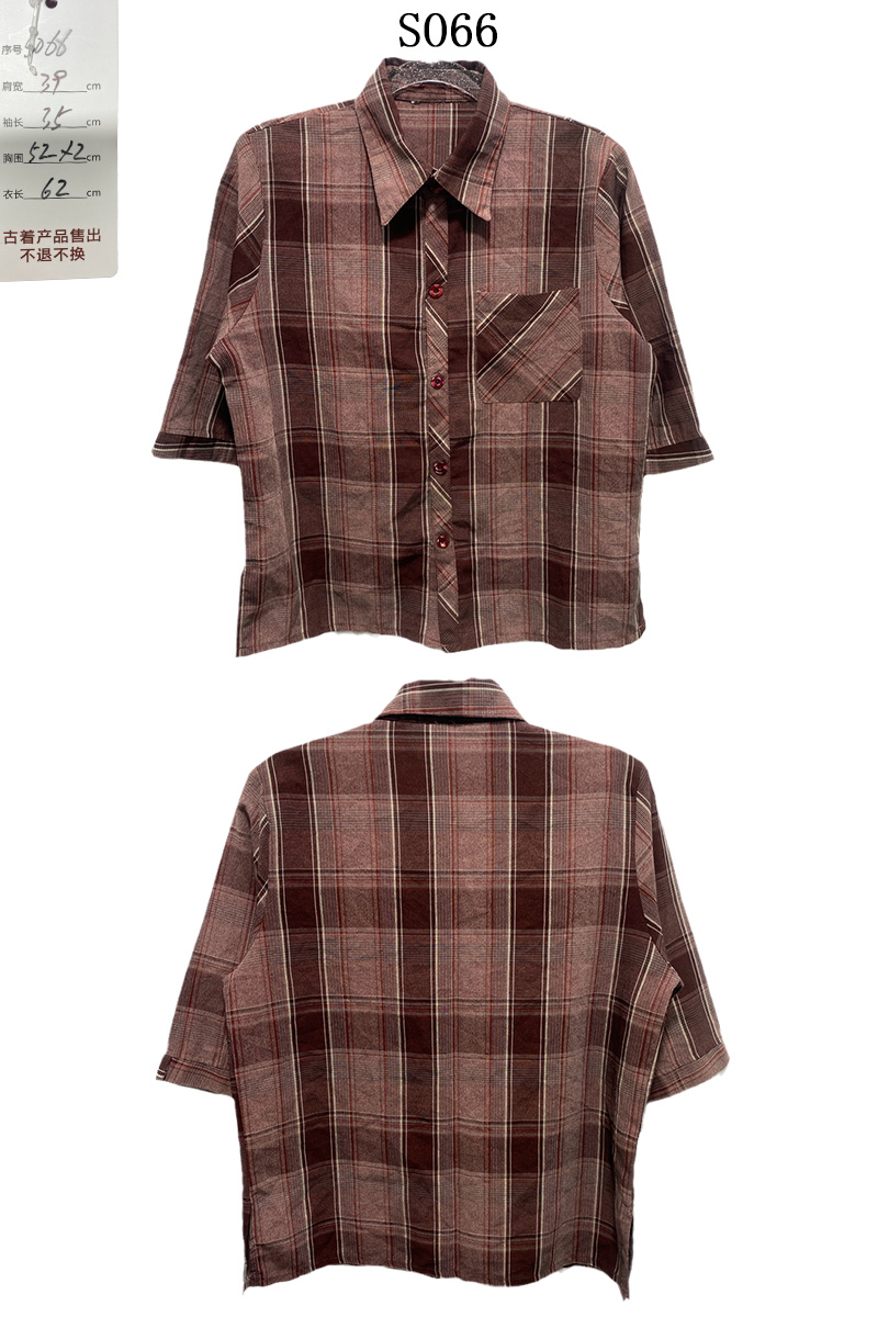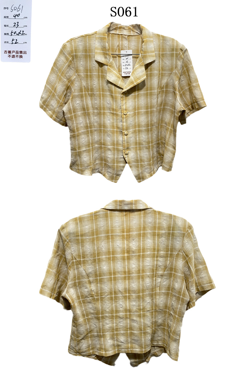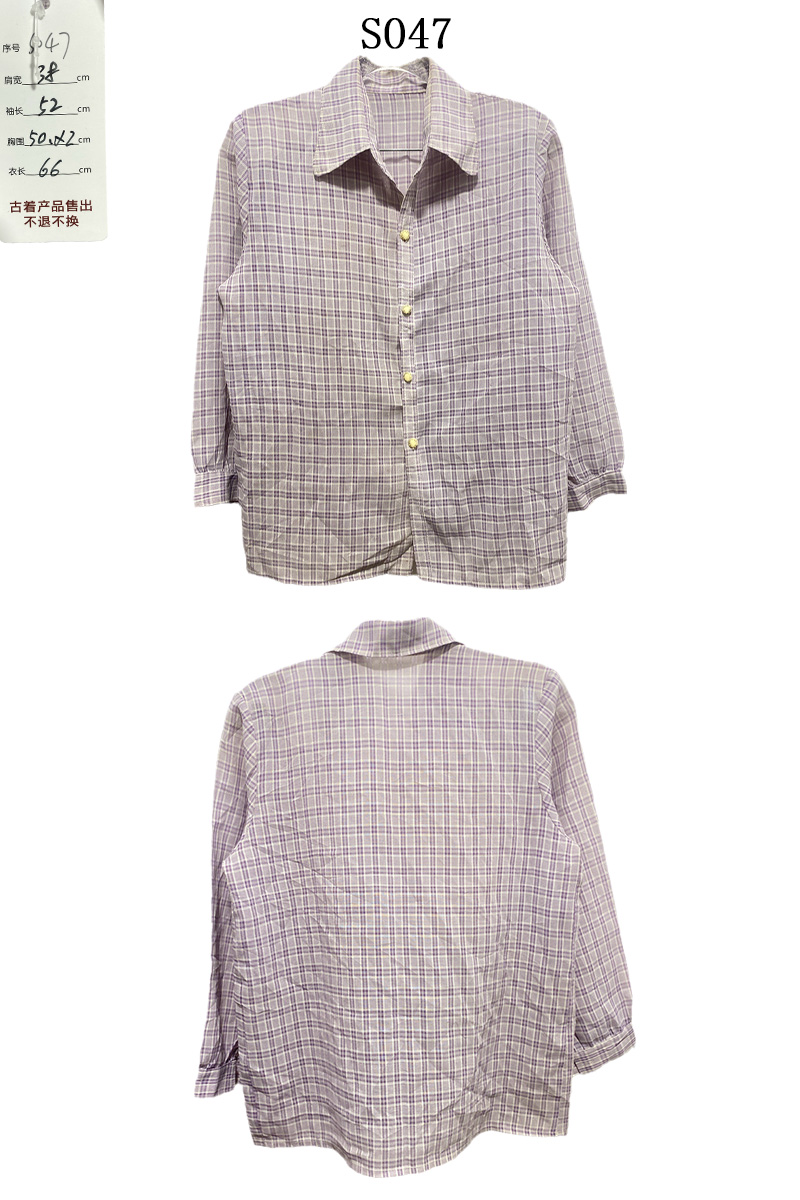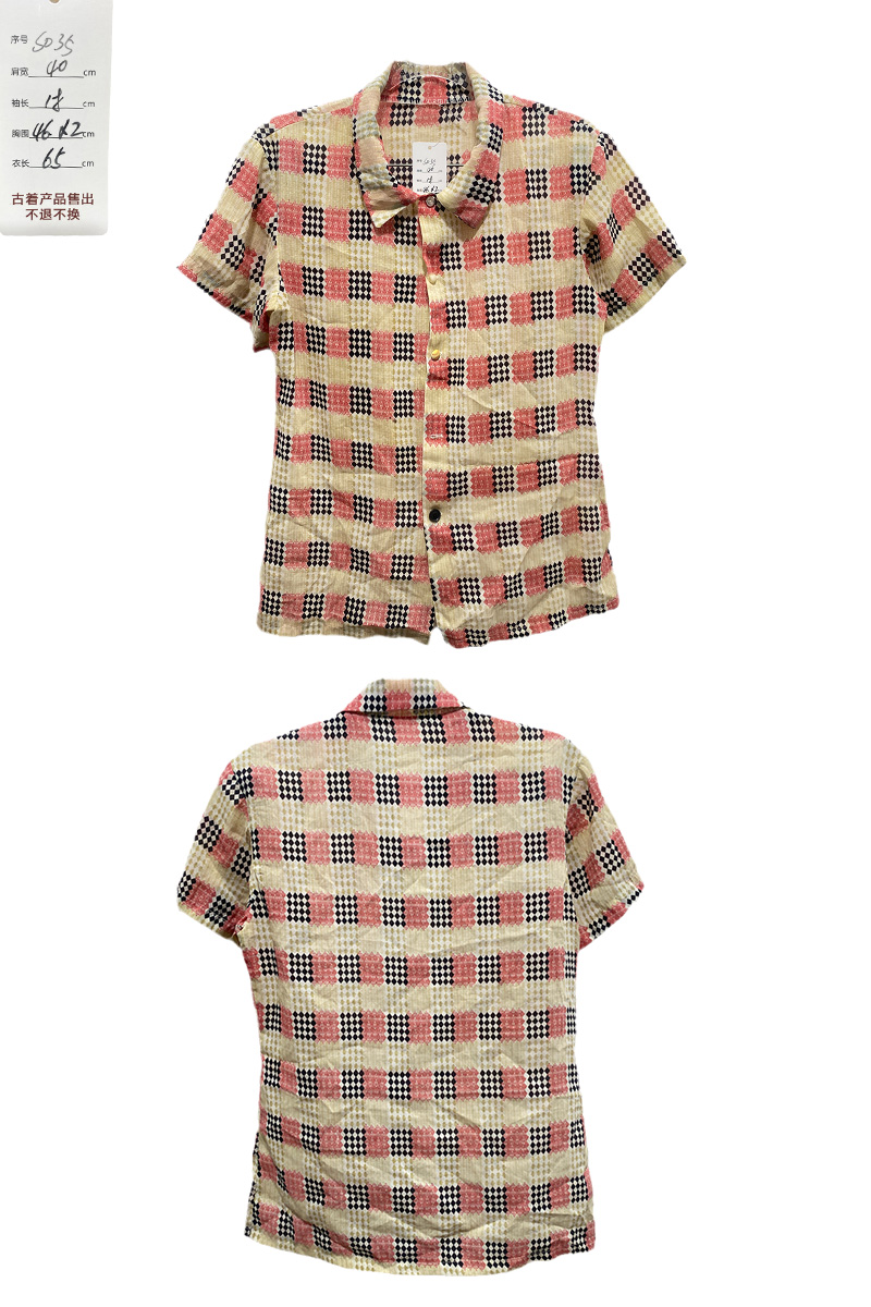 vintage古著夏季襯衫SO溫柔風初戀條紋菱形法式復古絕美格子上衣