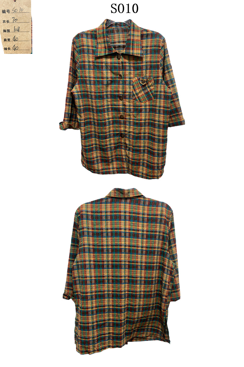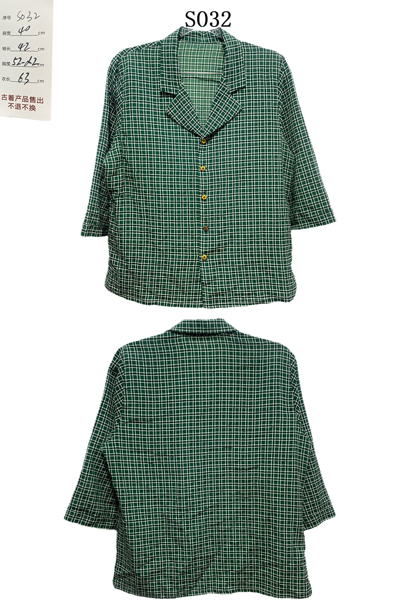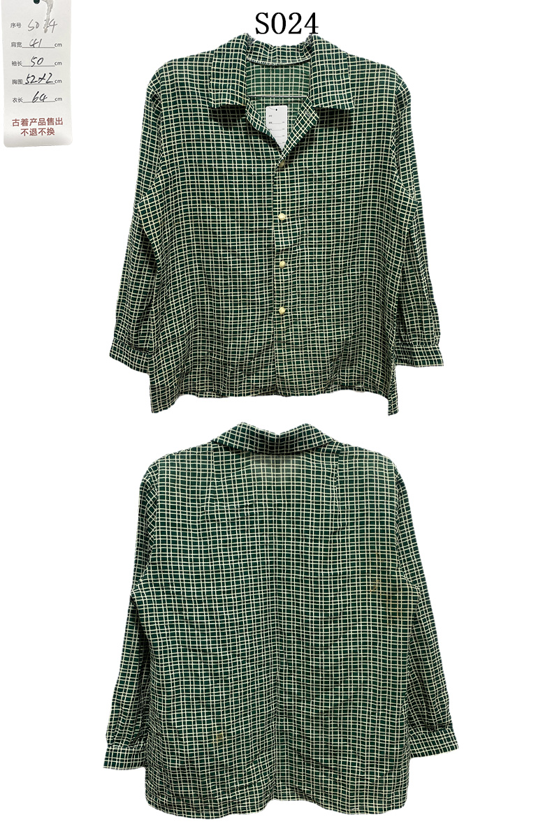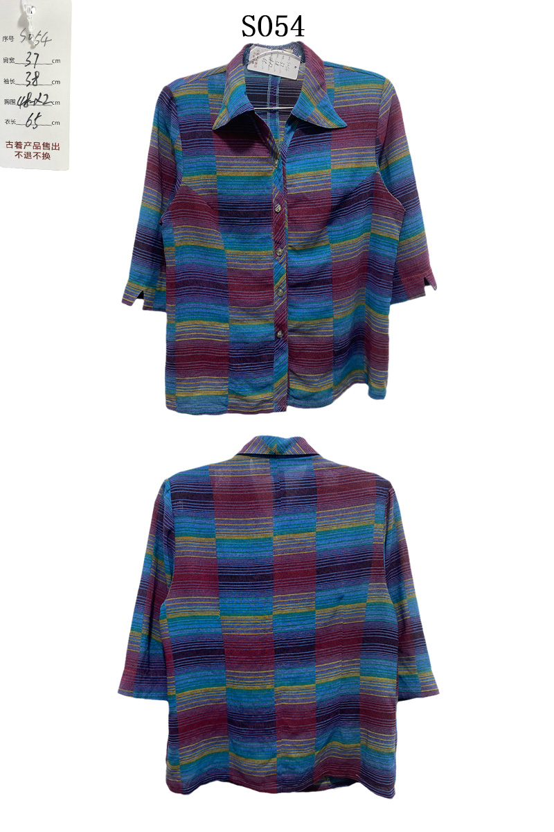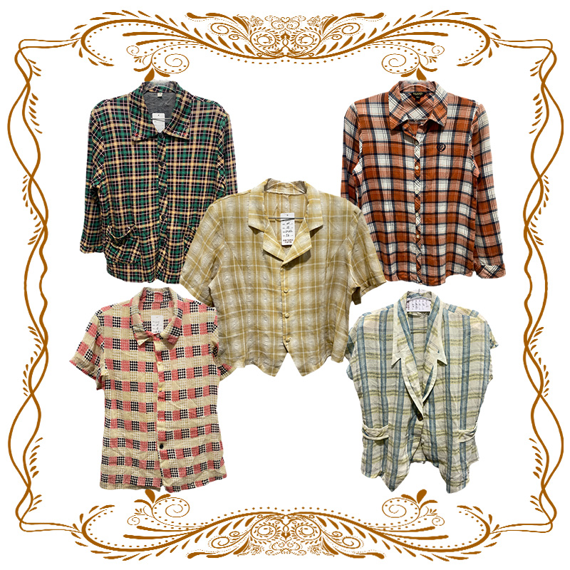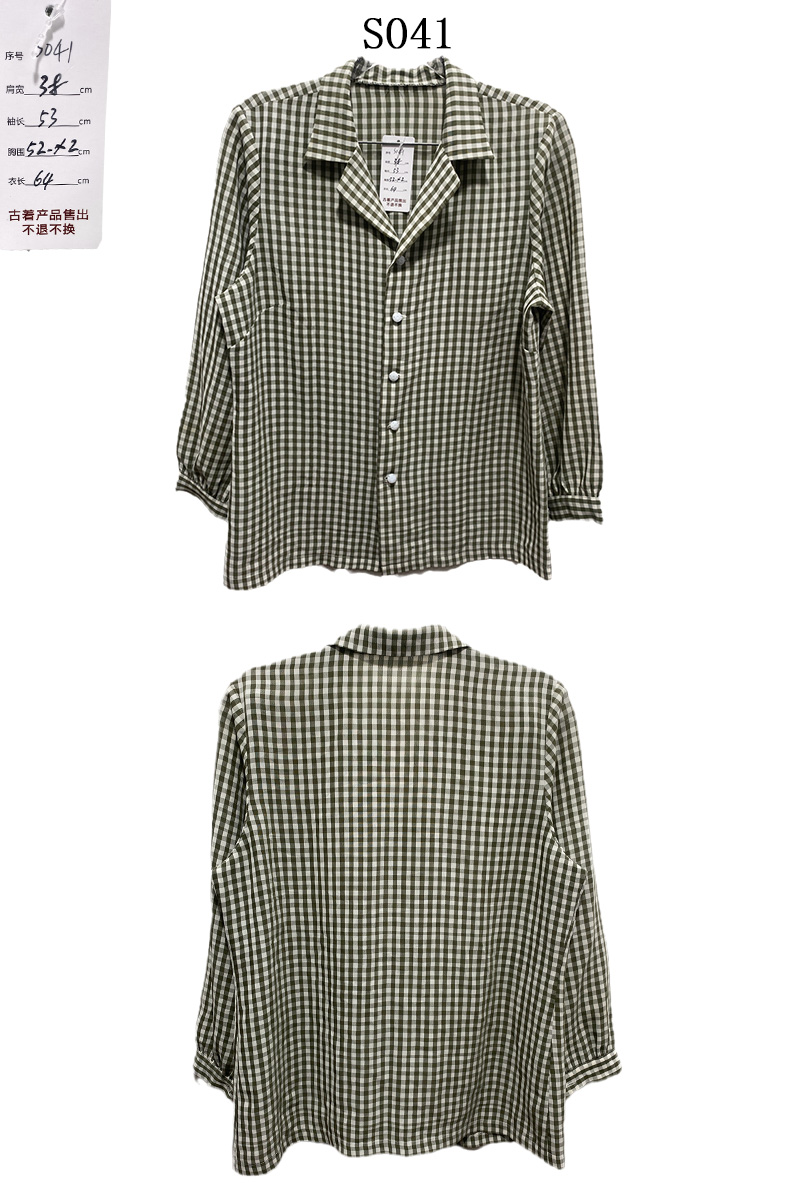 vintage古著夏季襯衫SO溫柔風初戀條紋菱形法式復古絕美格子上衣