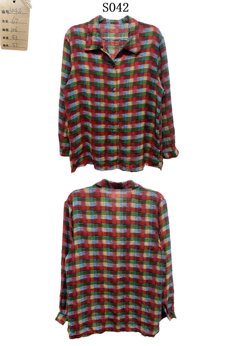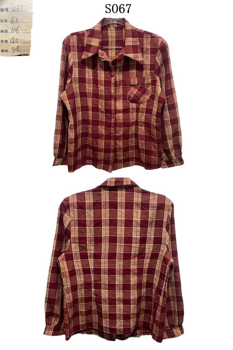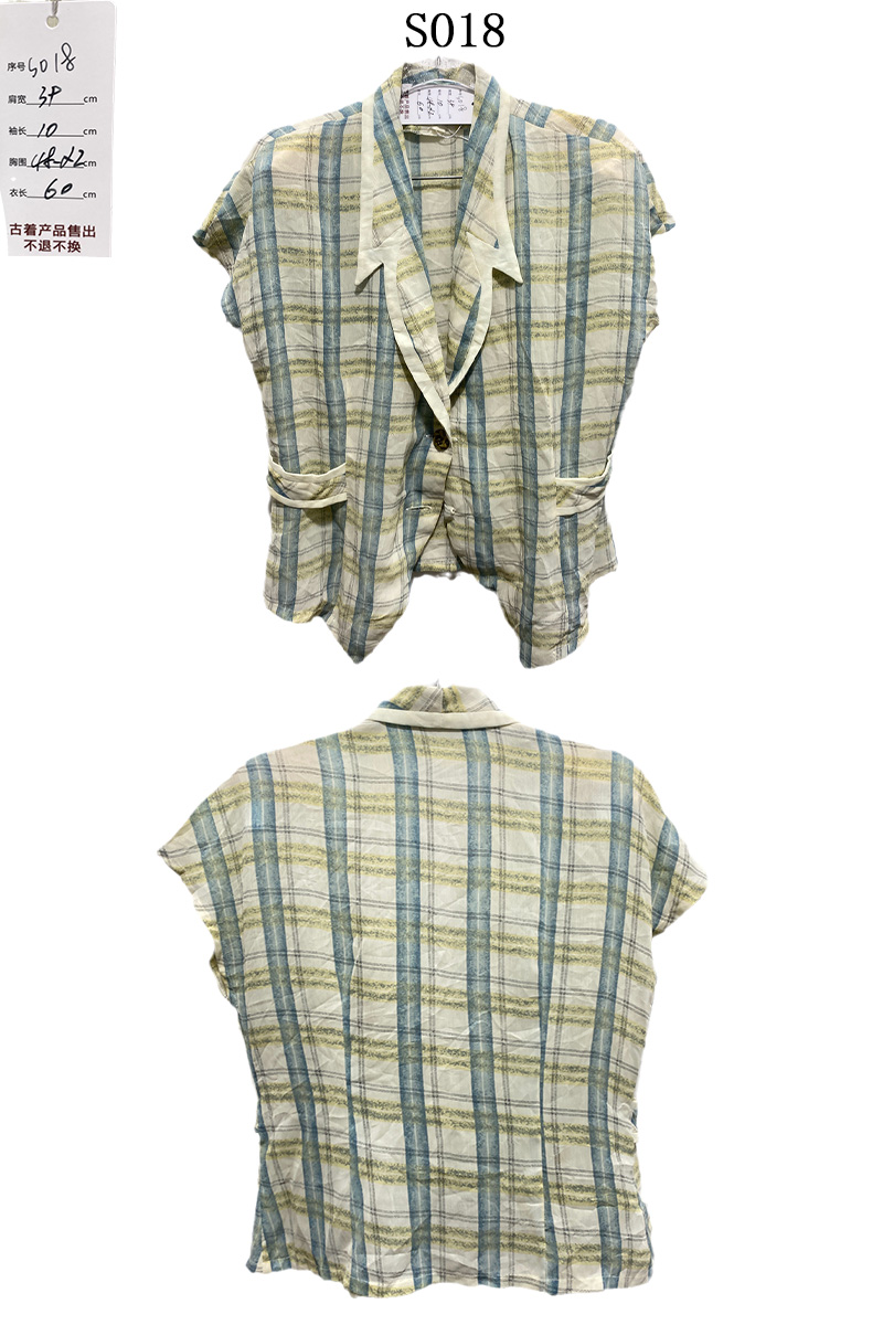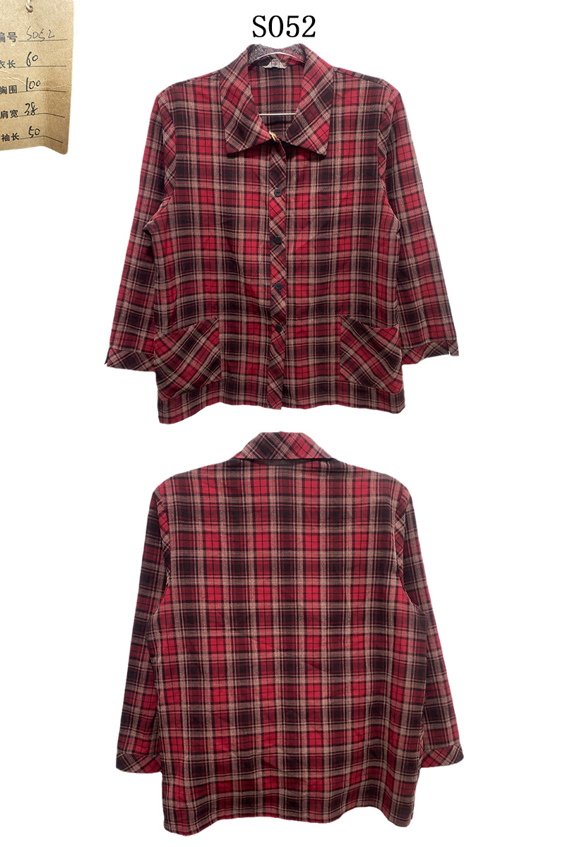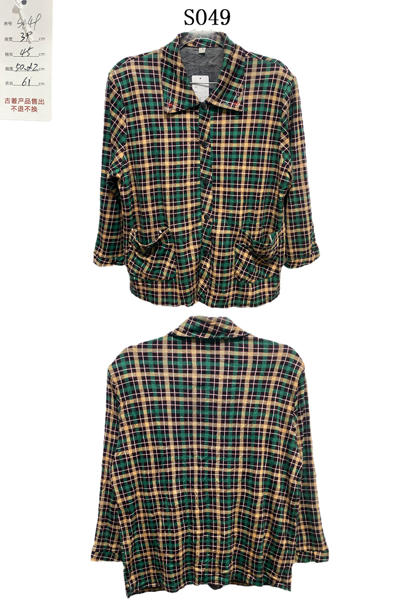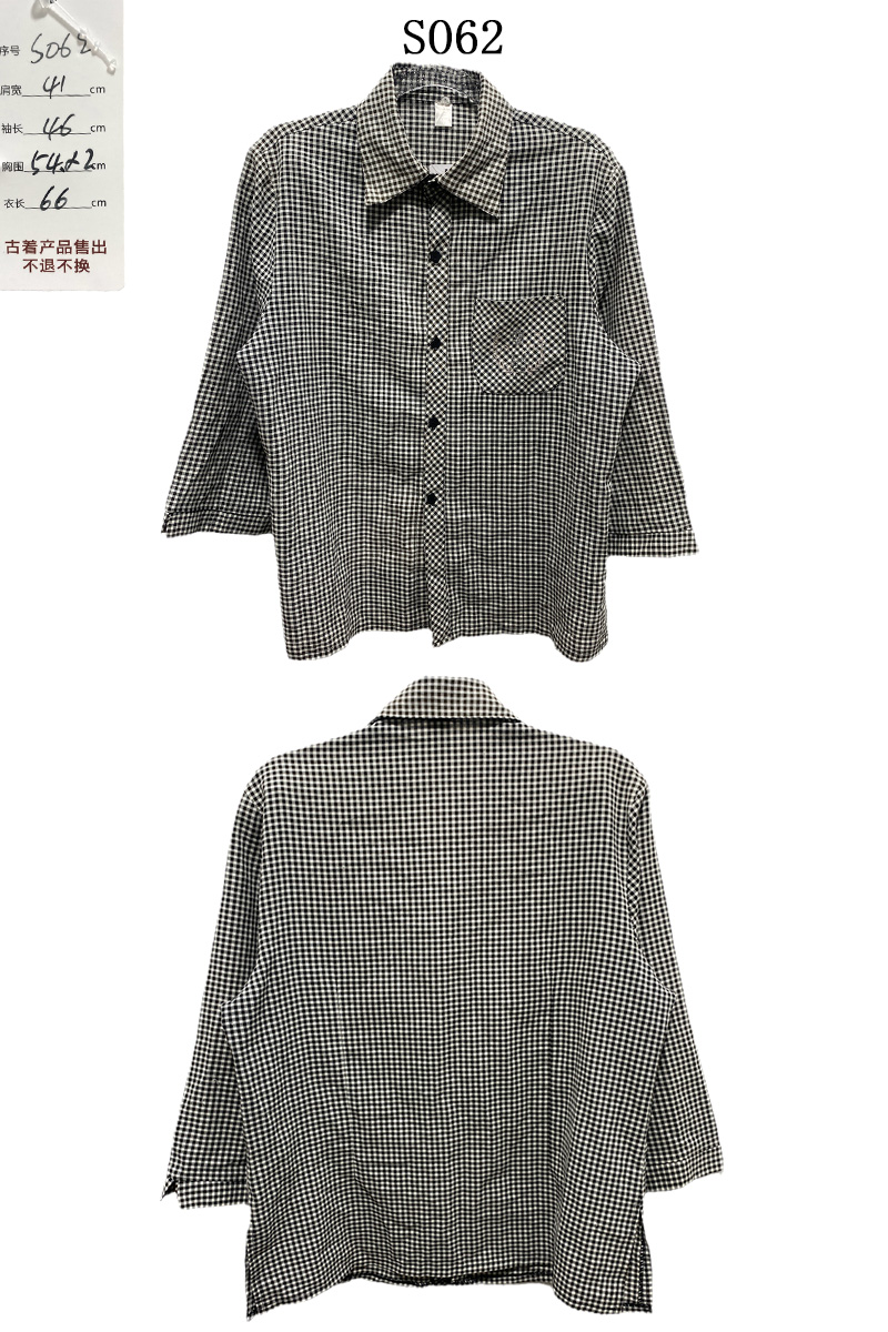 vintage古著夏季襯衫SO溫柔風初戀條紋菱形法式復古絕美格子上衣
