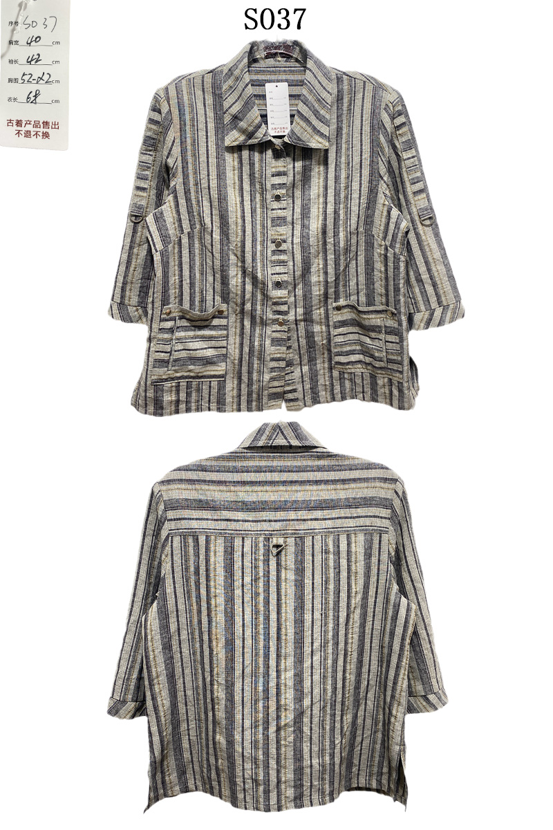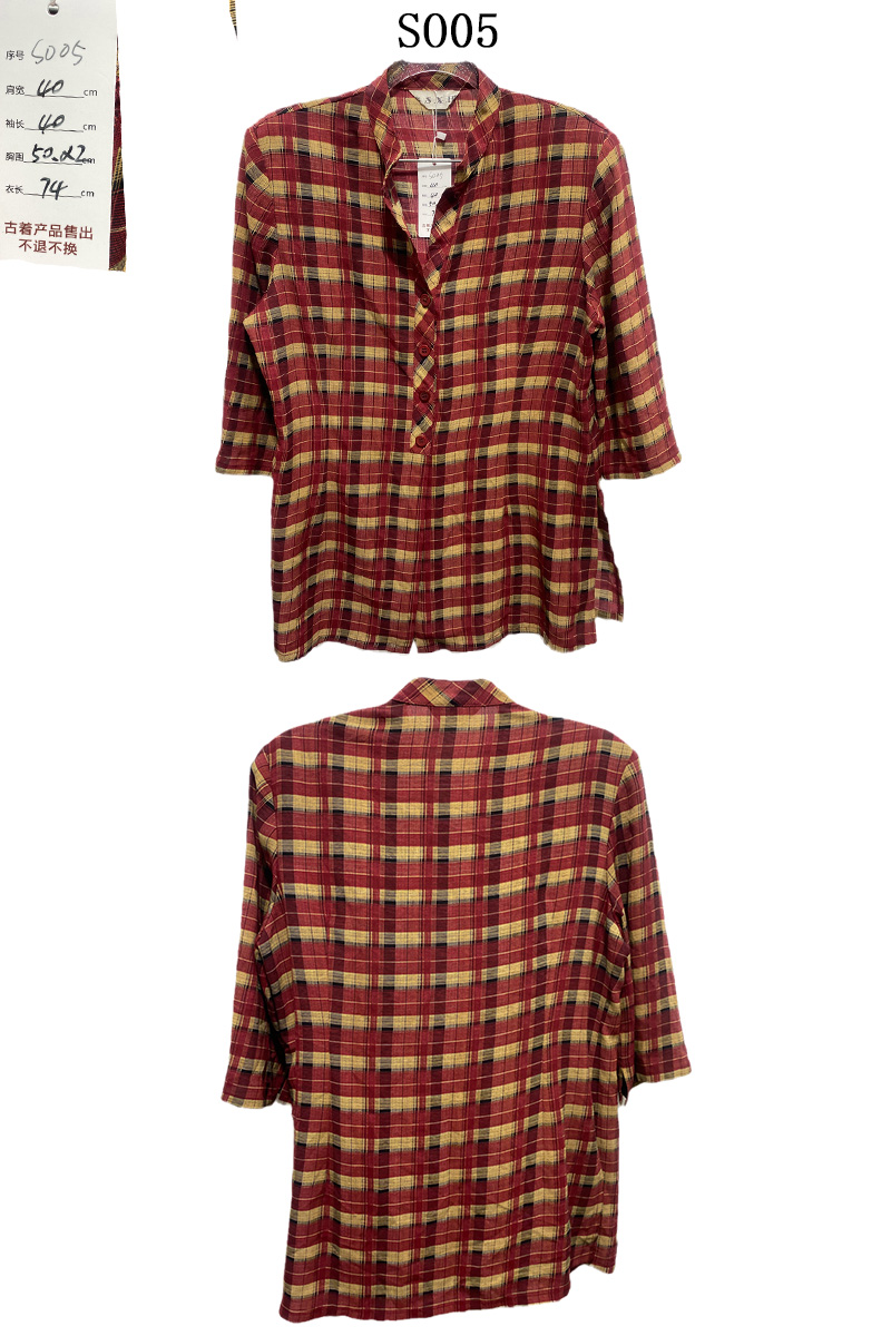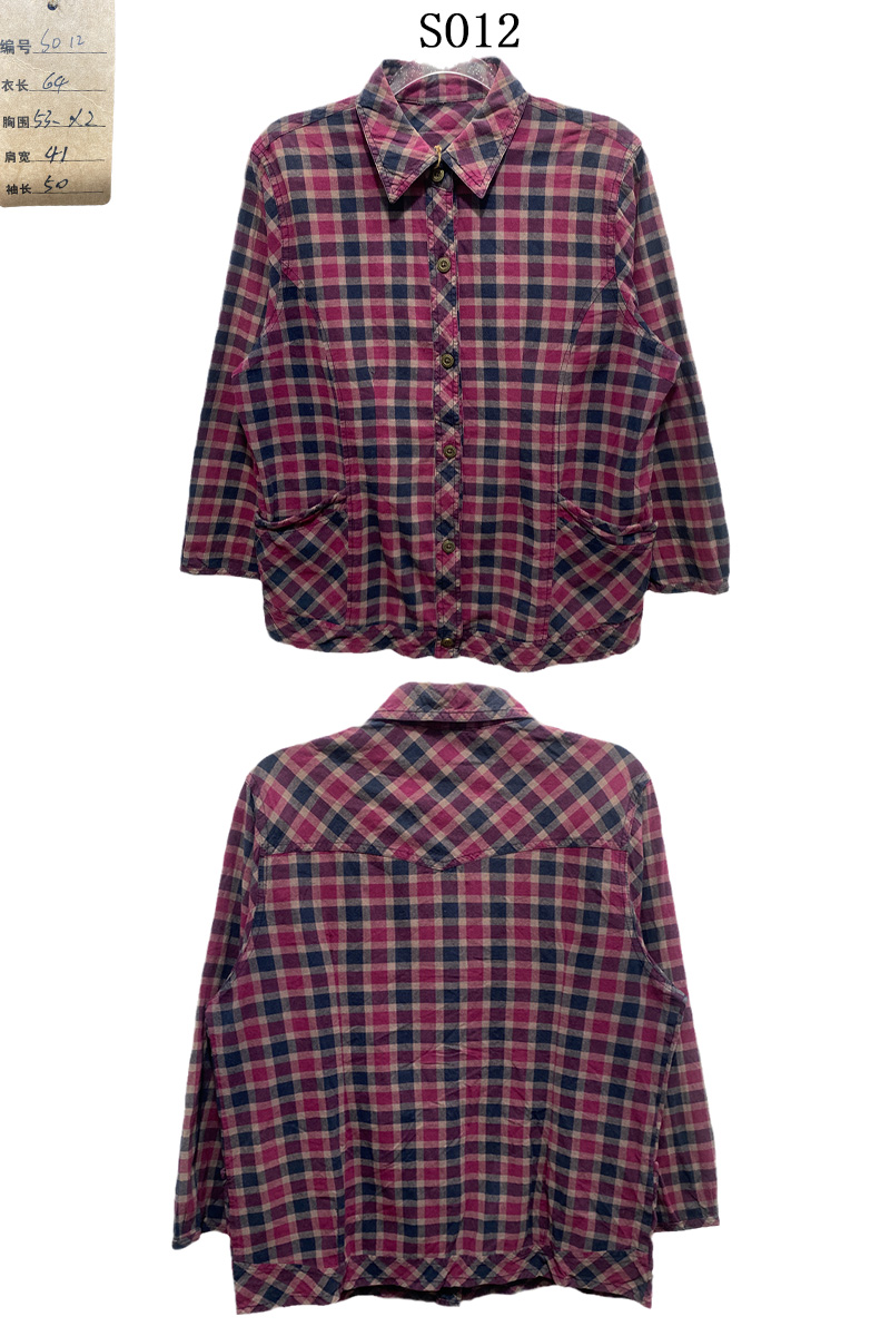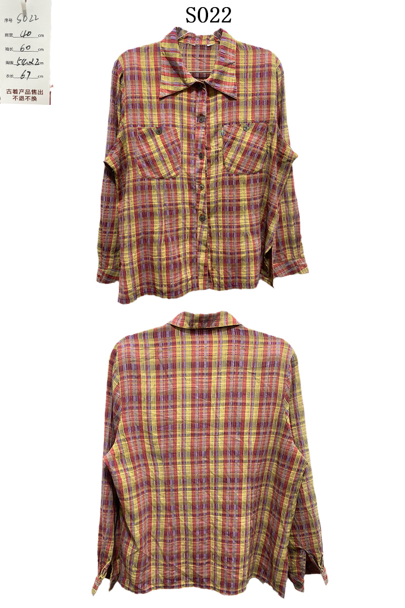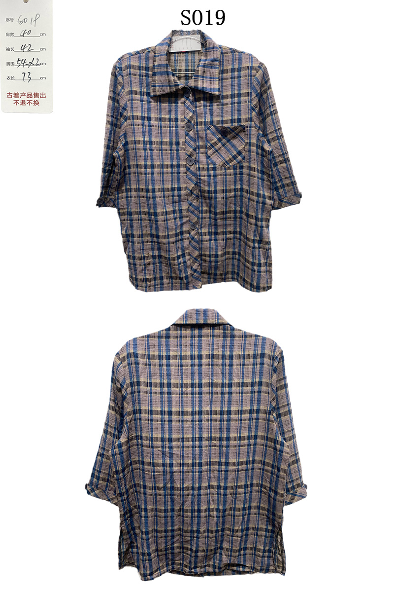 vintage古著夏季襯衫SO溫柔風初戀條紋菱形法式復古絕美格子上衣