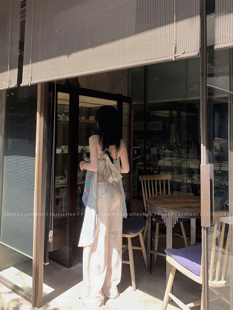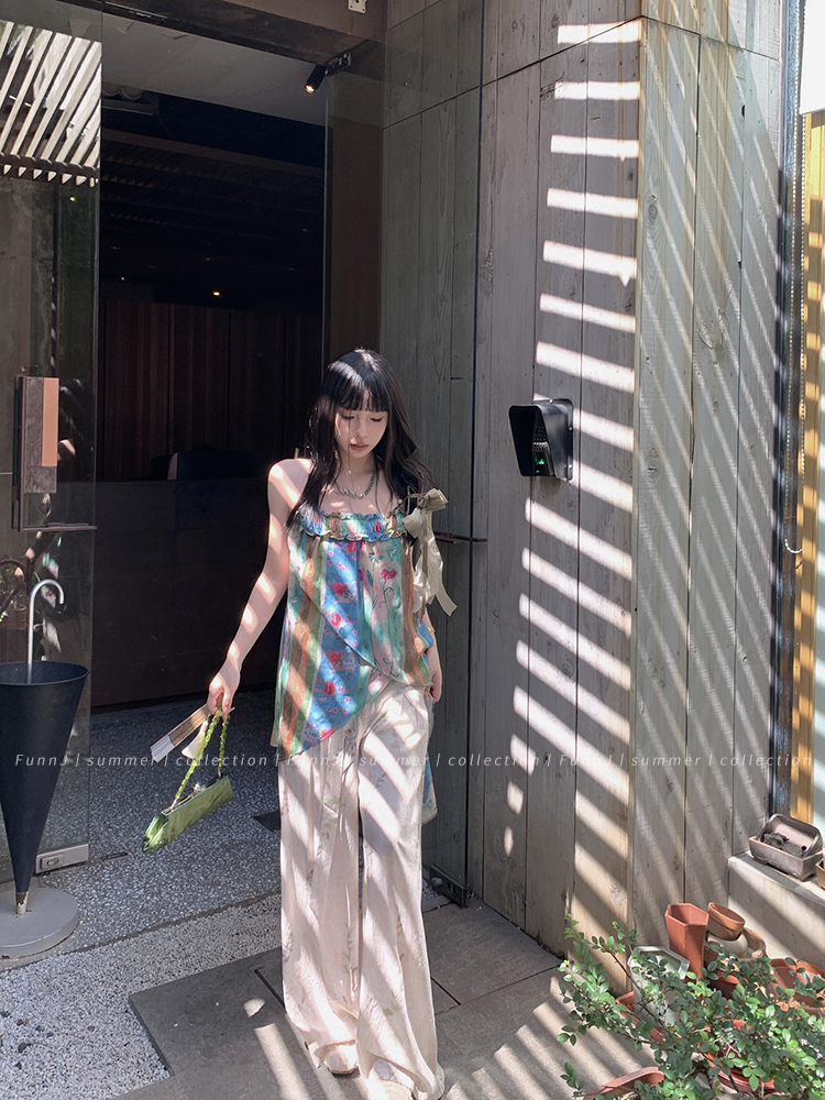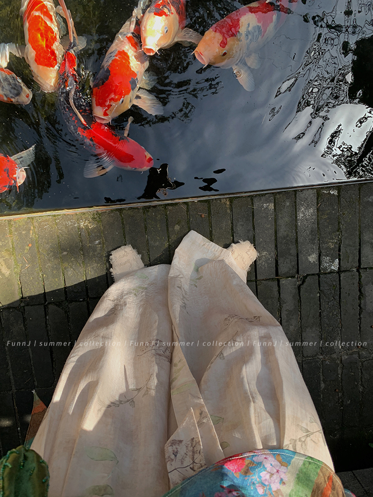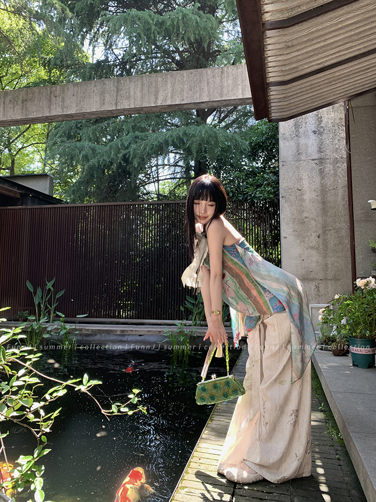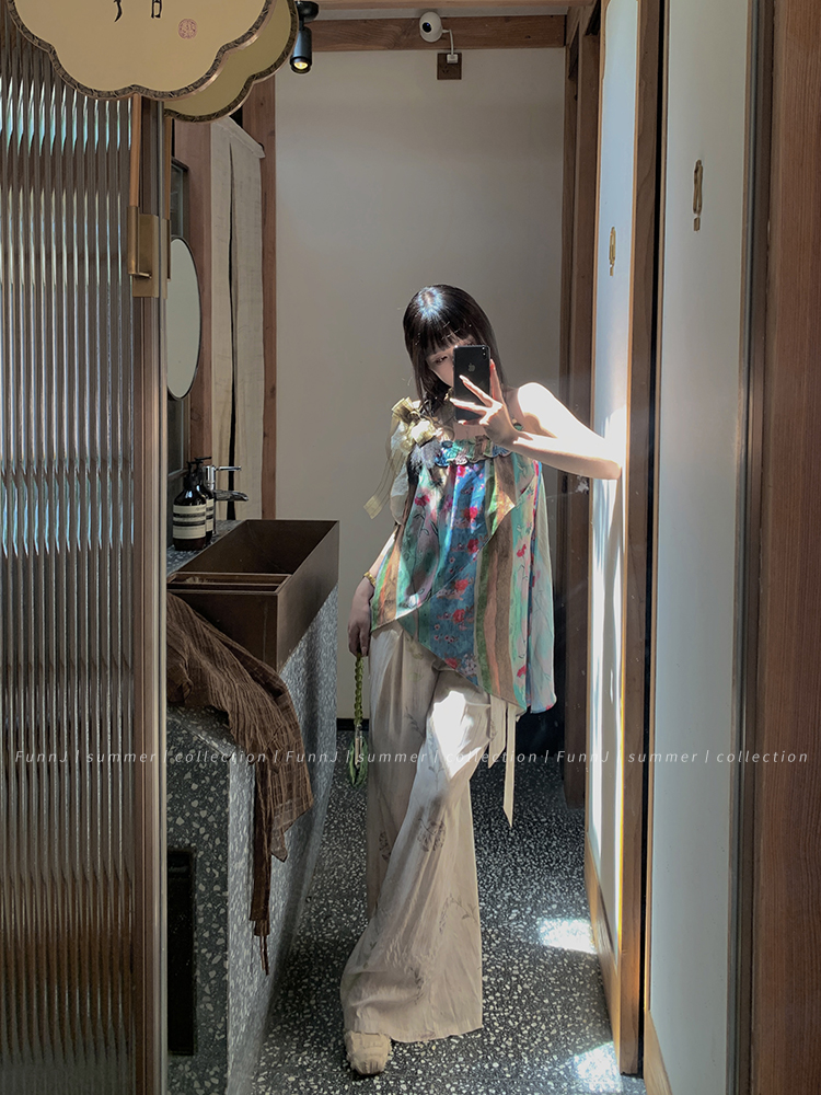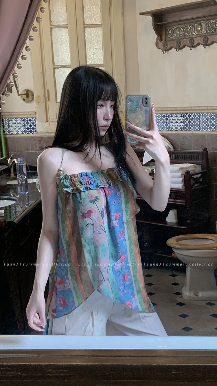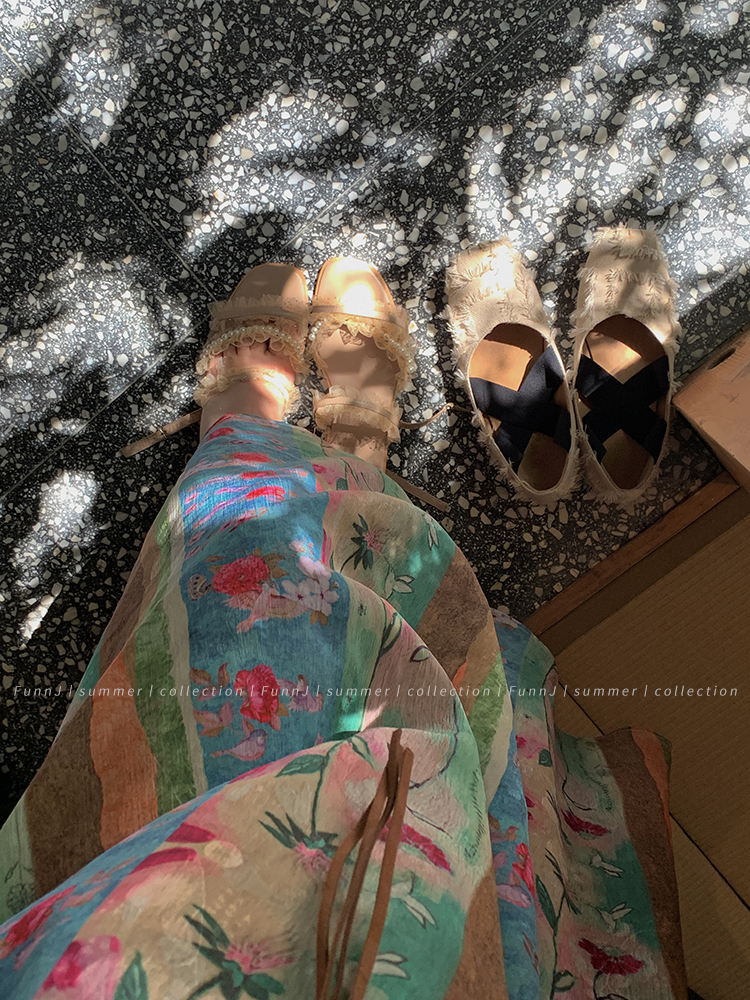FunnJ方形茶幾◆清冷繆斯 新中式碎花中長版吊帶洋裝女復古度假長裙