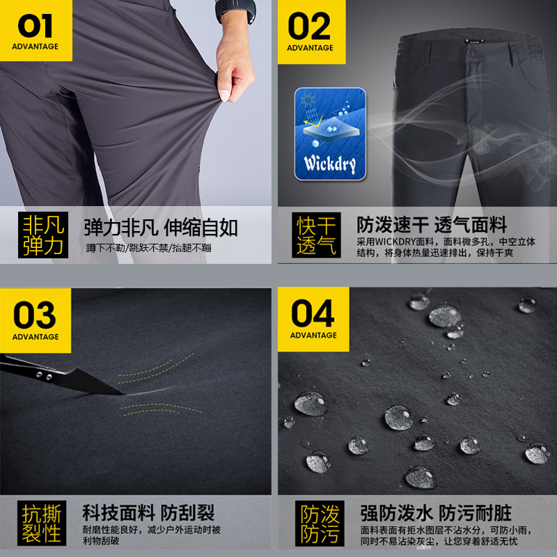 凱樂石速乾褲男夏季薄款寬鬆休閒褲透氣彈力快乾長褲戶外徒步褲子