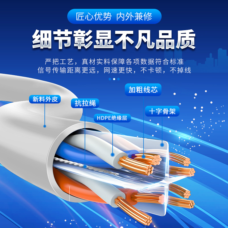 六类无氧铜千兆网线电脑路由器家用cat6 千兆双非屏蔽成品跳线