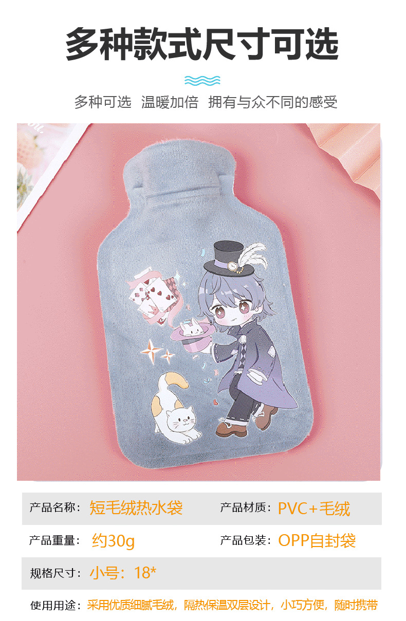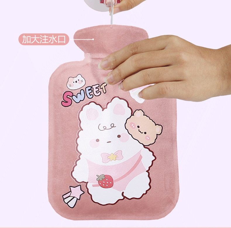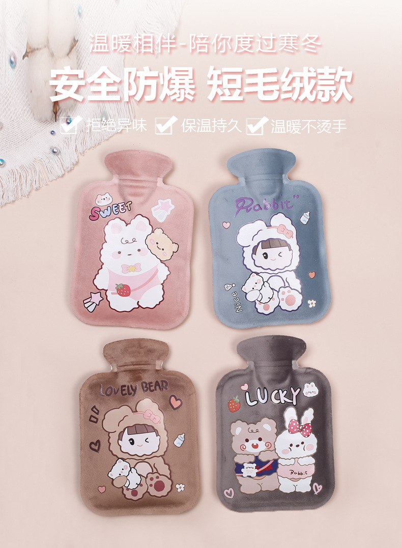 新款短毛绒热水袋注水冲水小号暖水袋便携暖肚子迷你毛绒热水袋