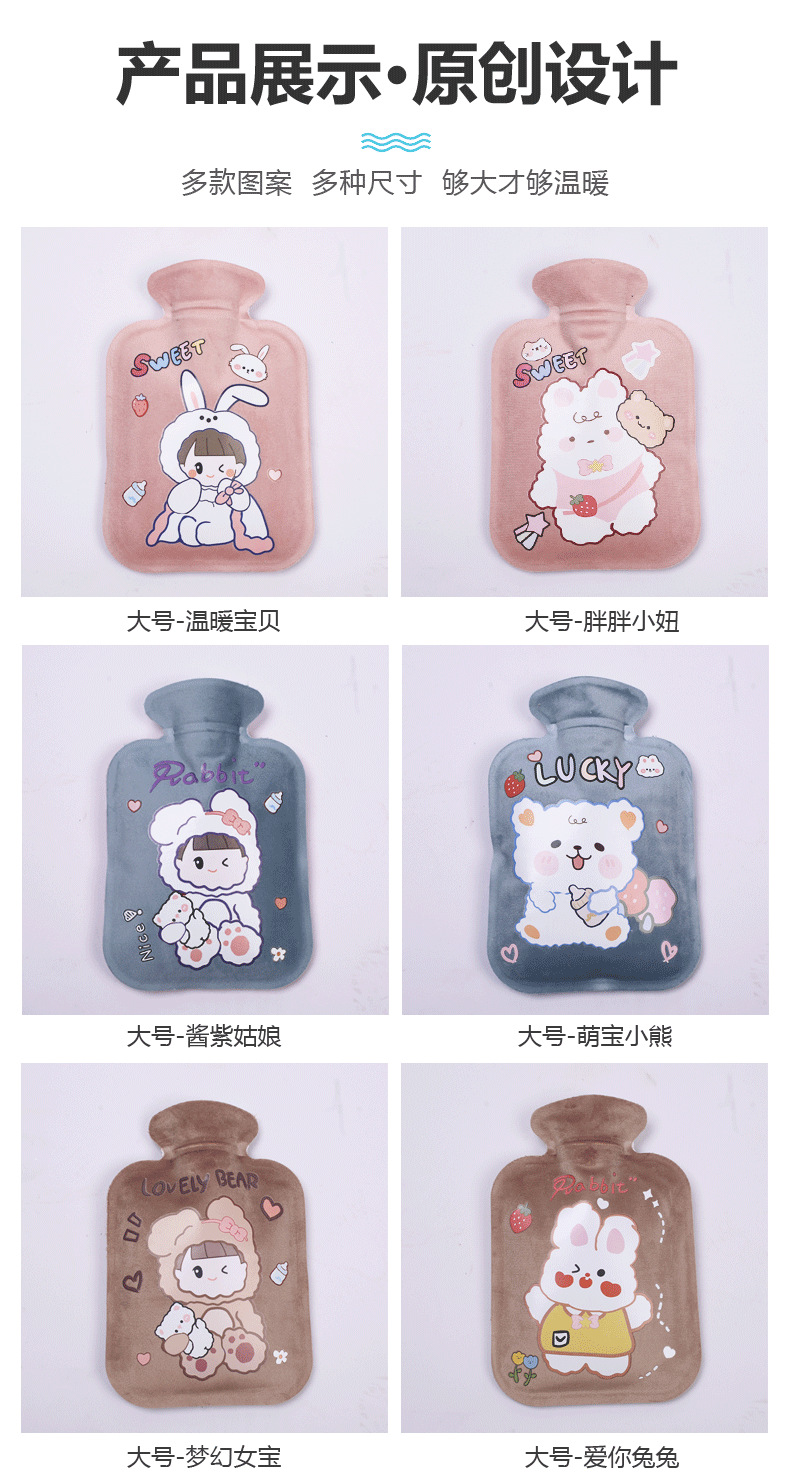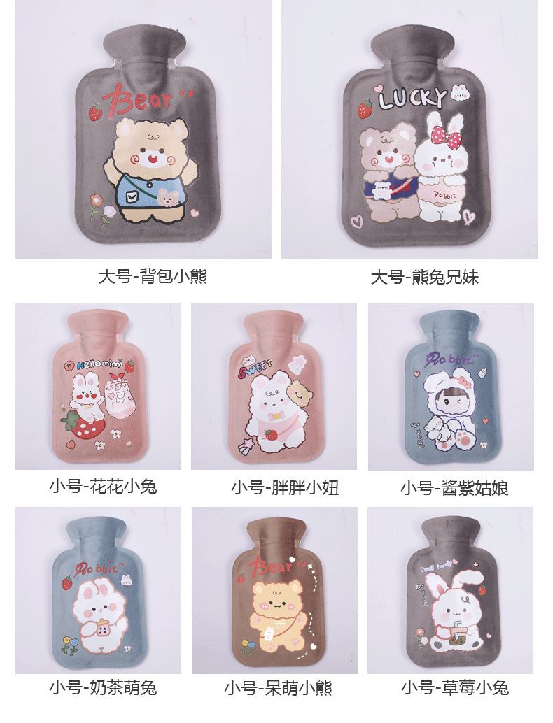 颜色 大号随机混发,小号随机混发,新款大号混发,大号熊兔兄妹,大号背包小熊,大号温暖宝贝,大号胖胖小妞,大号酱紫姑娘,大号萌宝小熊,大号梦幻女宝,大号爱你兔兔,大号灰色男孩,小号花花小兔,小号胖胖小妞,小号萌宝小熊,小号酱紫姑娘,小号草莓小兔,小号棕可爱熊,透明热水袋混发