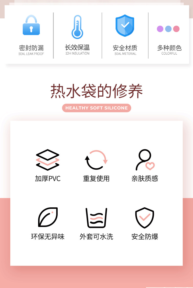 新款短毛绒热水袋材质更新换代防爆 防裂 不漏水 不掉毛质量保证双层防烫
