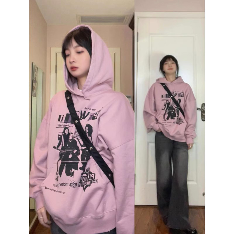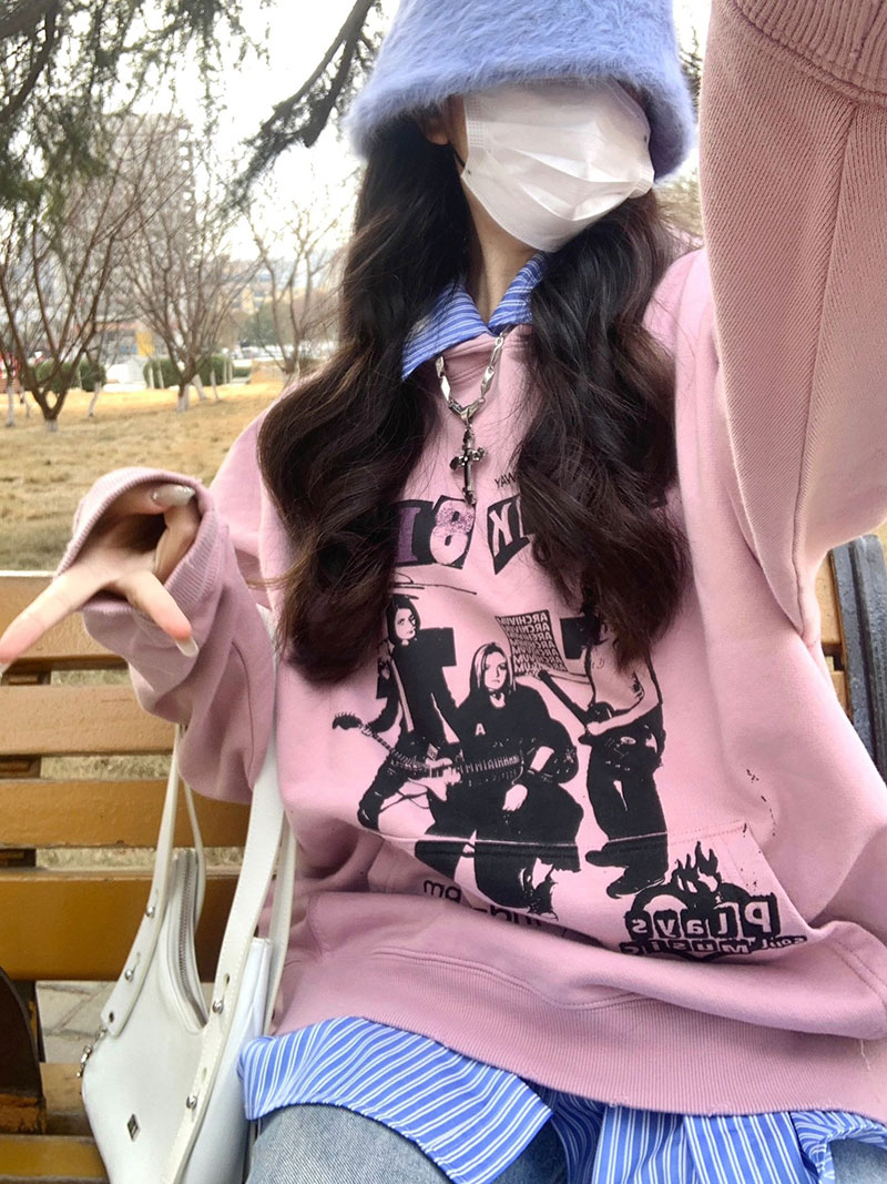 美式復古設計感連帽長袖厚棉T女薄款春秋冬2023新款韓版慵懶風外套