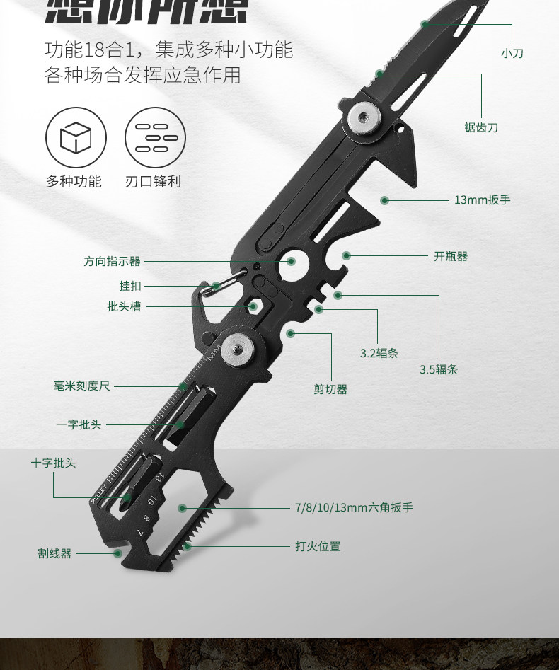 戶外摺疊多功能組合工具卡隨身便捷旅行露營EDC救生小工具扳手刀
