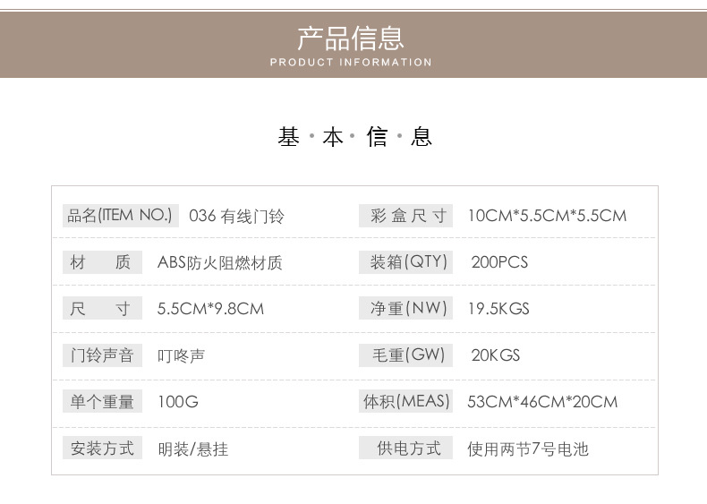 二代升级款长待机款式漂亮叮咚有线门铃厂家批发跨境热卖