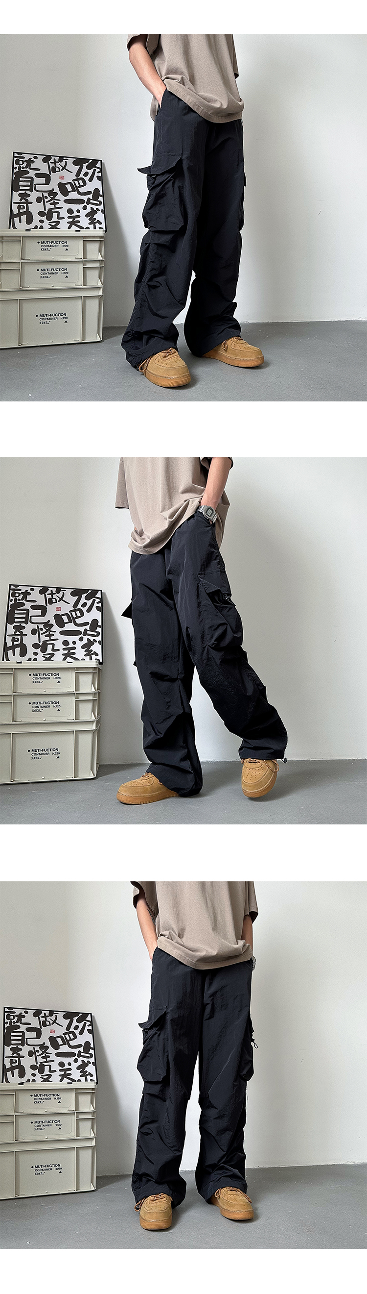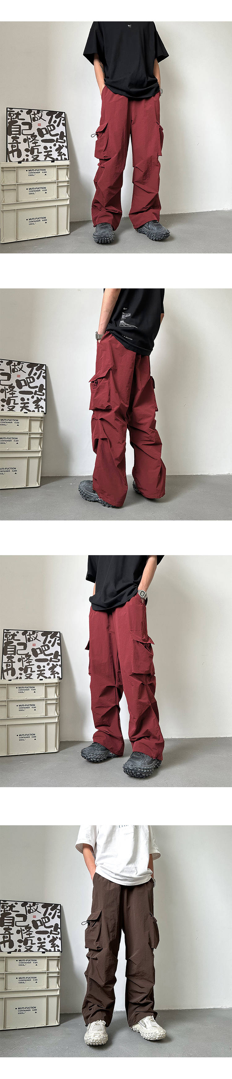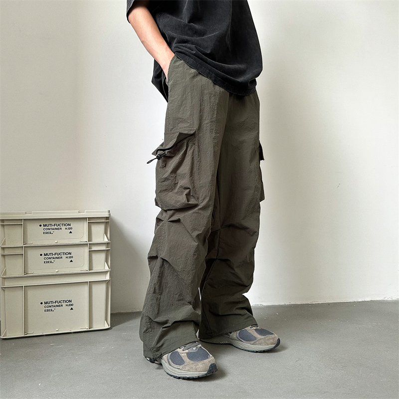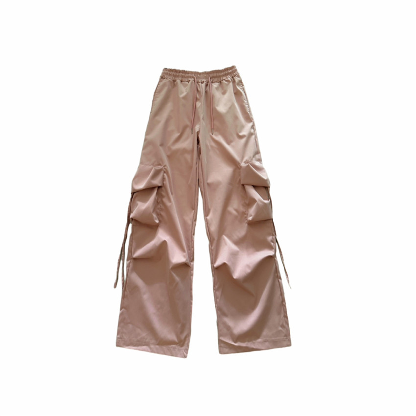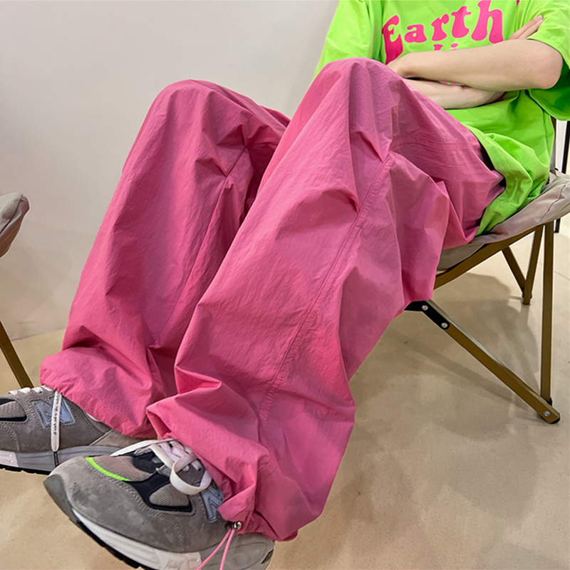 多巴胺穿搭火龍果色褲子冰絲速乾玫紅色衝鋒褲防曬抽繩束腳工裝褲