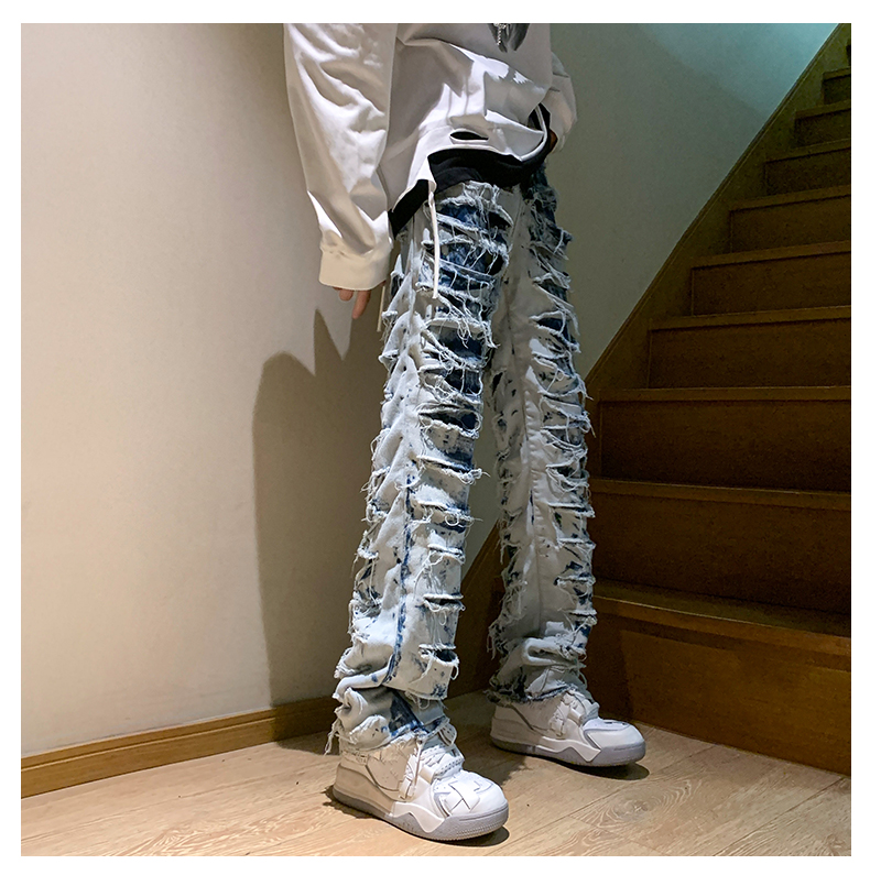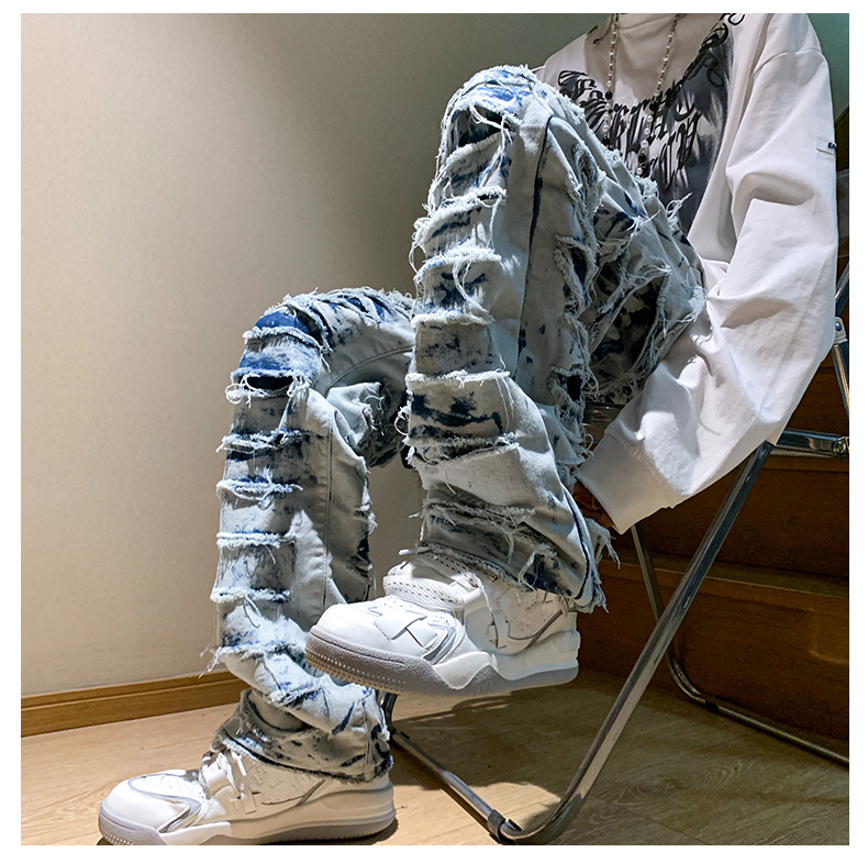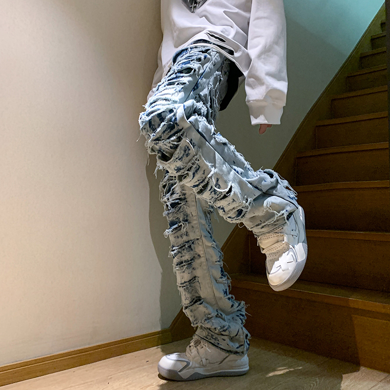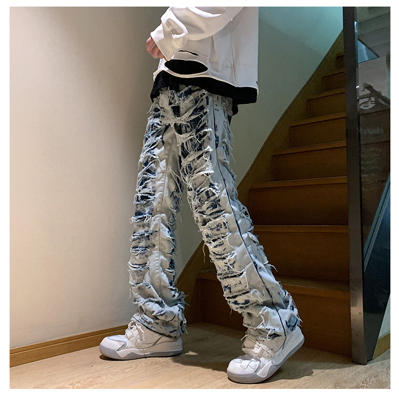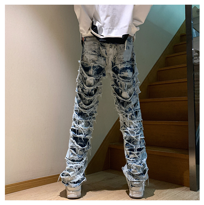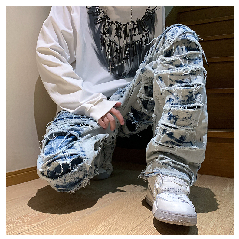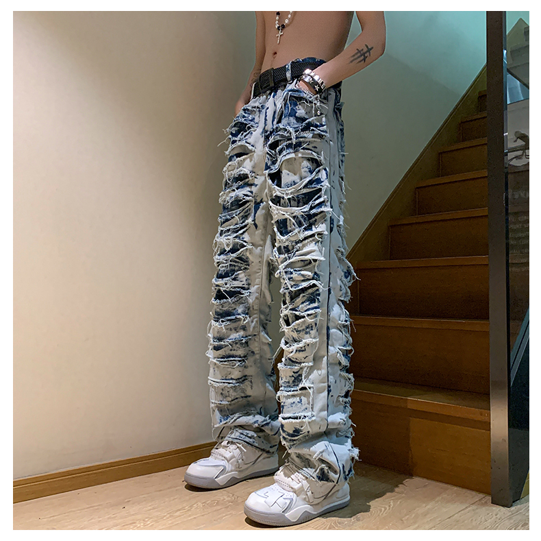 美式街頭hiphop褲子男ins潮歐美高街直筒乞丐褲西海岸炸街牛仔褲