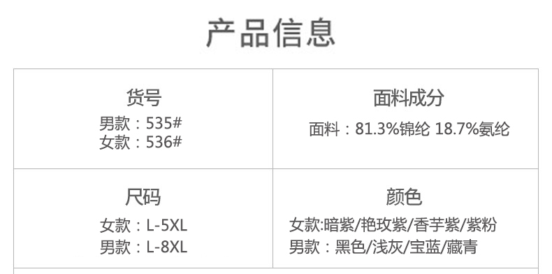 顏色分類 男-藍色 男-藏青 男-黑色 男-淺灰 女-暗紫 女-香芋紫 女-嫣紅 女-紫粉