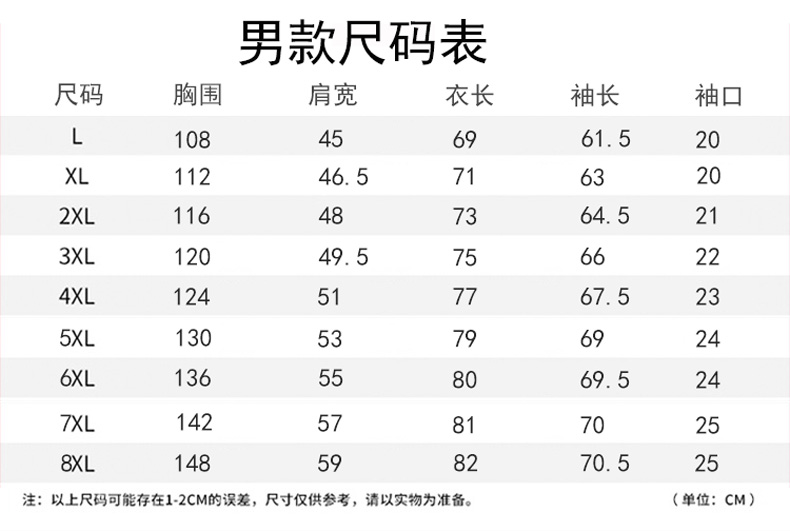尺碼 L XL 2XL 3XL 4XL 5XL 6XL 7XL 8XL