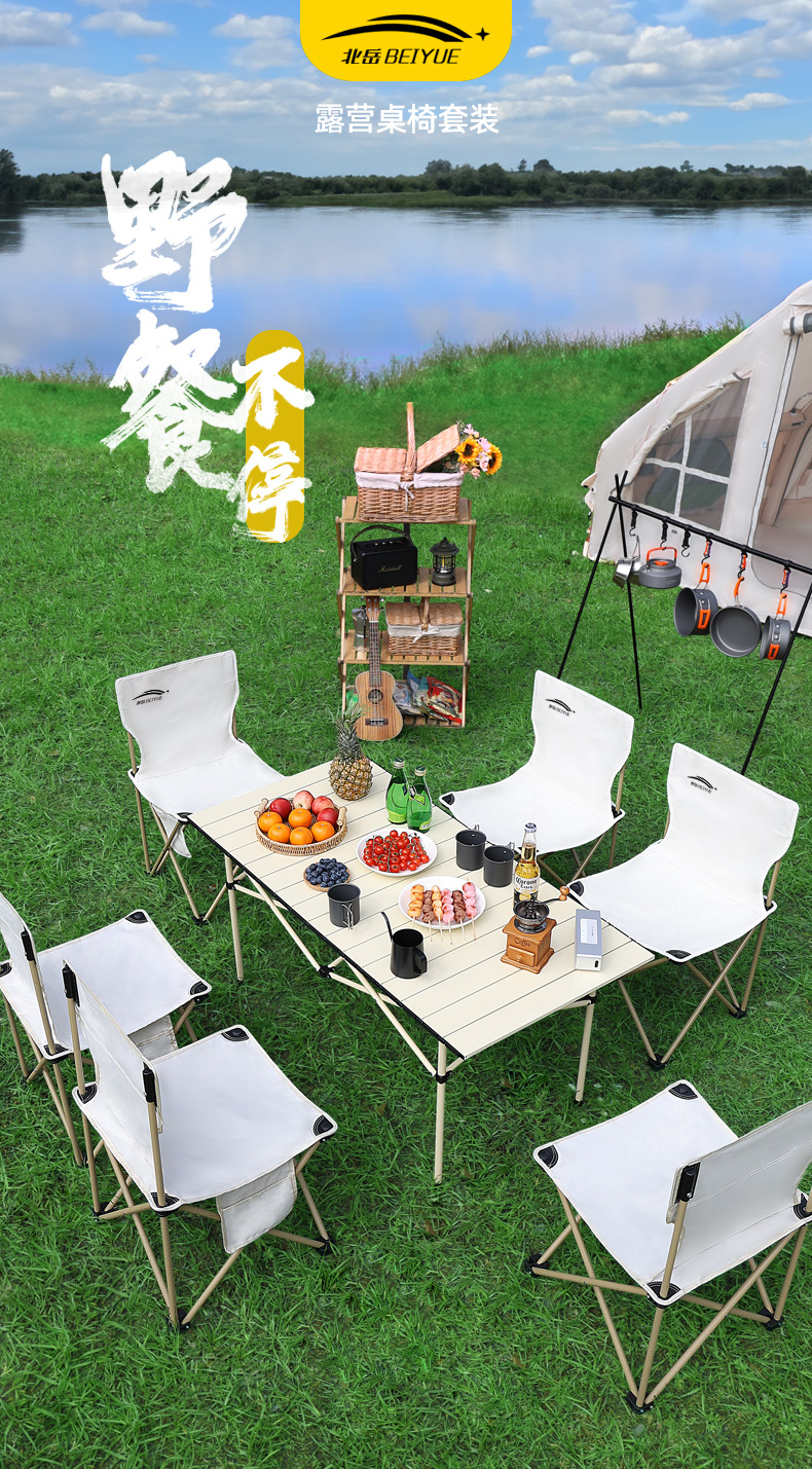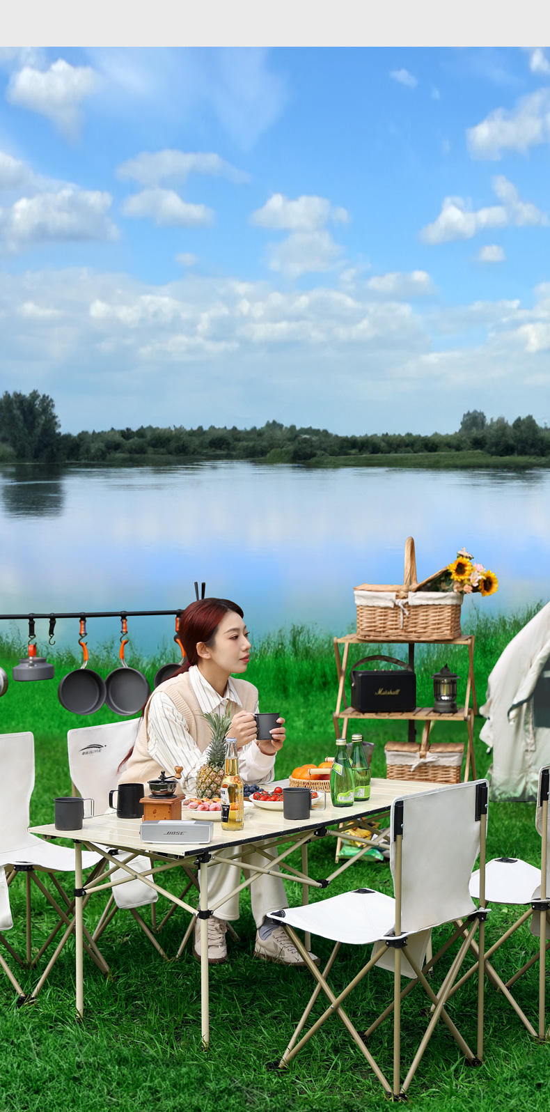 戶外摺疊桌椅可攜式蛋卷桌子超輕野餐桌燒烤擺攤露營裝備用品套裝
