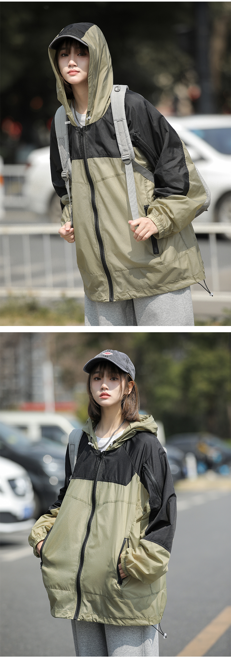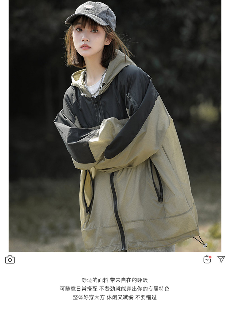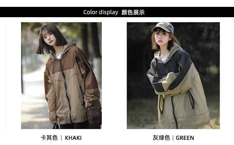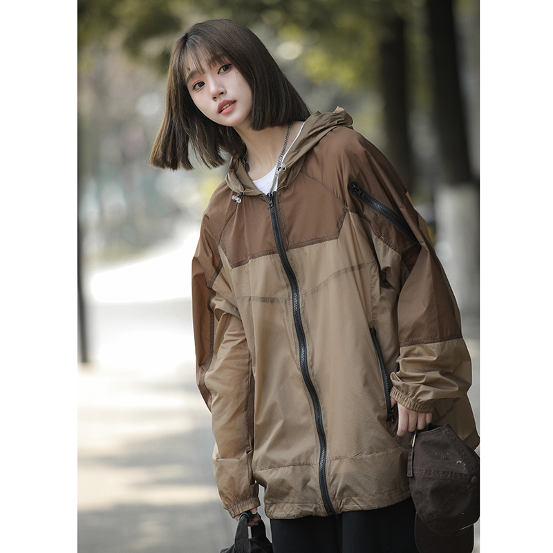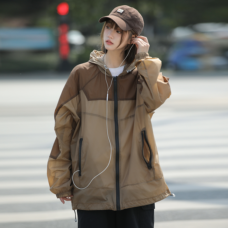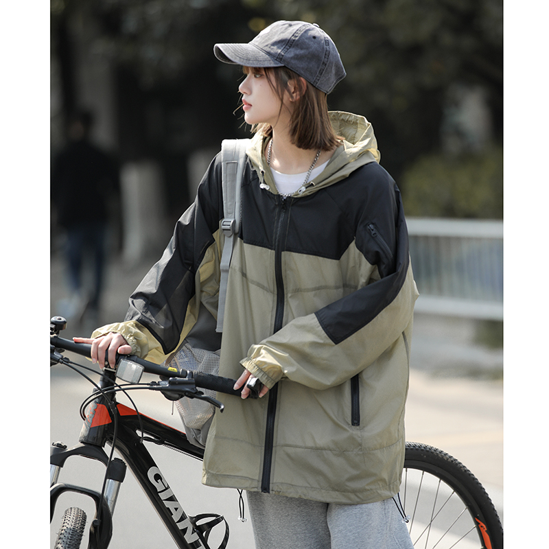 戶外冰絲連帽防曬衣男夏季薄款美式復古潮牌撞色大尺碼休閒防曬外套