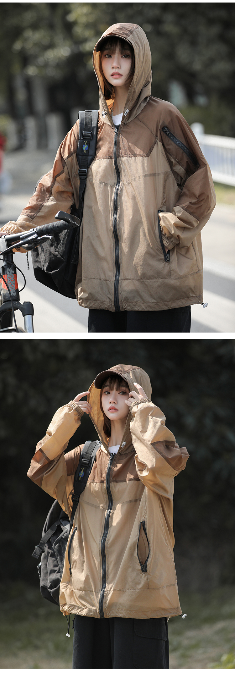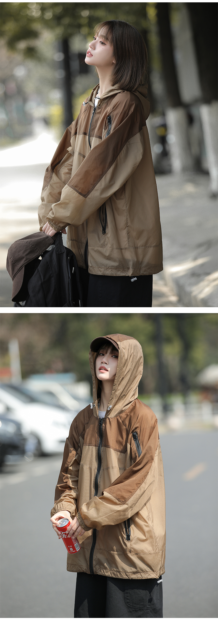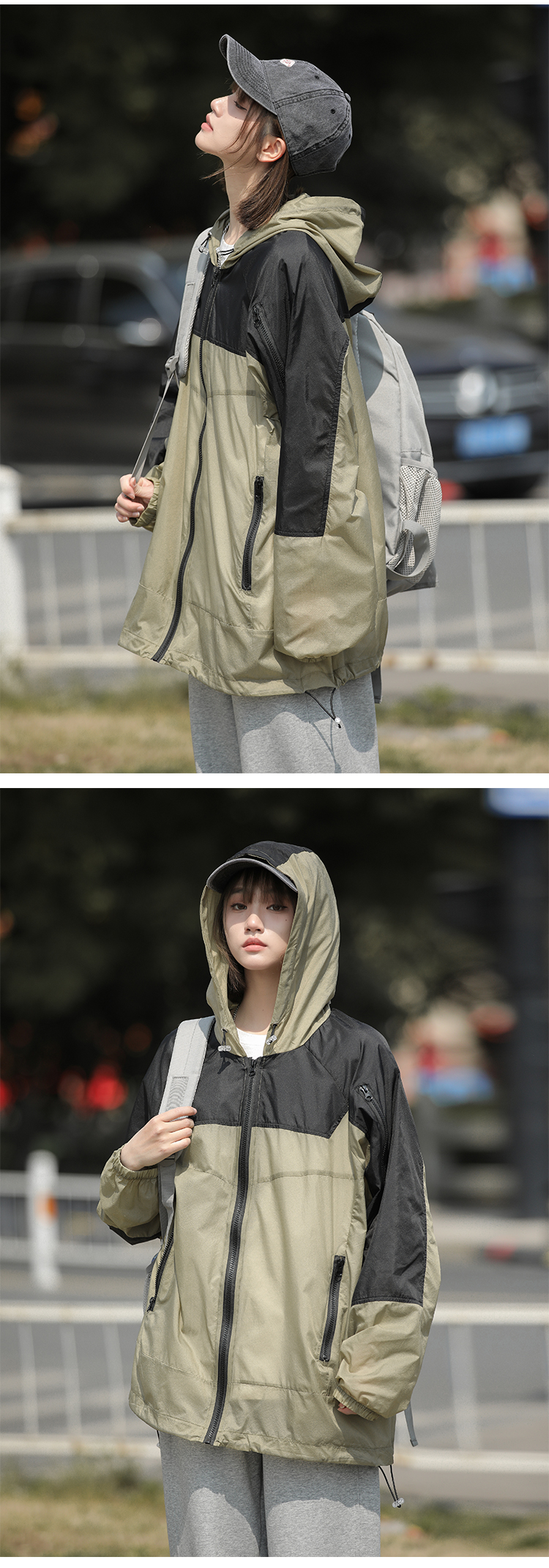 戶外冰絲連帽防曬衣男夏季薄款美式復古潮牌撞色大尺碼休閒防曬外套