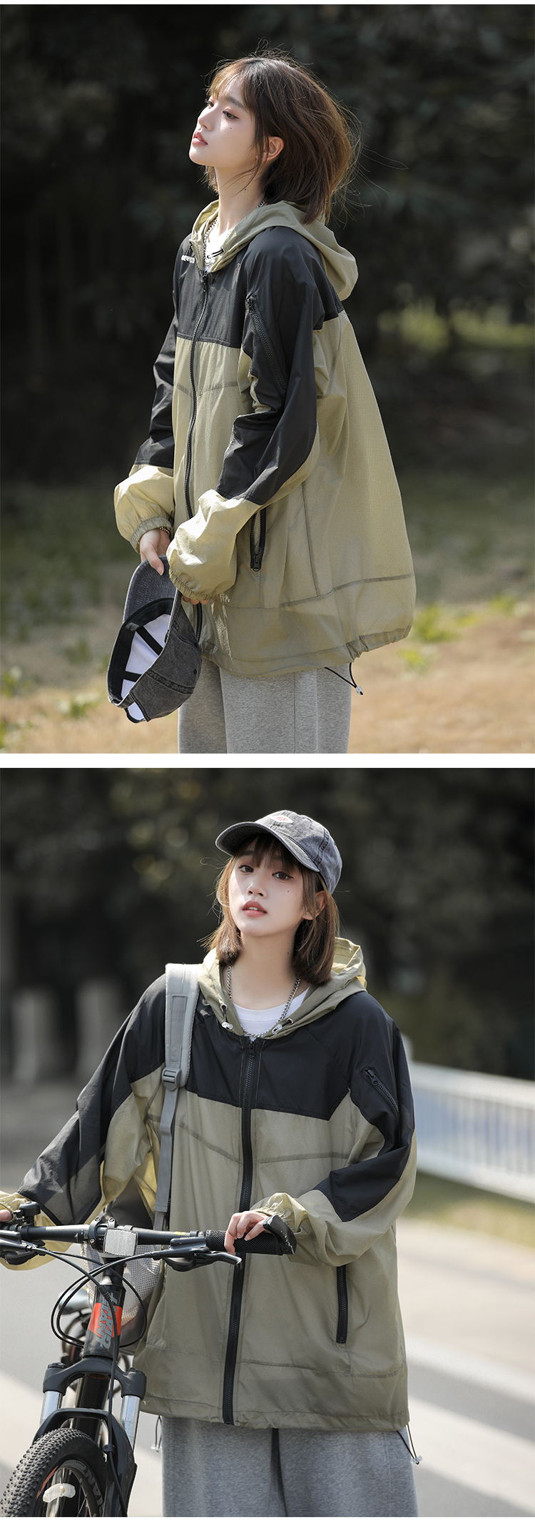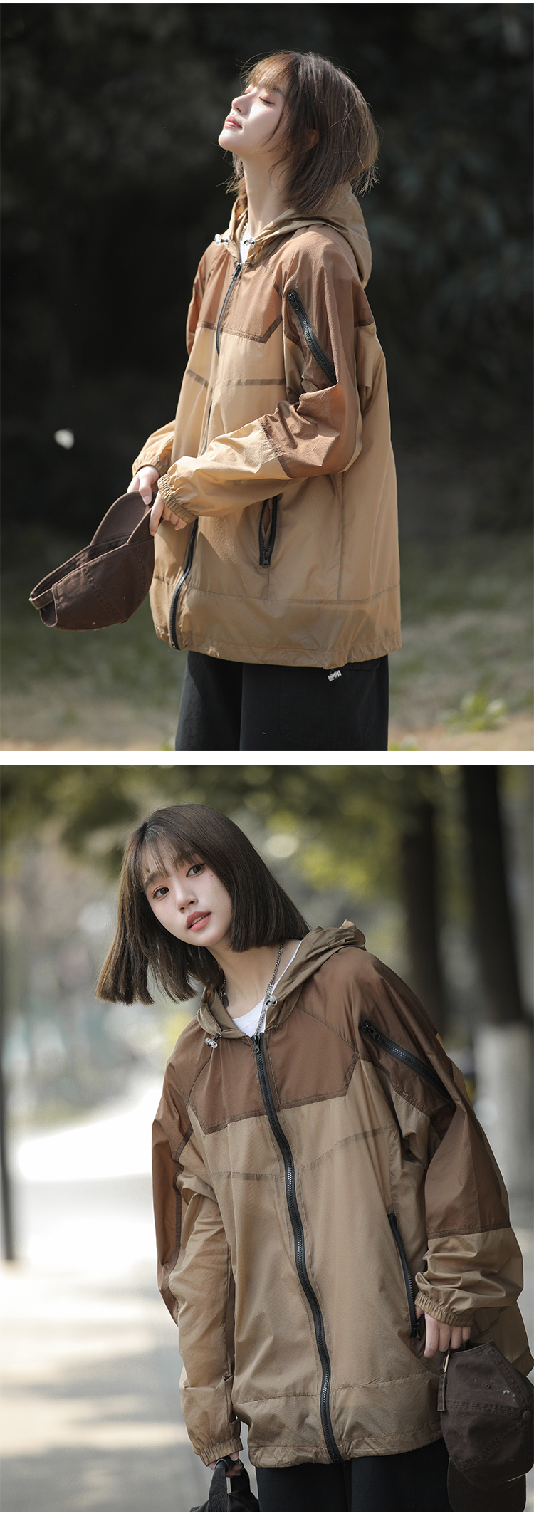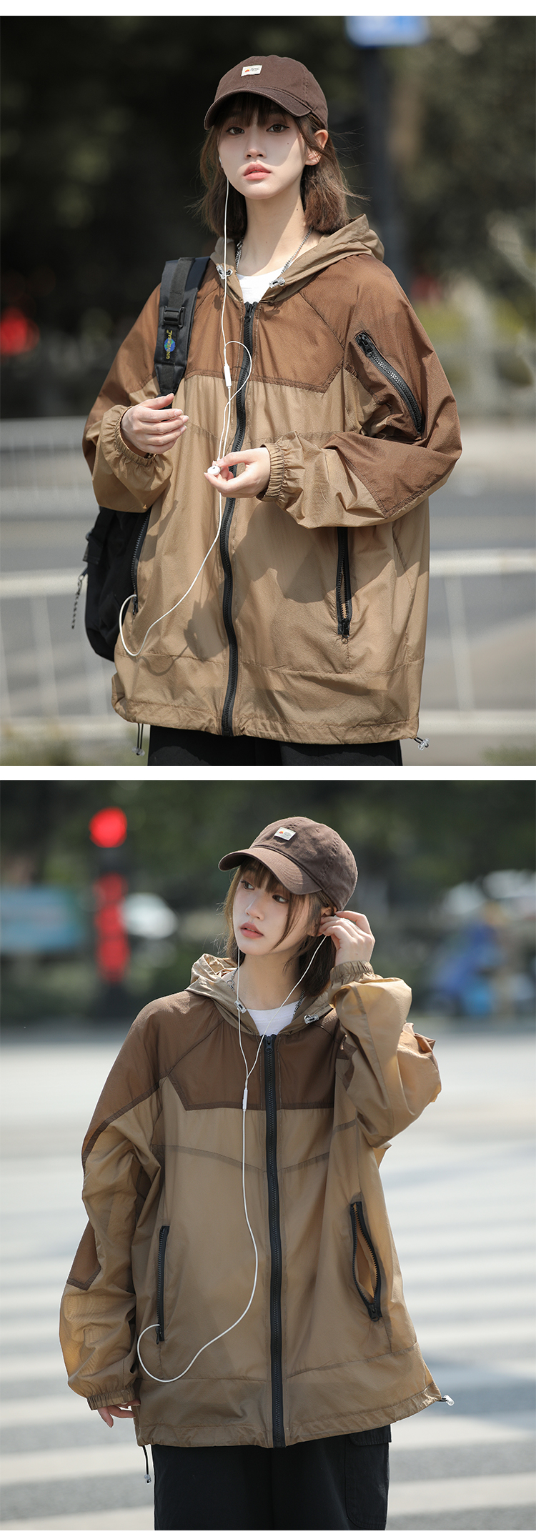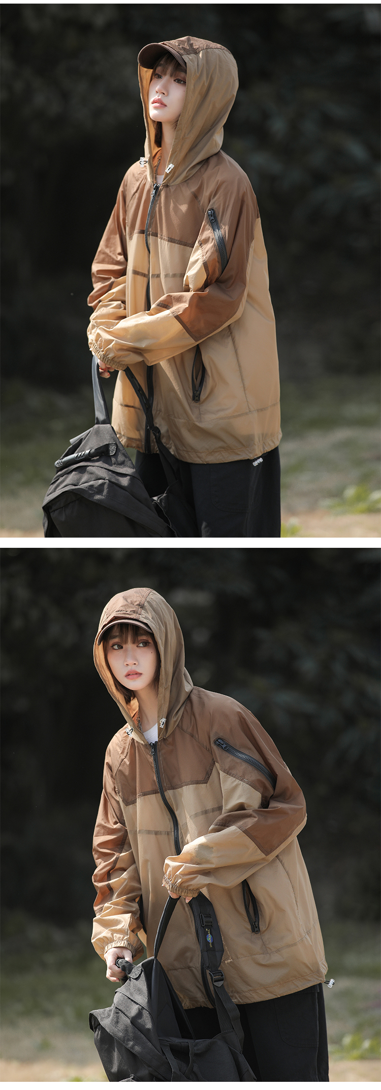 戶外冰絲連帽防曬衣男夏季薄款美式復古潮牌撞色大尺碼休閒防曬外套