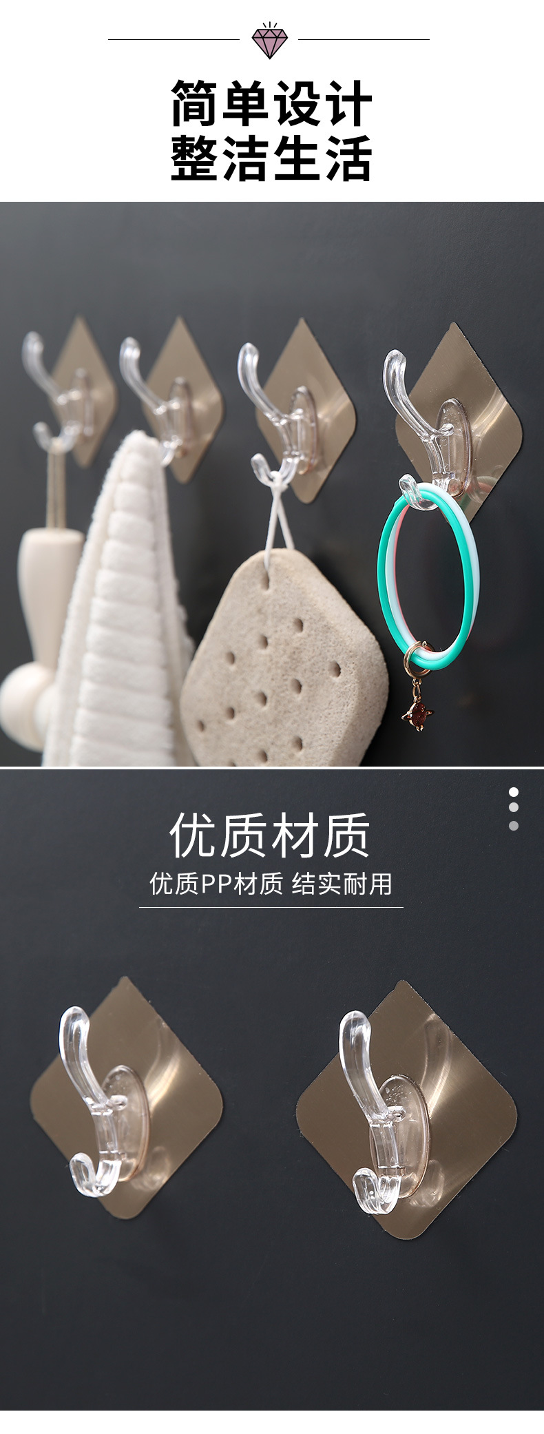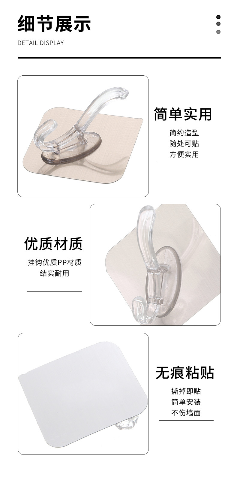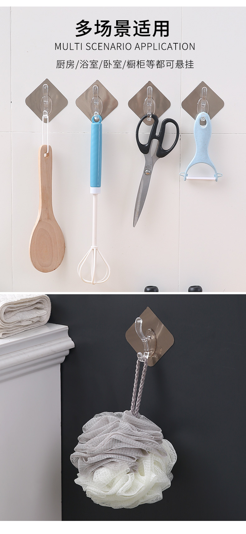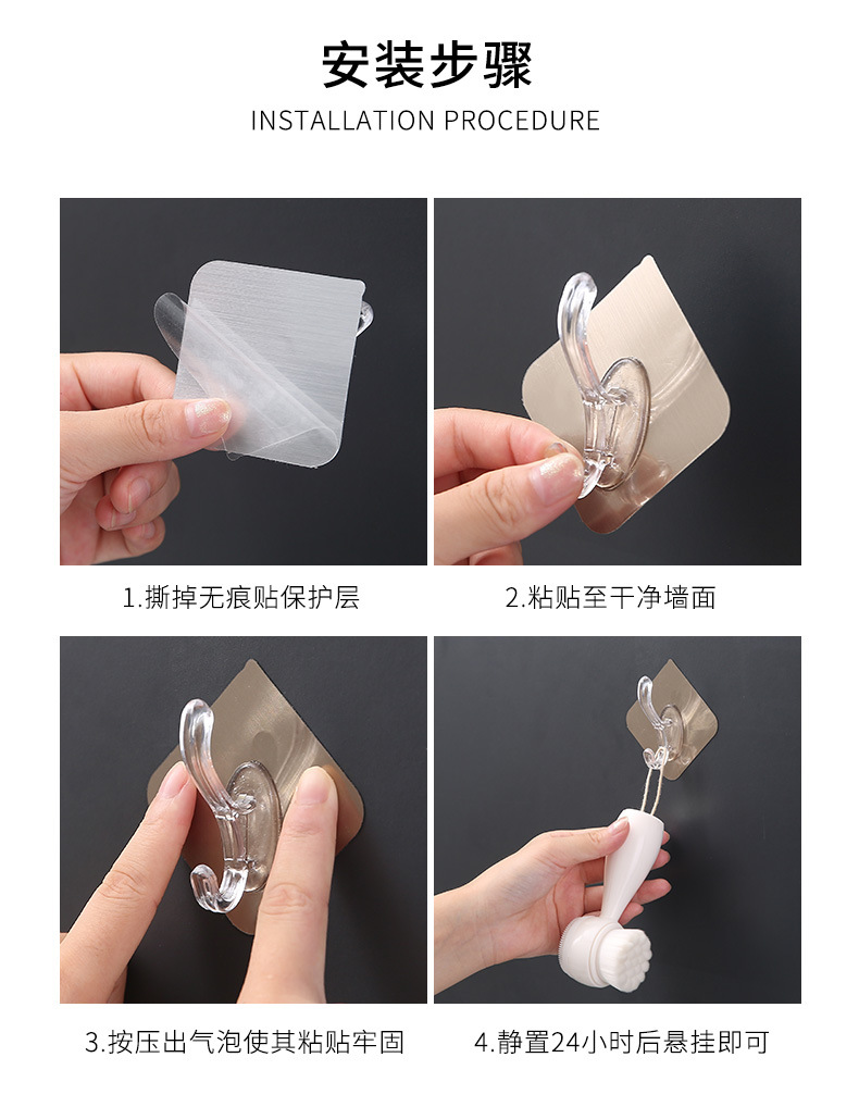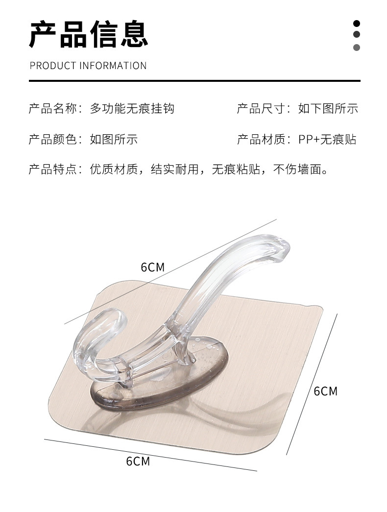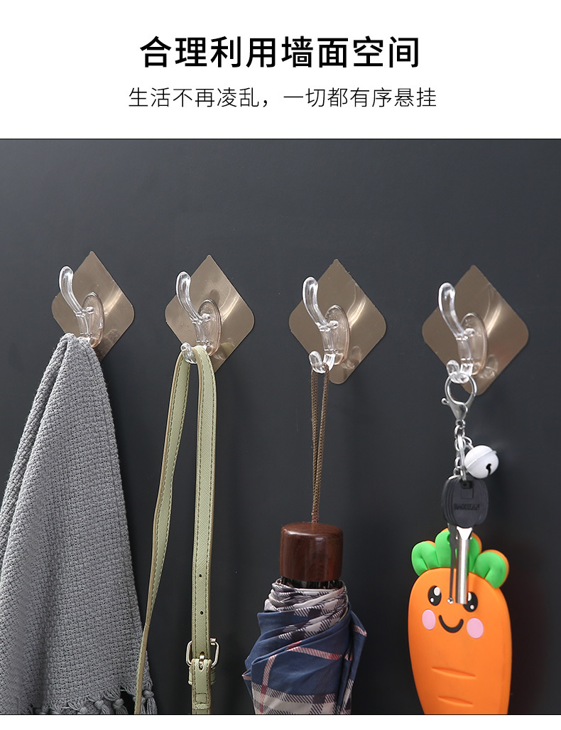 拉丝银透明衣帽挂钩免打孔无痕粘钩强力粘钩壁挂式墙角衣帽批