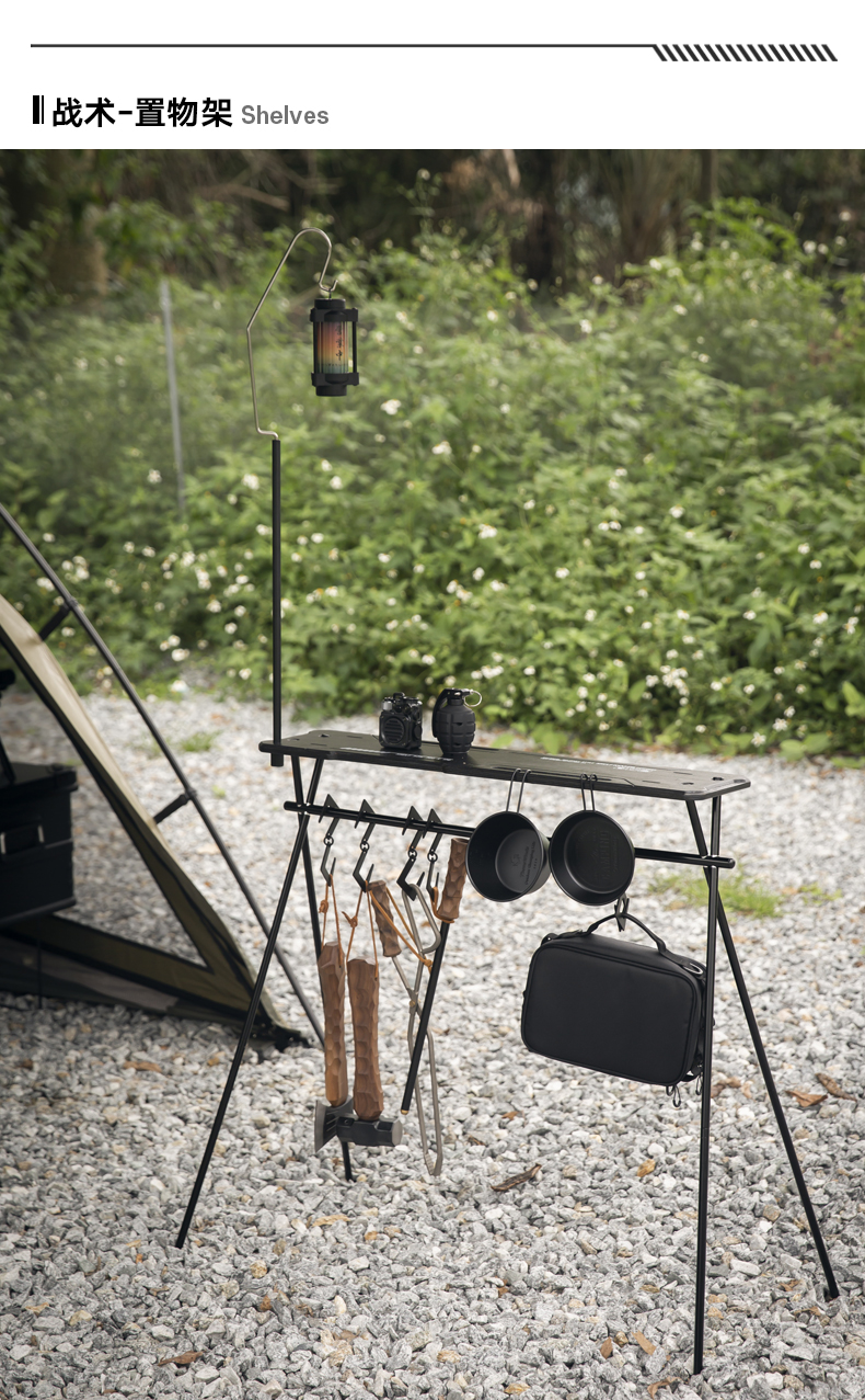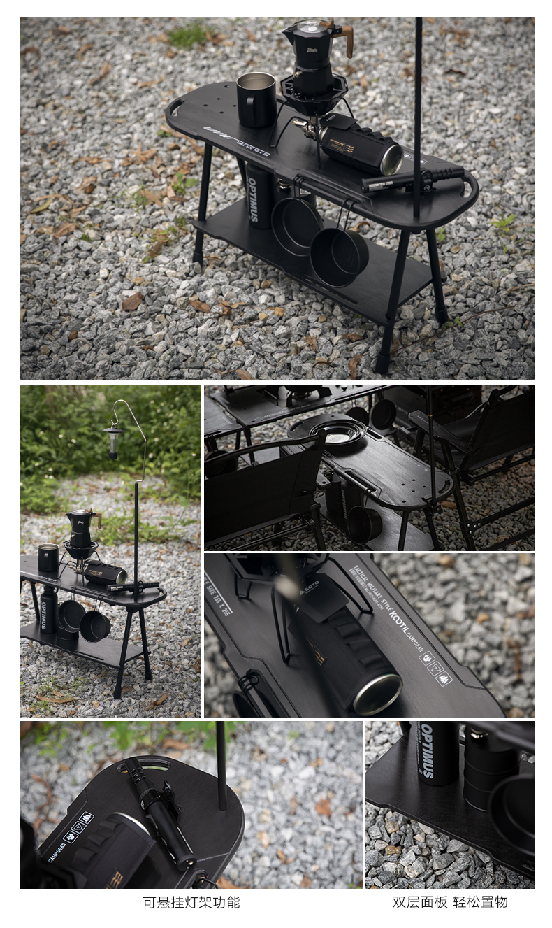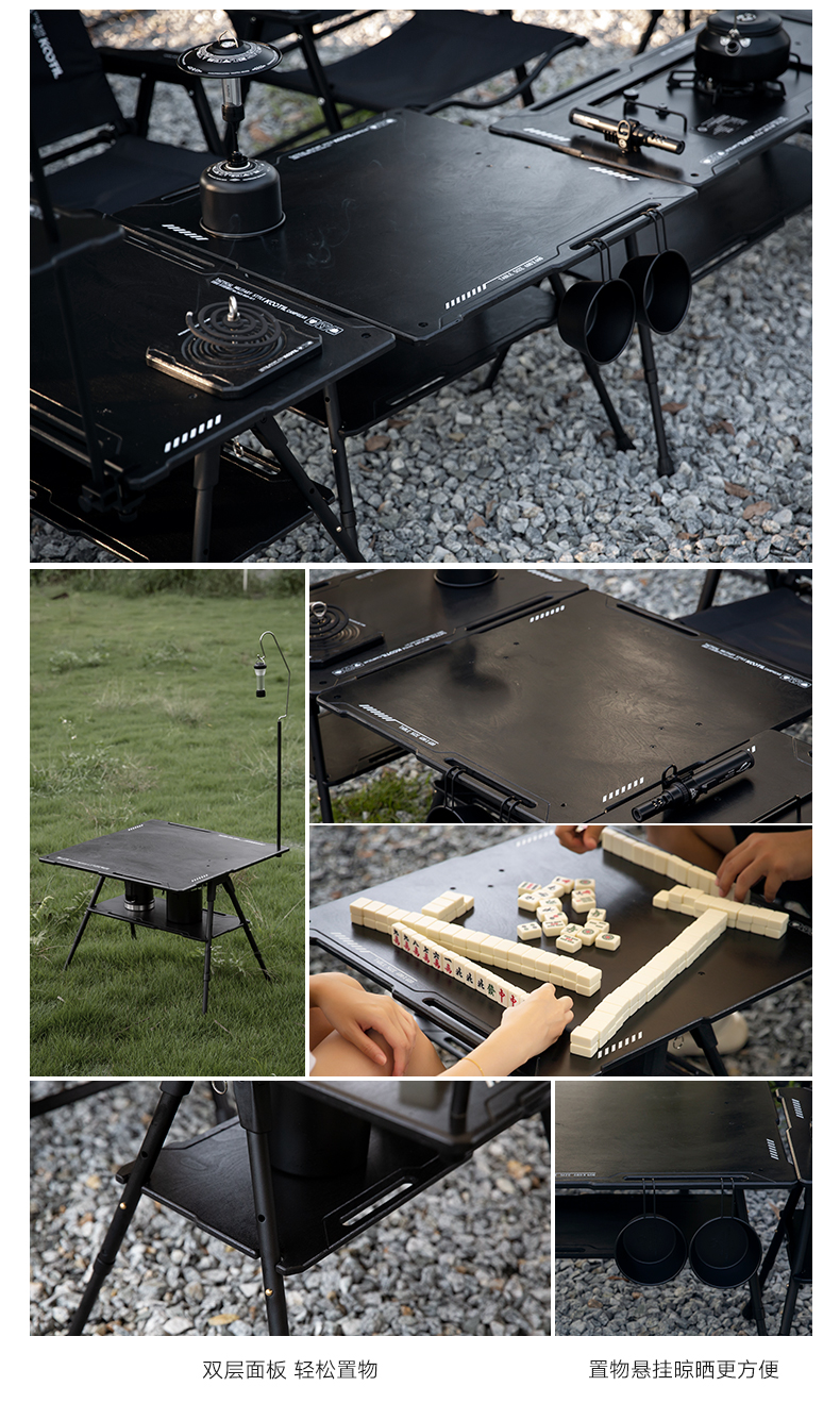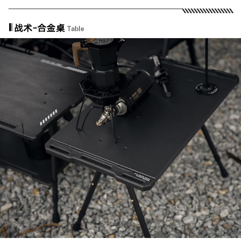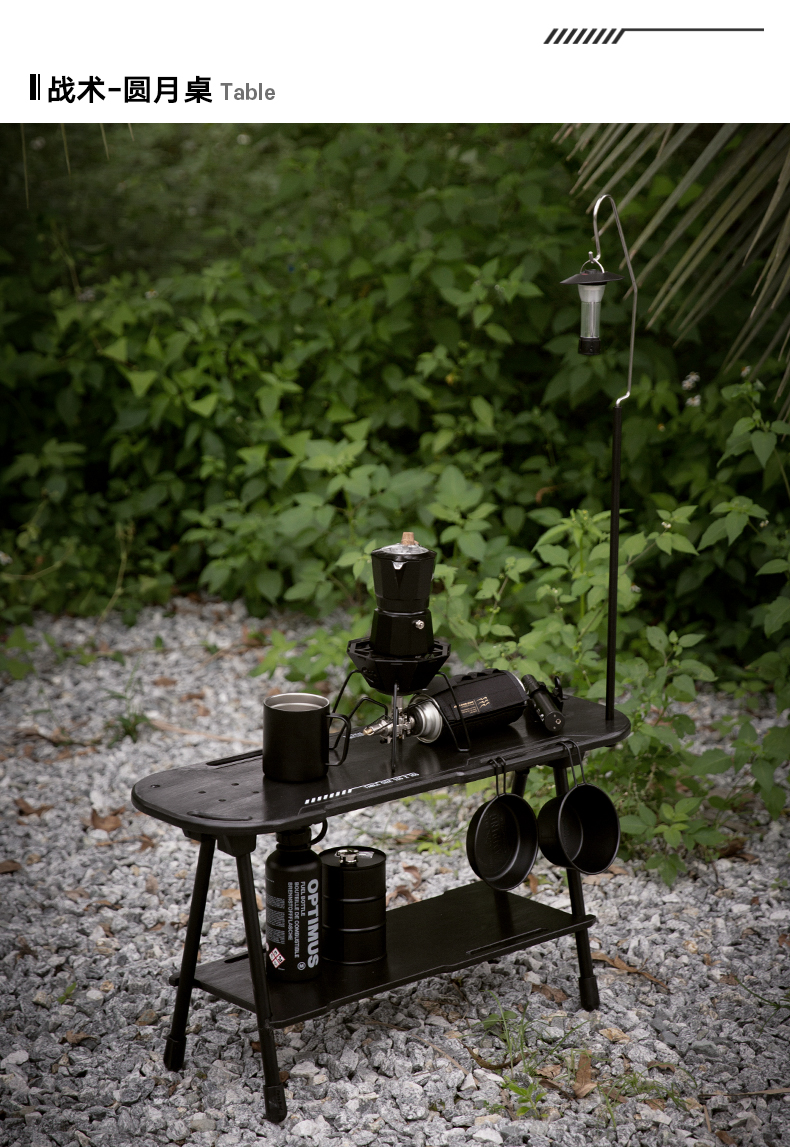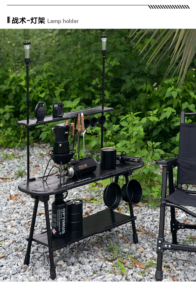 戶外黑化爐竈桌露營戰術桌可攜式野餐摺疊升降igt桌子輕量置物架