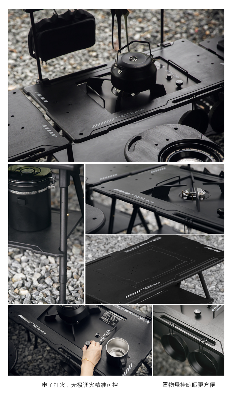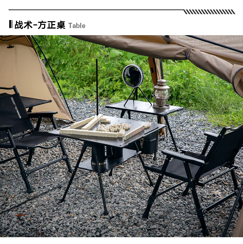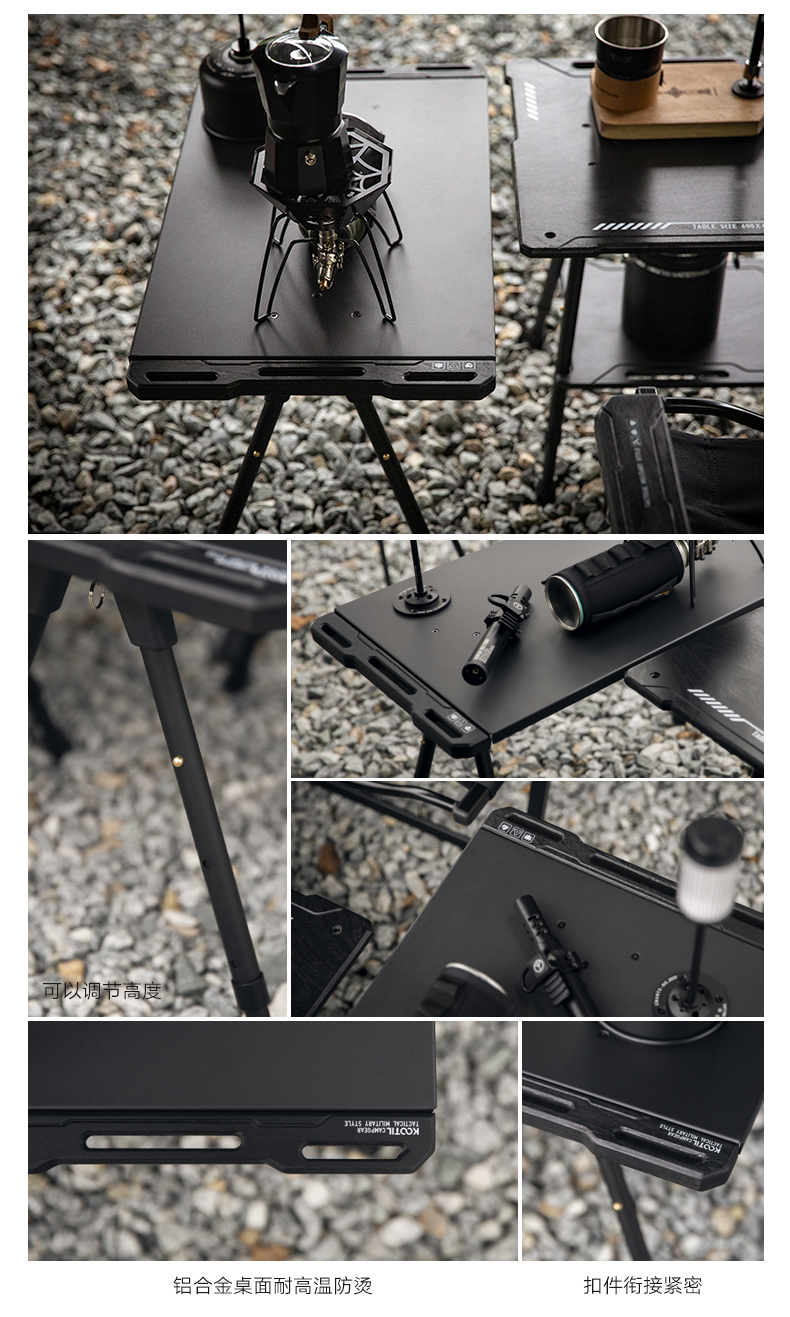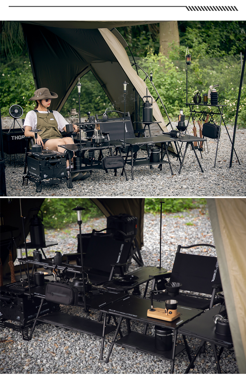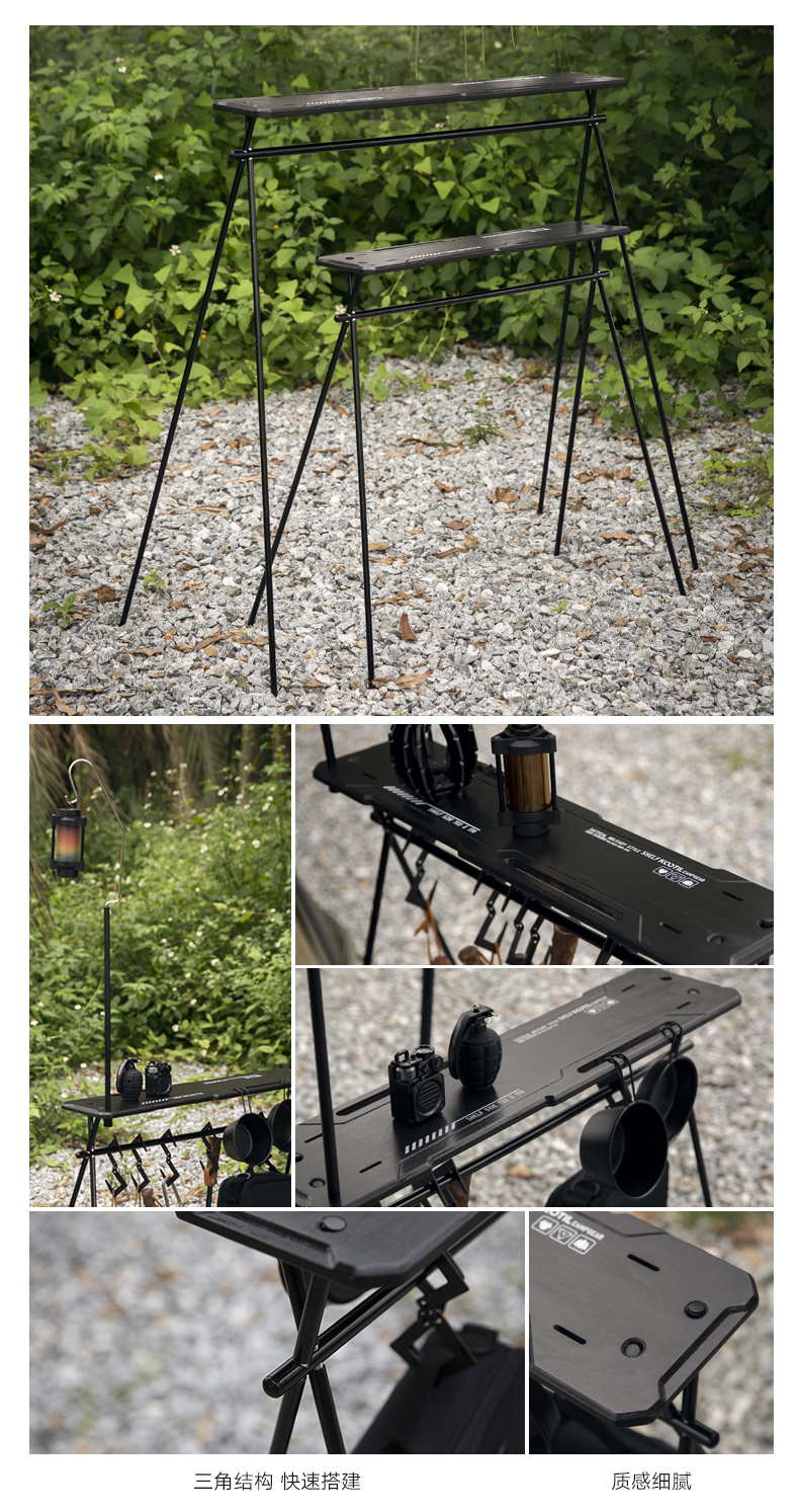 戶外黑化爐竈桌露營戰術桌可攜式野餐摺疊升降igt桌子輕量置物架