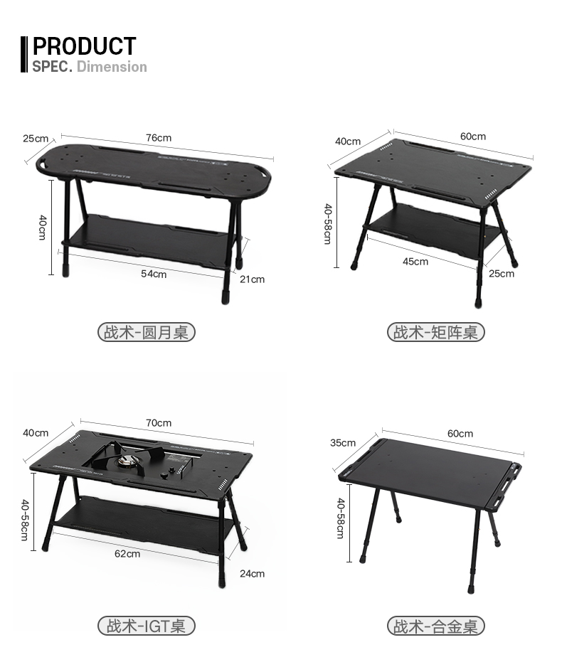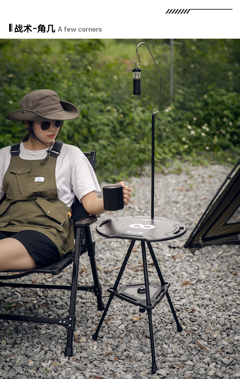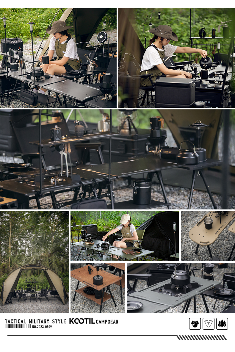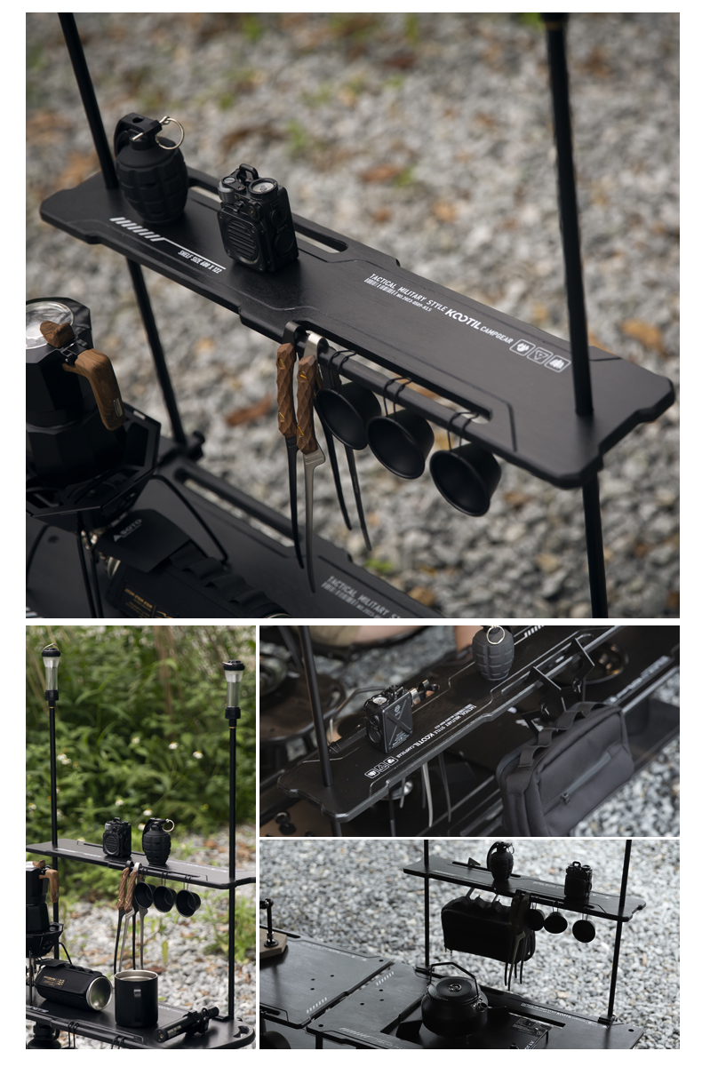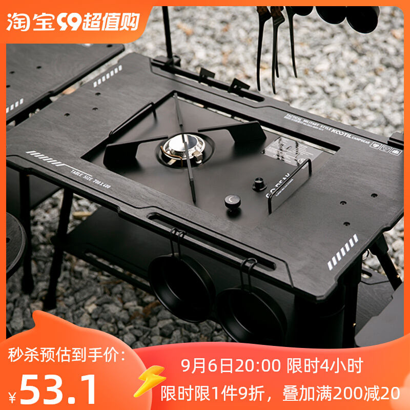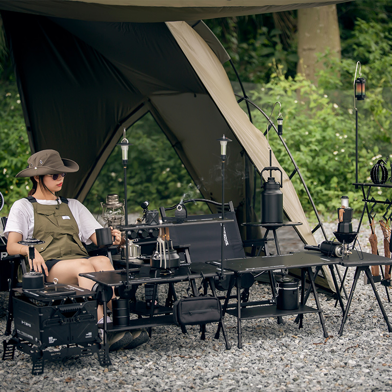 戶外黑化爐竈桌露營戰術桌可攜式野餐摺疊升降igt桌子輕量置物架