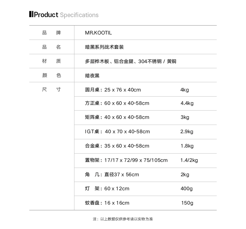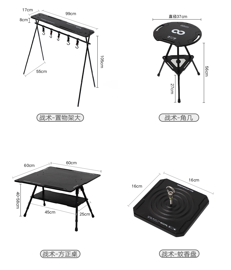 顏色分類 IGT戰術桌,矩陣桌,合金桌,圓月桌,大號晾衣架,小號置物架,戰術角幾,蚊香盤,曜石黑中號加寬扶手椅,曜石黑大號加寬扶手椅,燈架杆,一套戰術桌,戰術置物架燈架,功能燈,IGT桌不含爐子,黑色方正桌