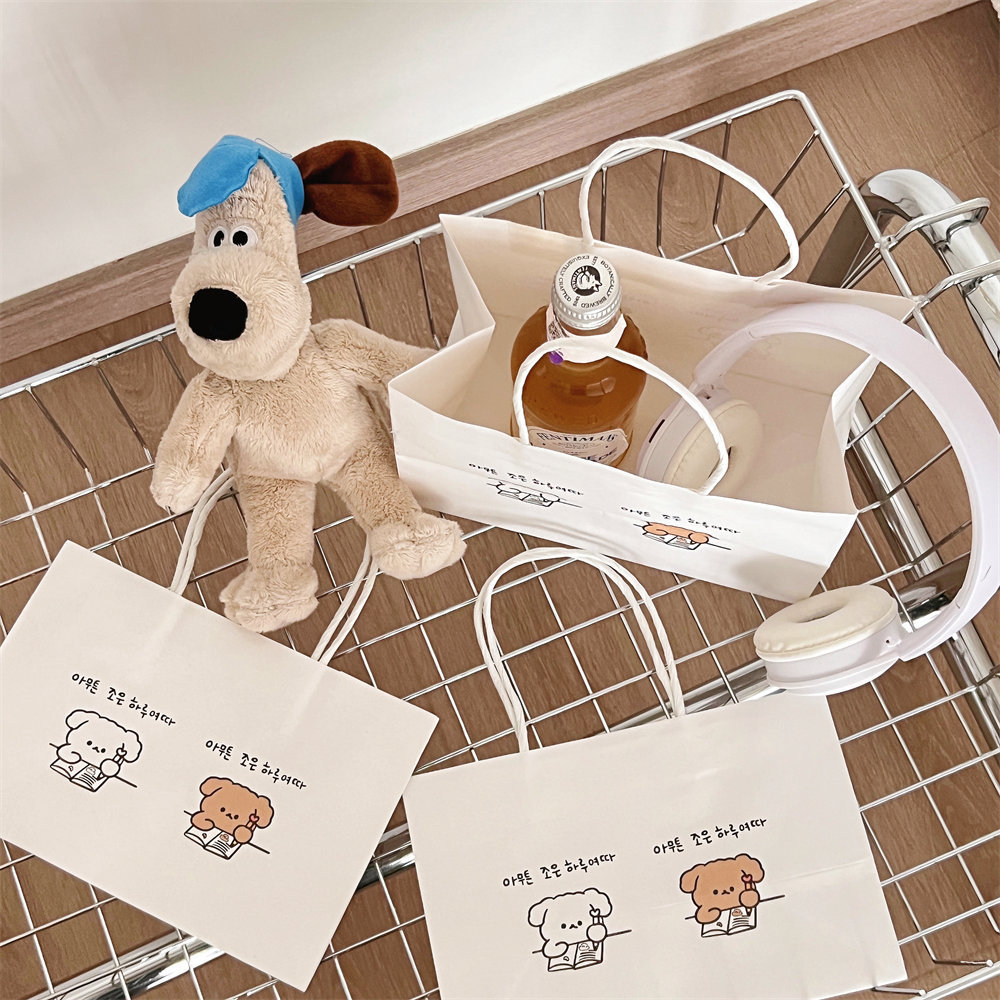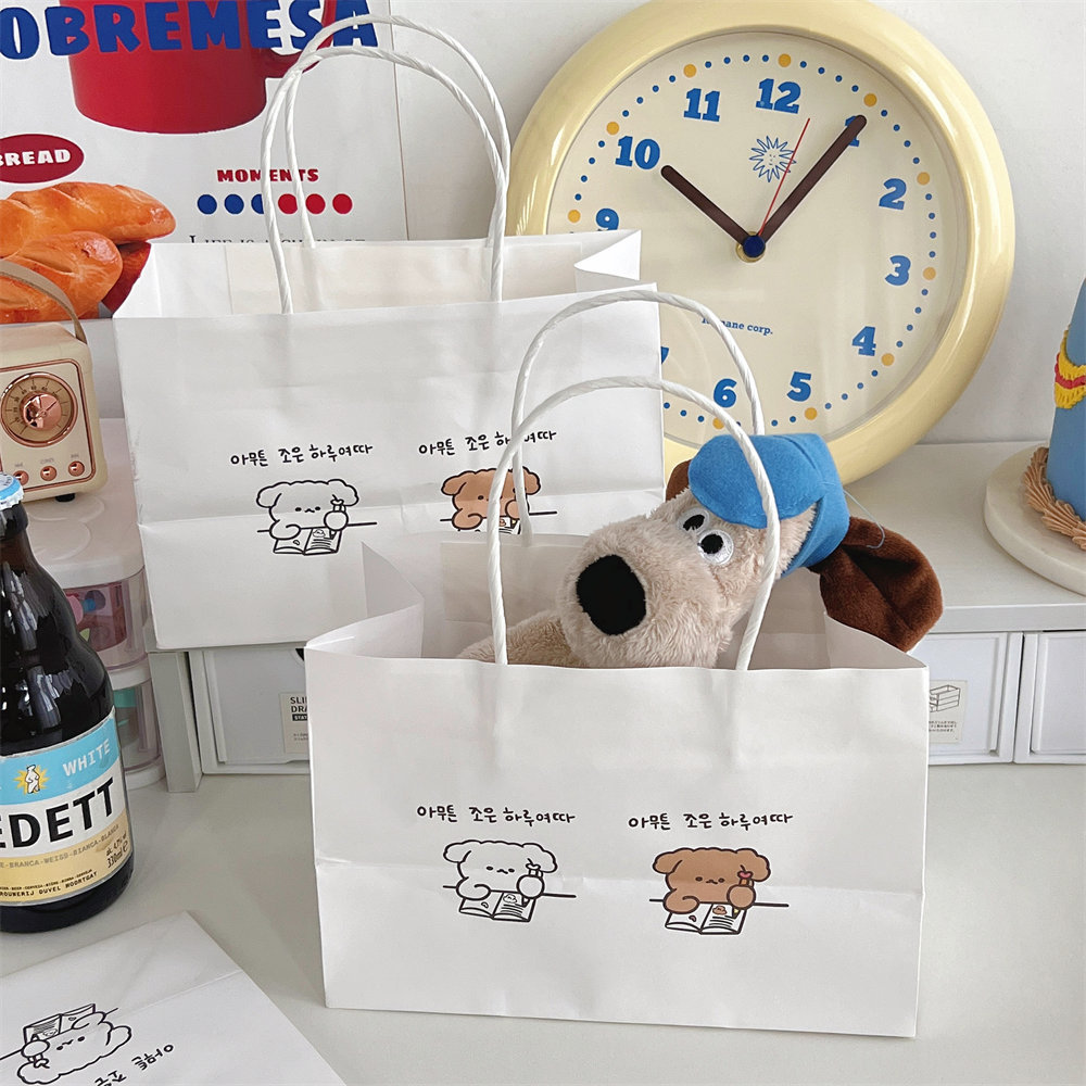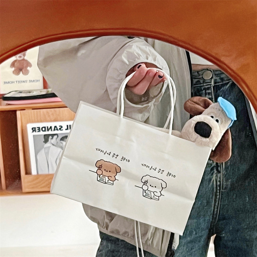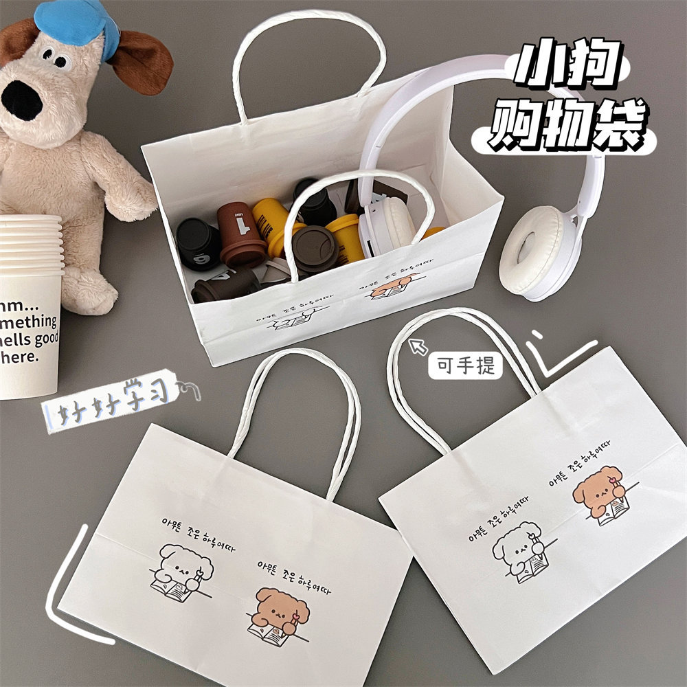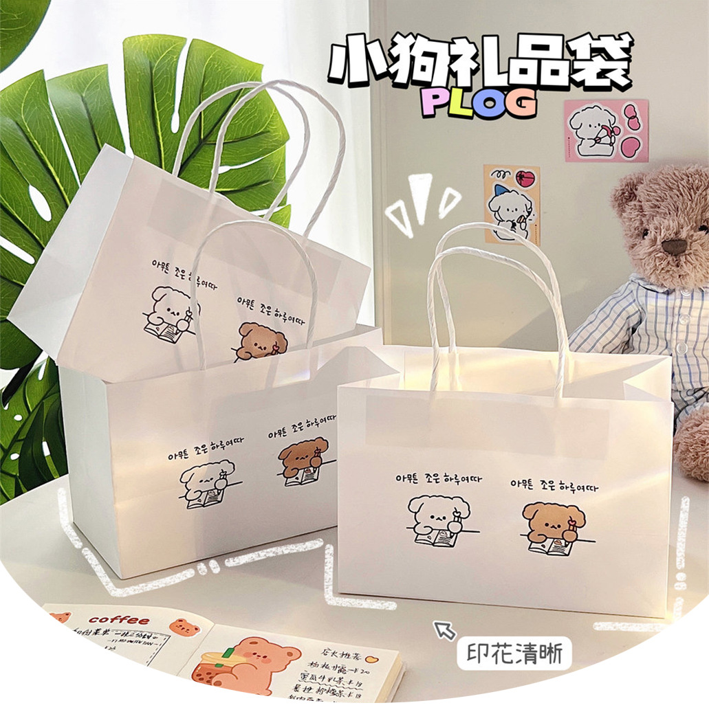 韩风ins小狗印花纸袋简约白色150g牛皮纸手提袋卡通可爱礼品袋子