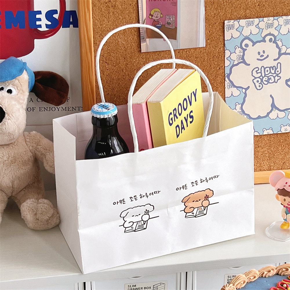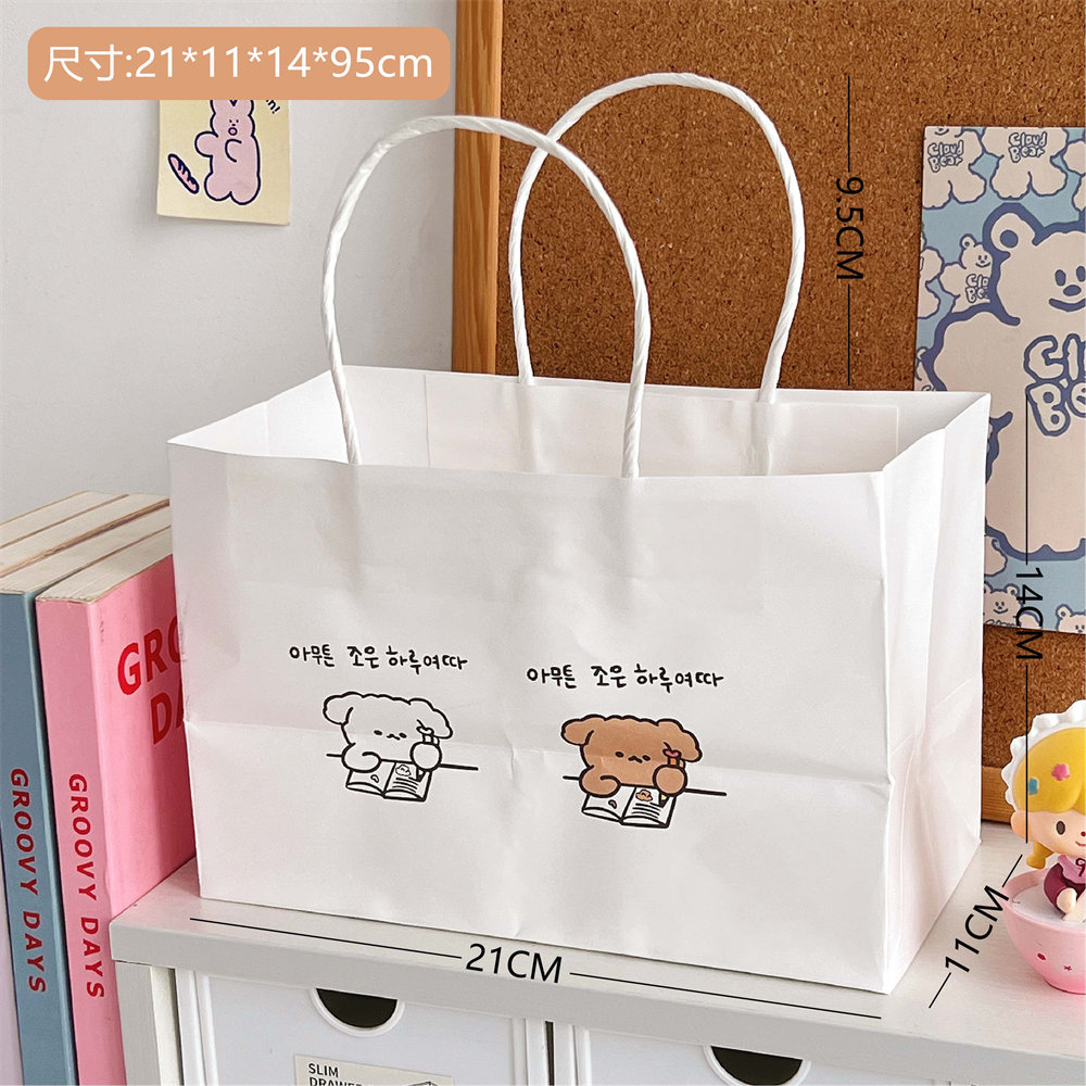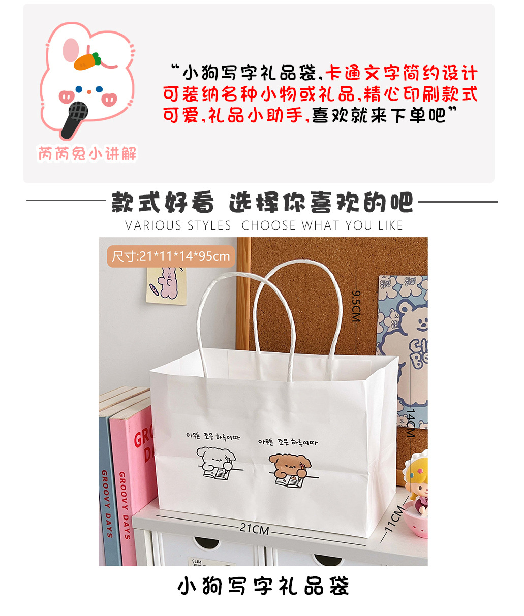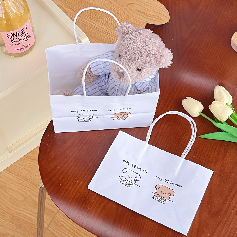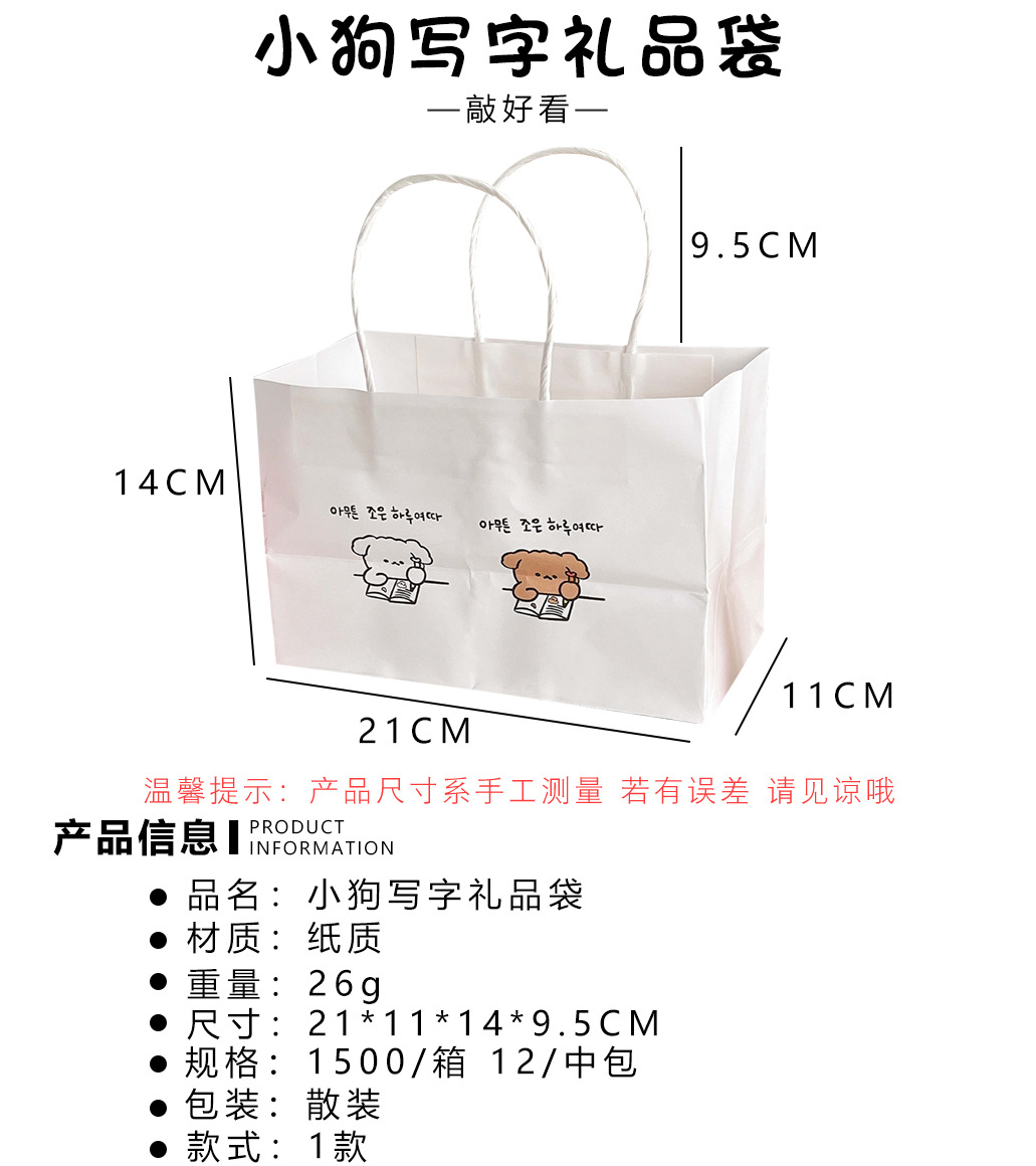 韩风ins小狗印花纸袋简约白色150g牛皮纸手提袋卡通可爱礼品袋子