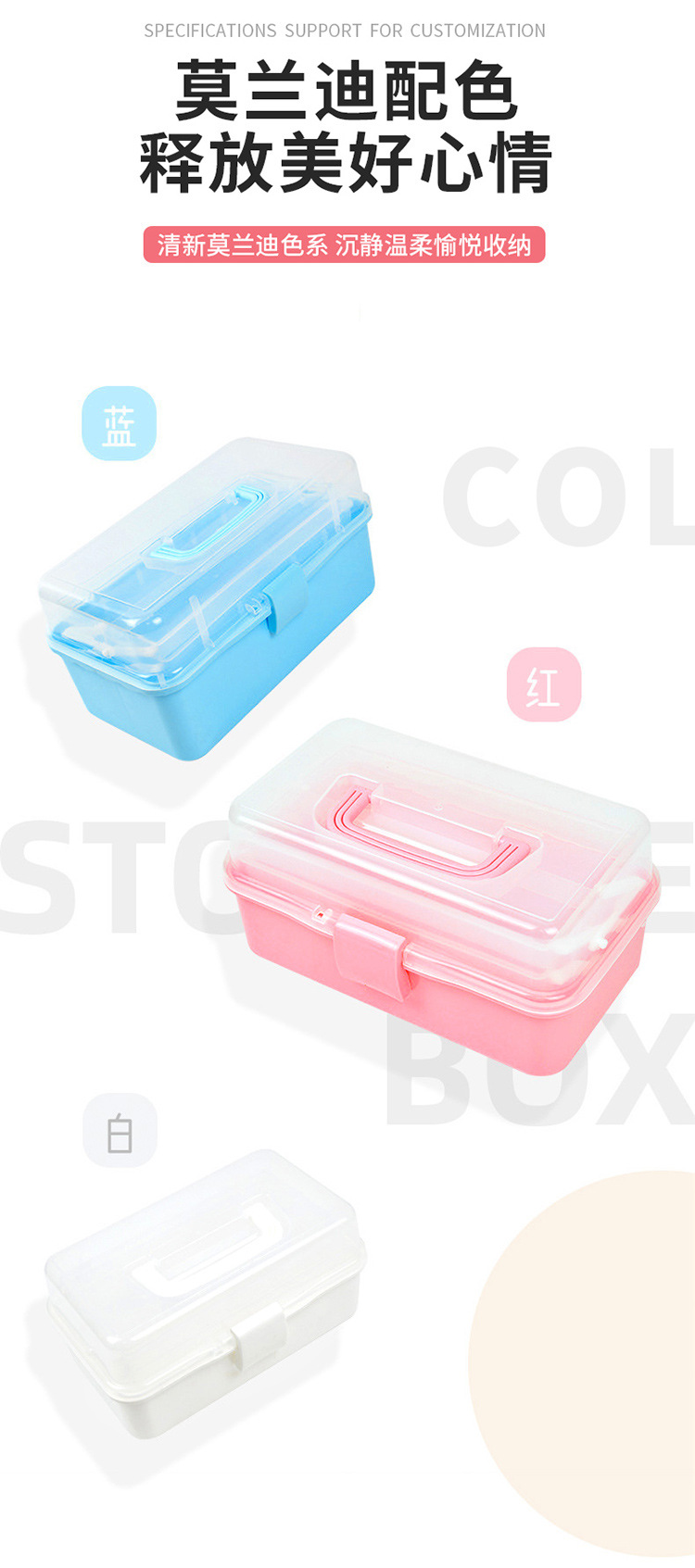 颜色 中号白色三层【17*27*13】,中号粉色三层【17*27*13】,中号蓝色三层【17*27*13】,中号紫色三层工具箱,小号白色两层【12*20*11】,小号粉色两层【12*20*11】,小号蓝色两层【12*20*11】,大号白色三层【20*33*17】,大号粉色三层【20*33*17】,大号蓝色三层【20*33*17】,特大号白色三层【23*38*19】,特大号粉色三层【23*38*19】,特大号蓝色三层【23*38*19】,白色双层猫爪转转箱,粉色双层猫爪转转箱,蓝色双层猫爪转转箱,紫色双层猫爪转转箱,粉色三层转转箱,清新蓝三层转转箱,抹茶绿三层转转箱