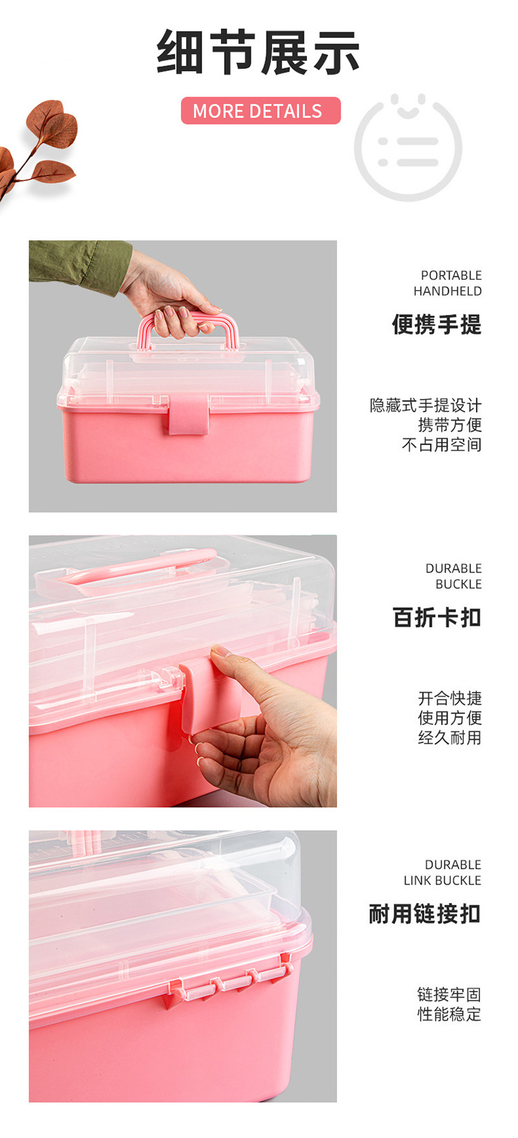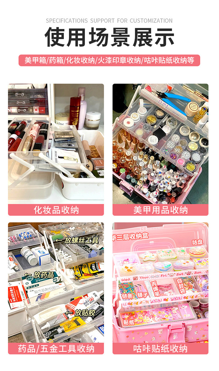 三层手提收纳箱折叠特大号咕咔工具箱美甲箱美术生杂物塑料收纳盒