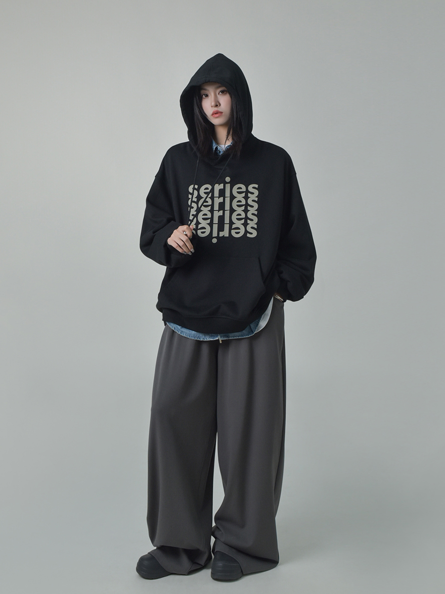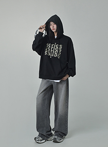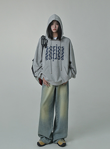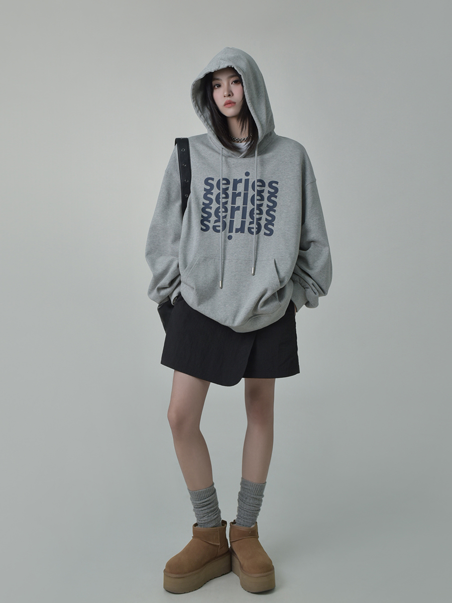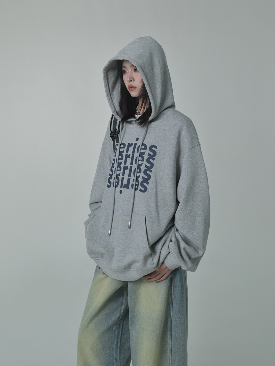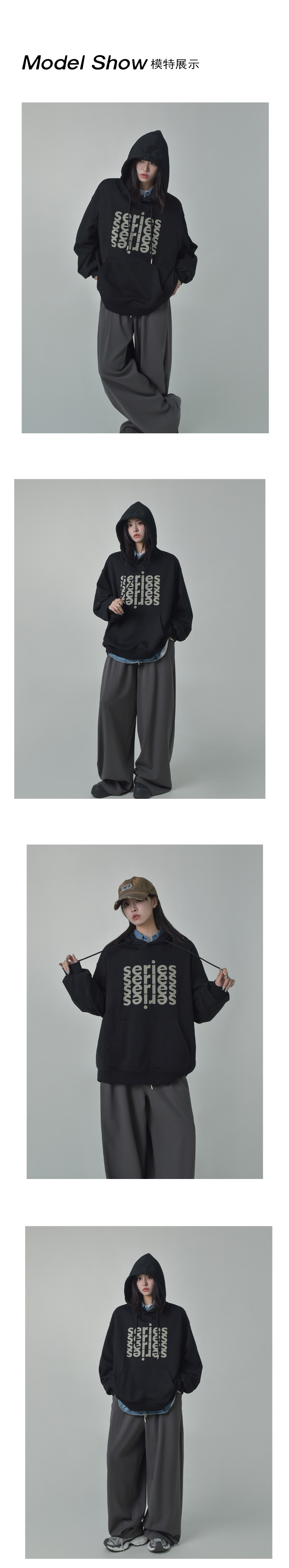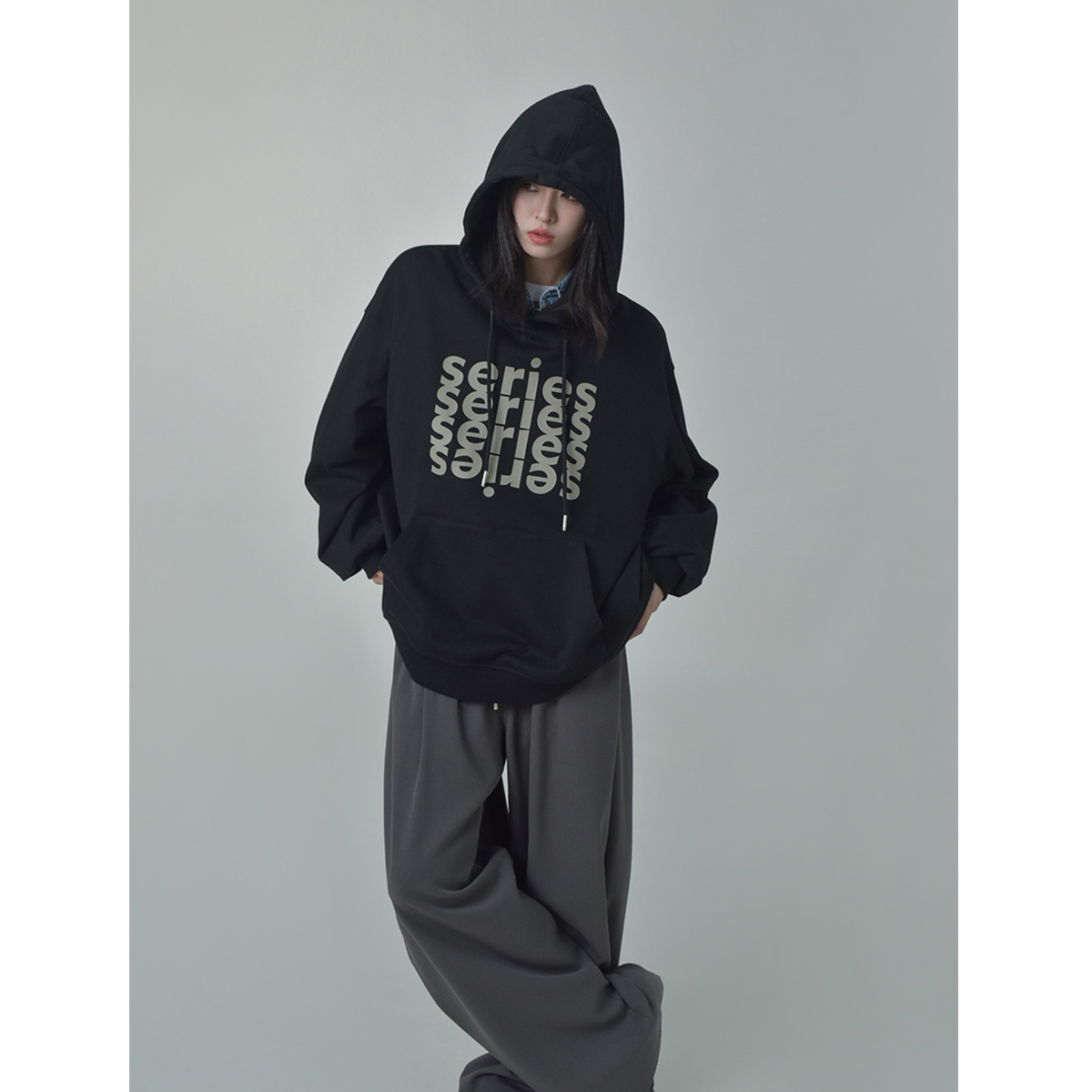 SIXI四喜家秋季 多層字母堆疊連帽運動衫女寬鬆運動風休閒套頭外套