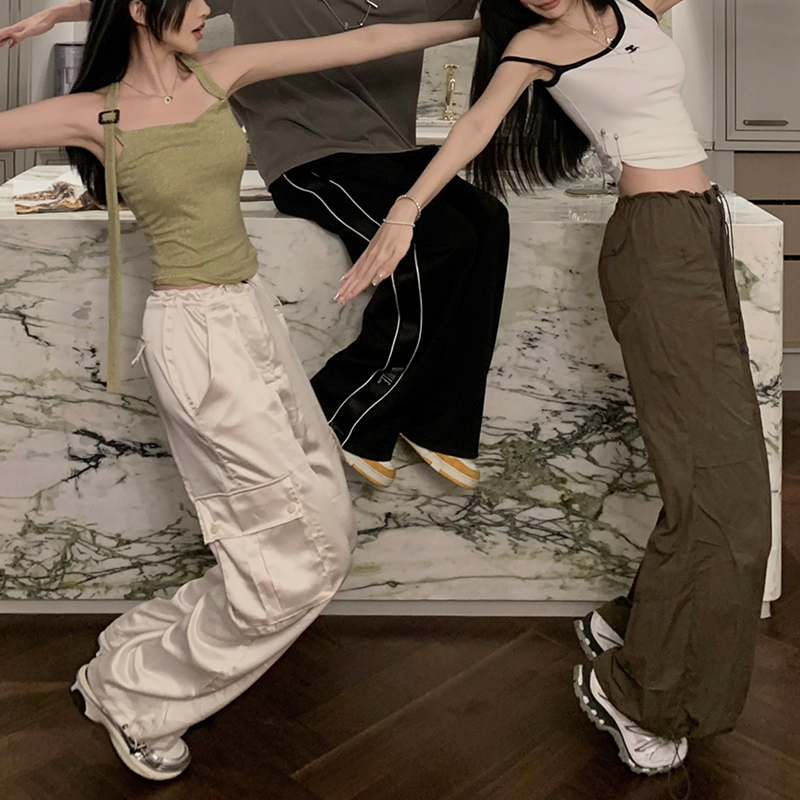 樊樊早安2023新款降落傘褲工裝褲女運動風低腰美式辣妹束腳休閒褲