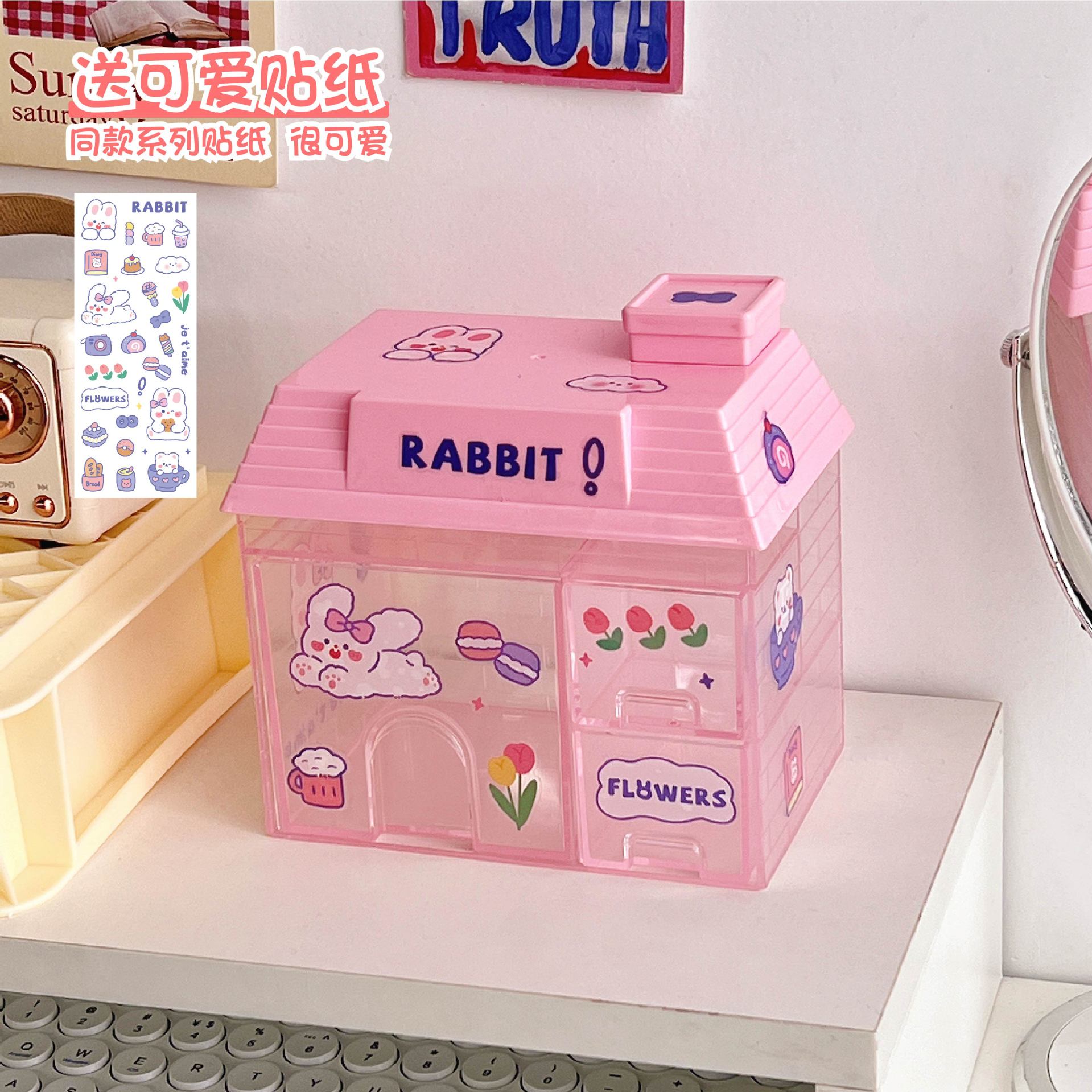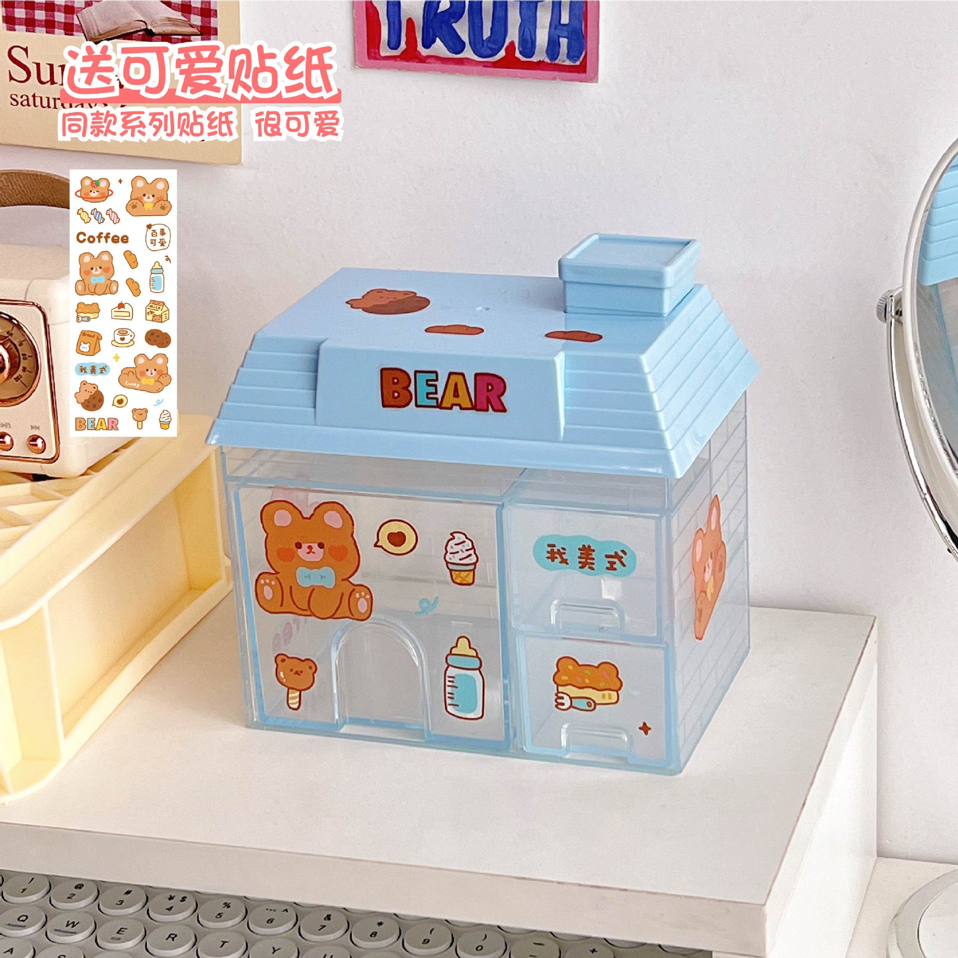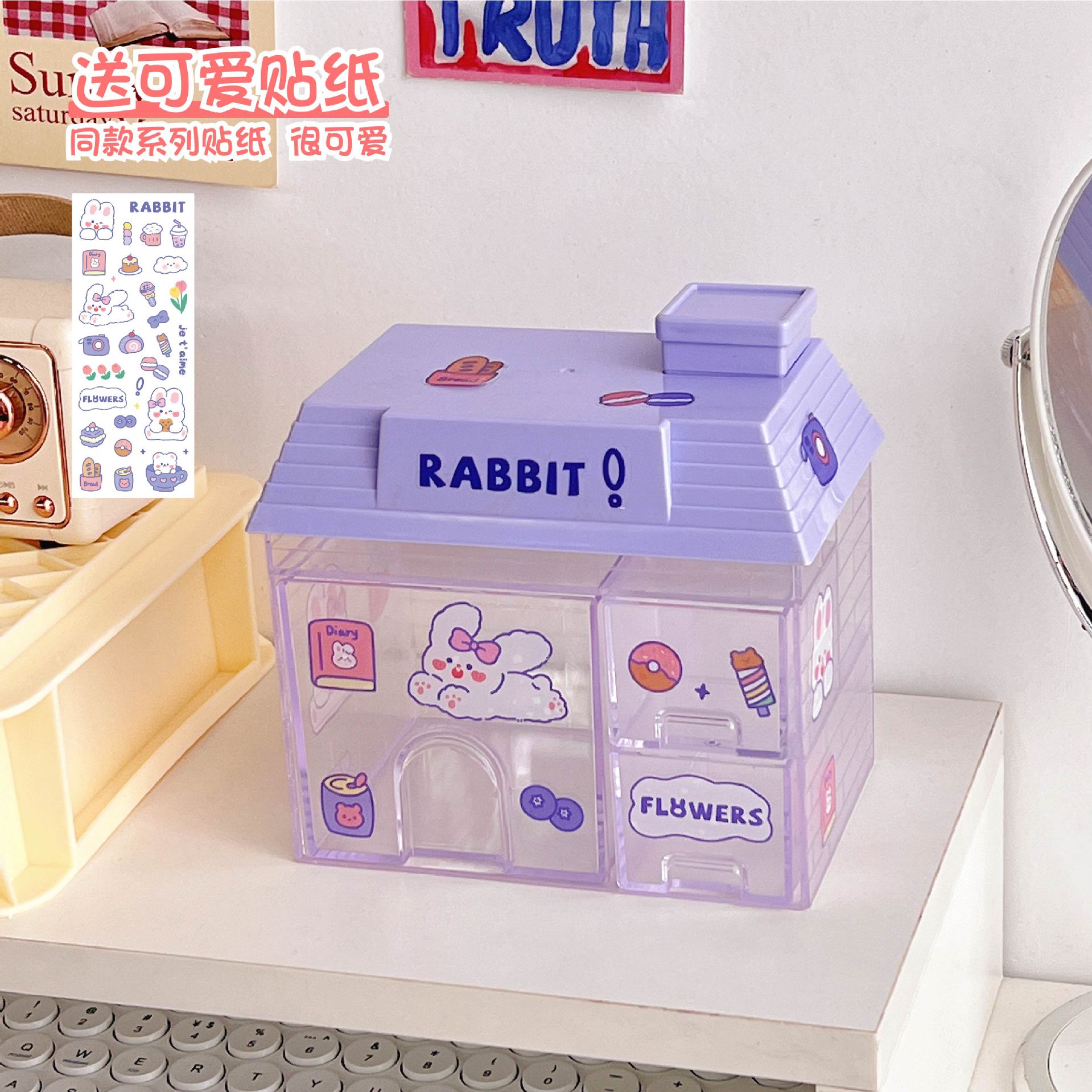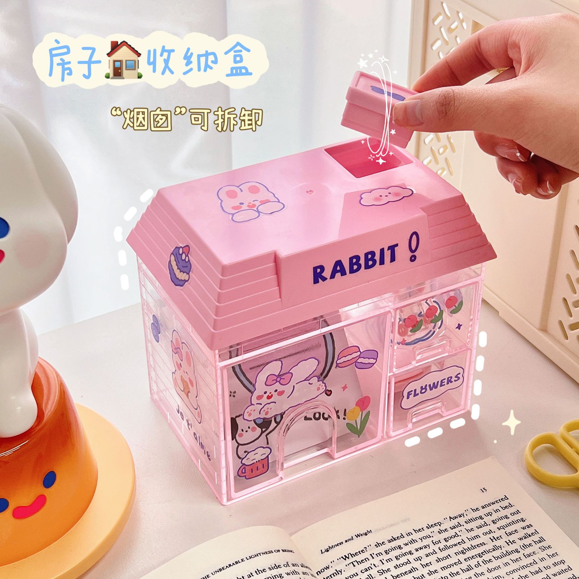 2023年新款小房子创意桌面整理收纳盒文具化妆品女生宿舍储物盒