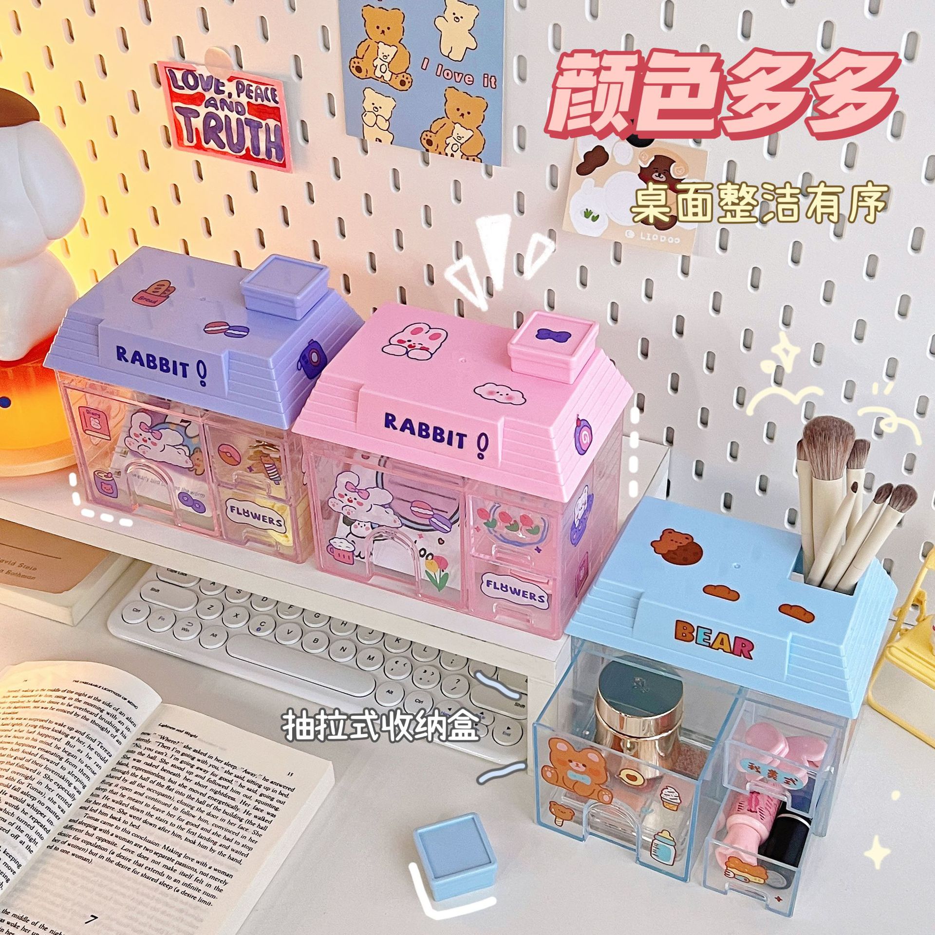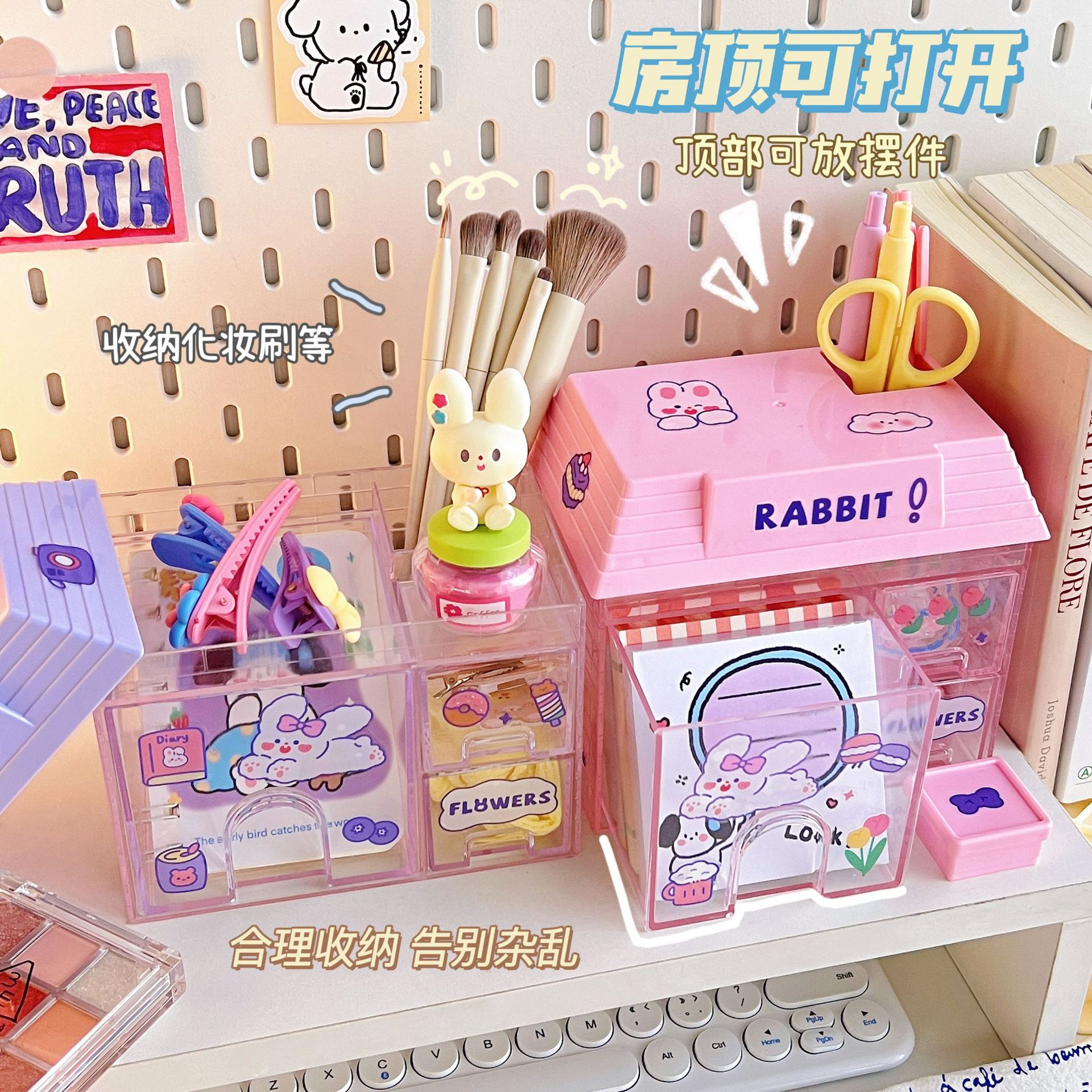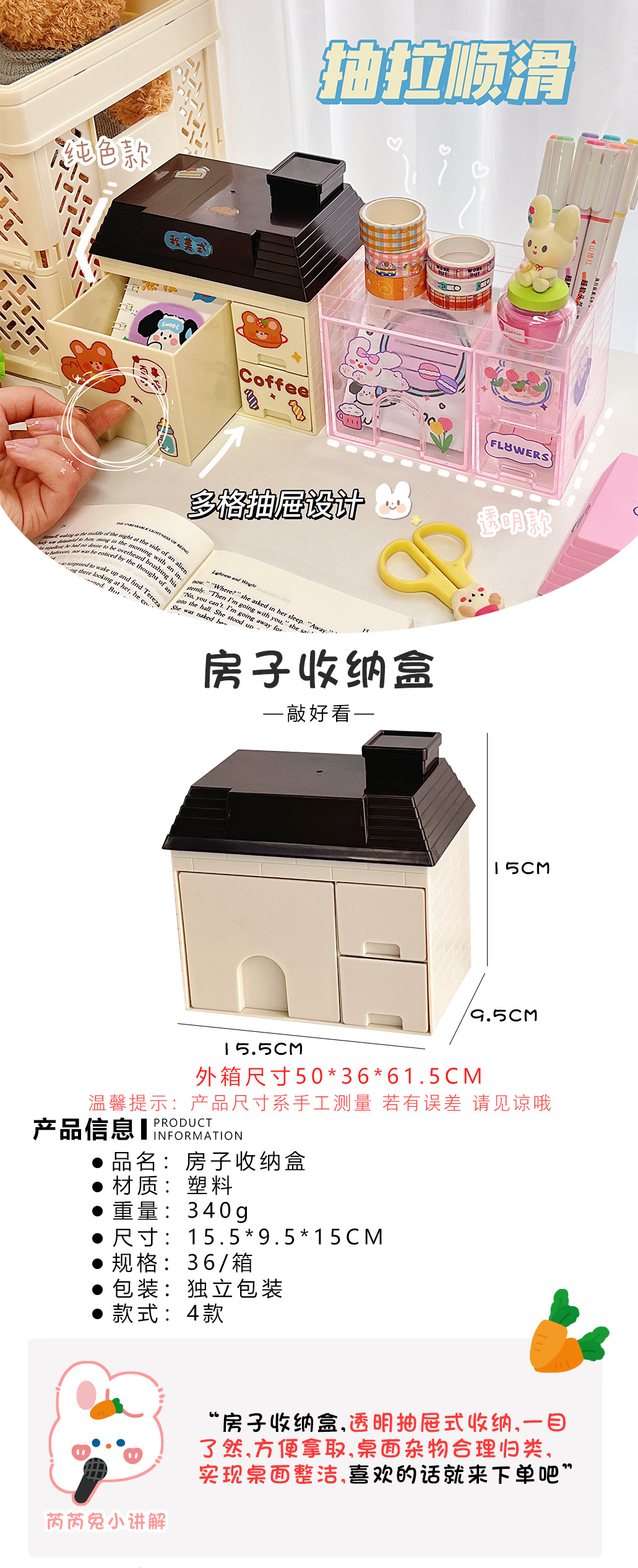 2023年新款小房子创意桌面整理收纳盒文具化妆品女生宿舍储物盒