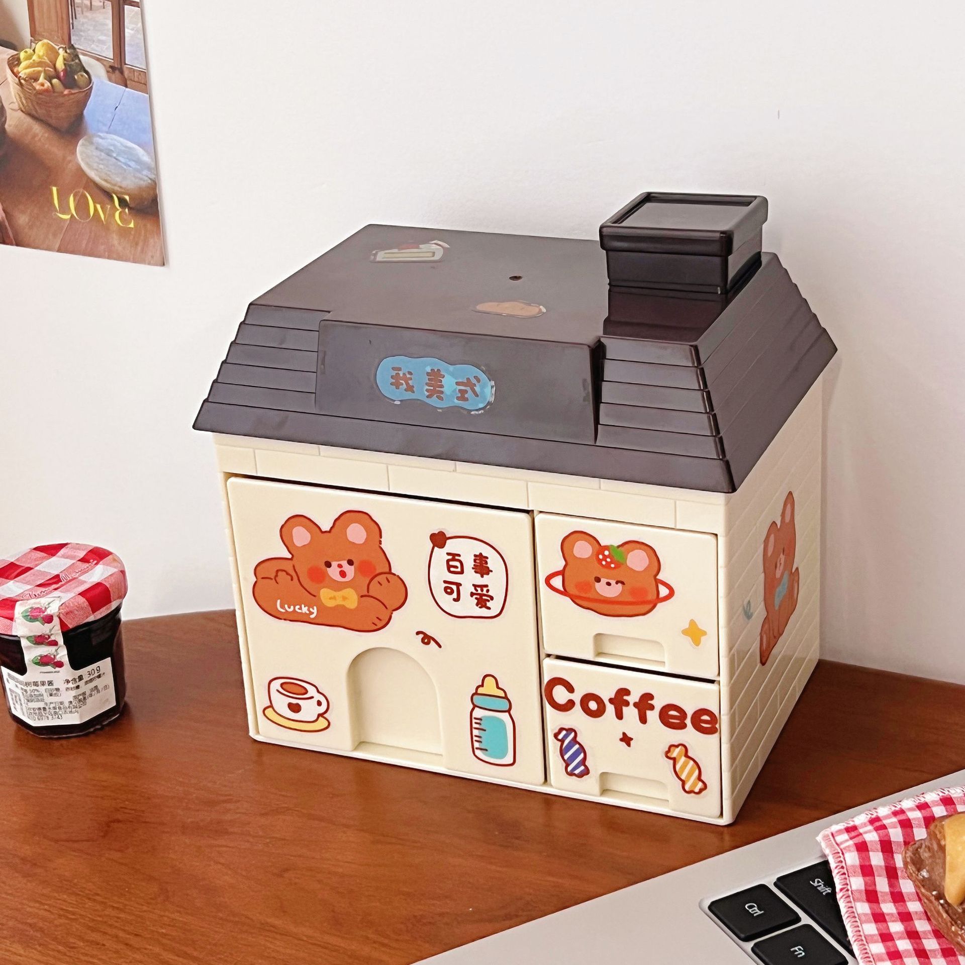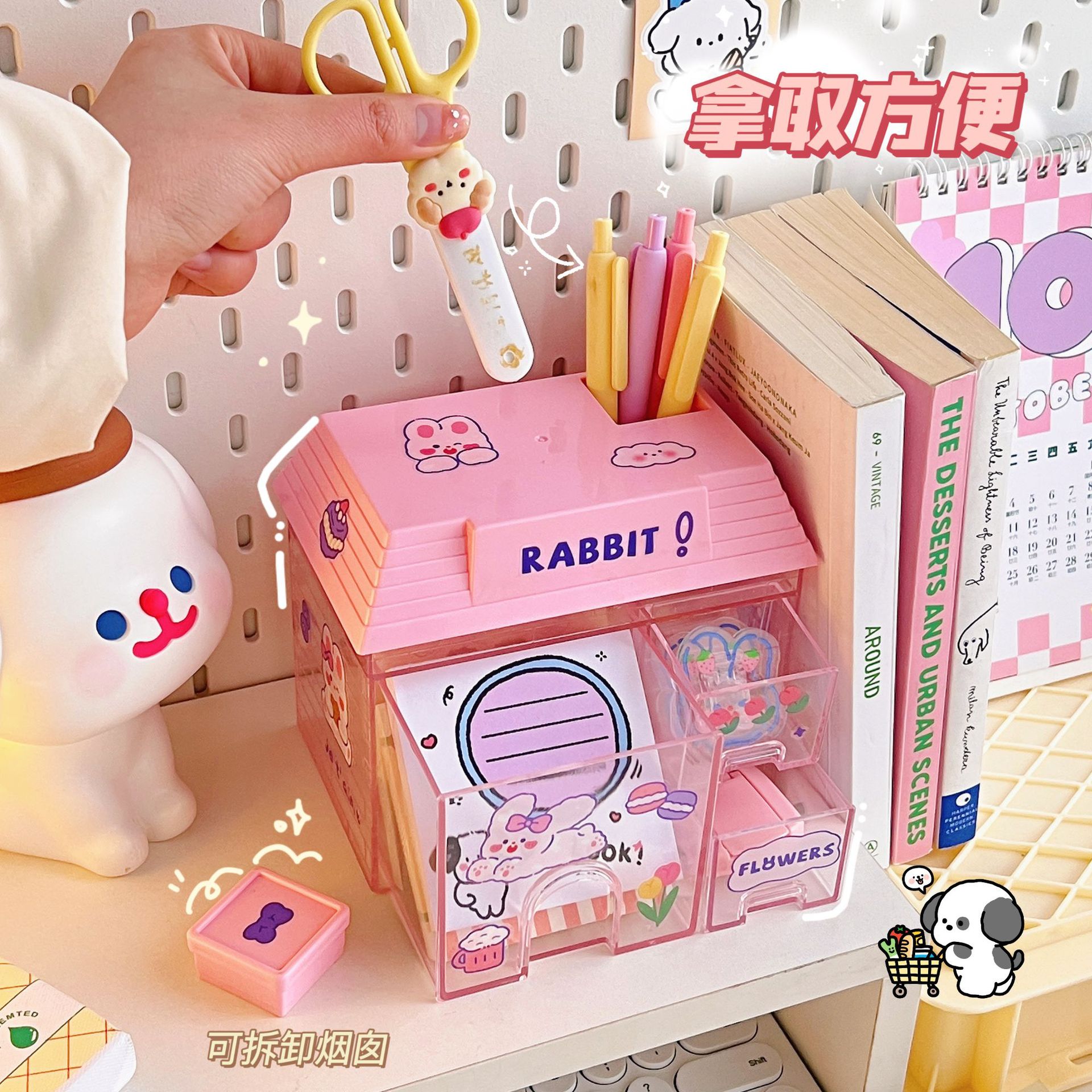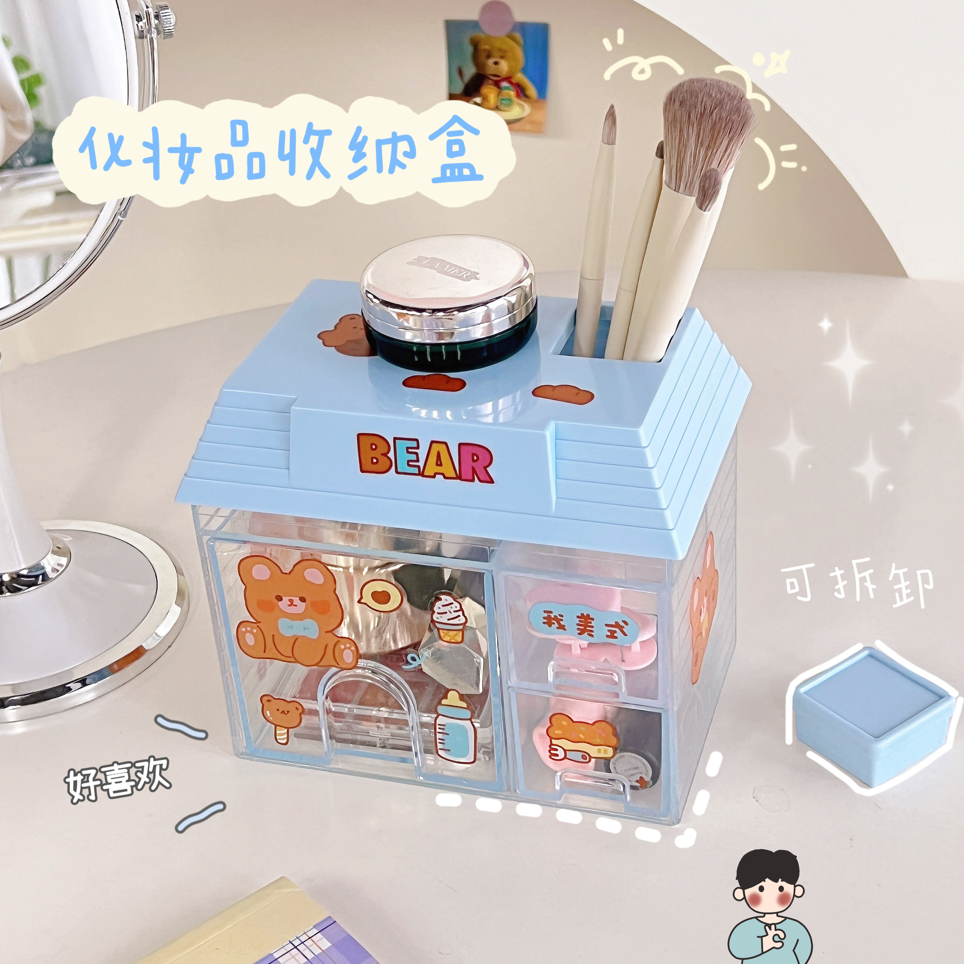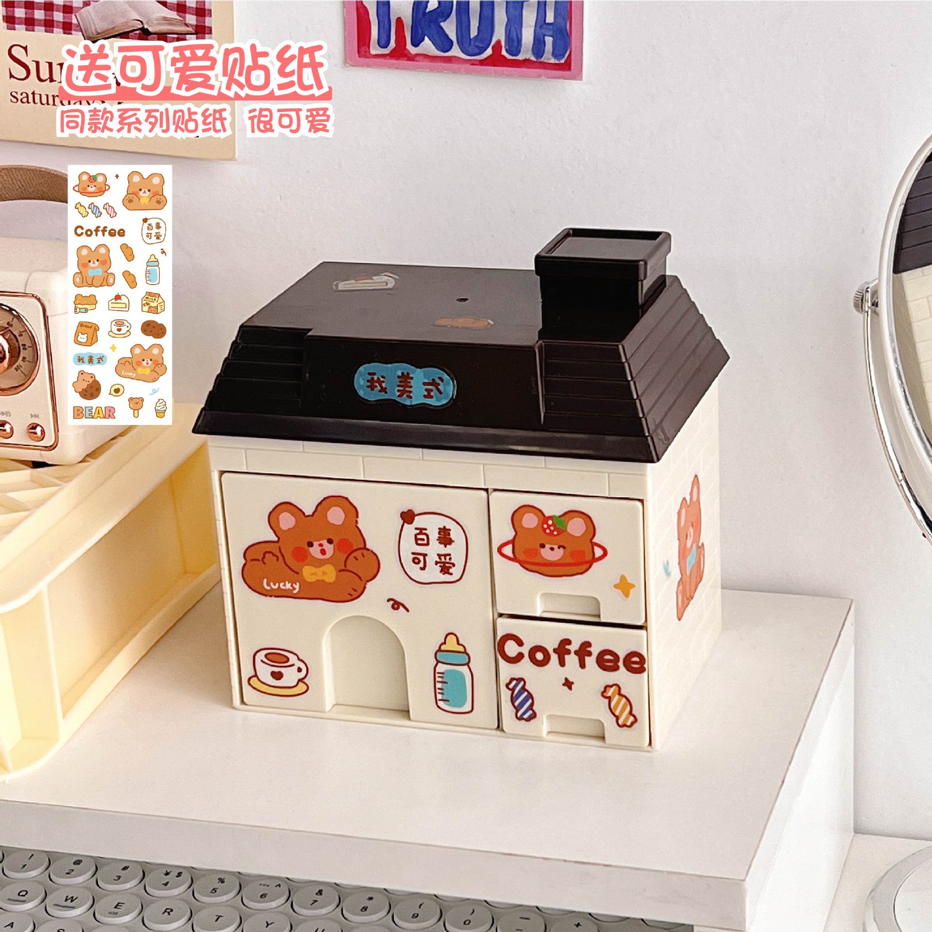 2023年新款小房子创意桌面整理收纳盒文具化妆品女生宿舍储物盒