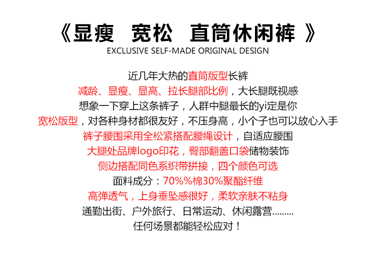 北京森林戶外2023新品直筒顯瘦寬鬆文藝森系休閒旅行闊腿長褲女式