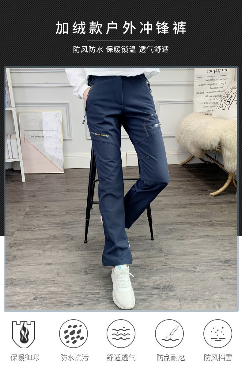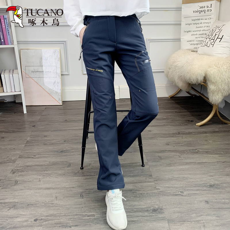 啄木鳥戶外衝鋒褲女防風防水冬季保暖長褲男加絨加厚登山滑雪褲新