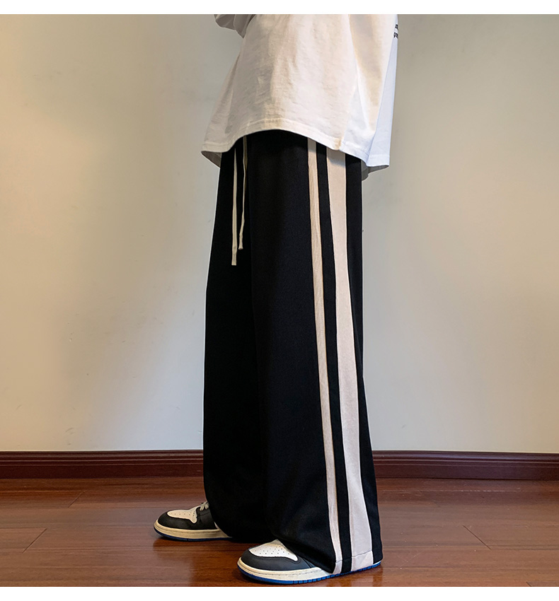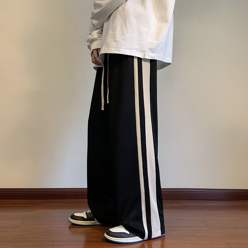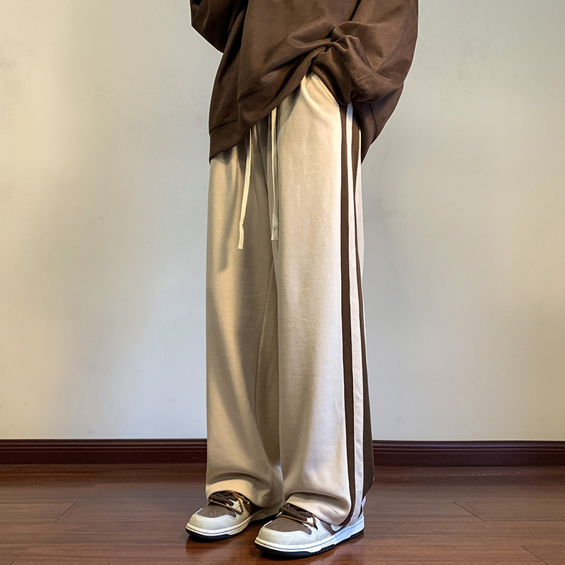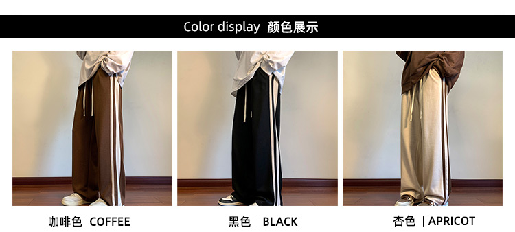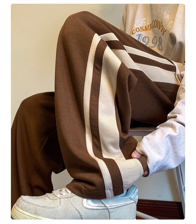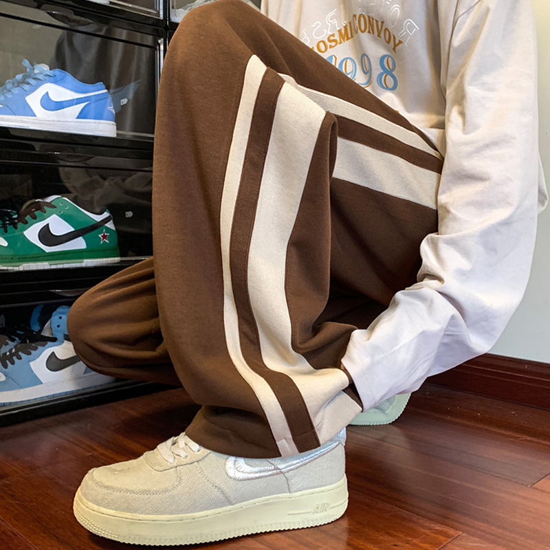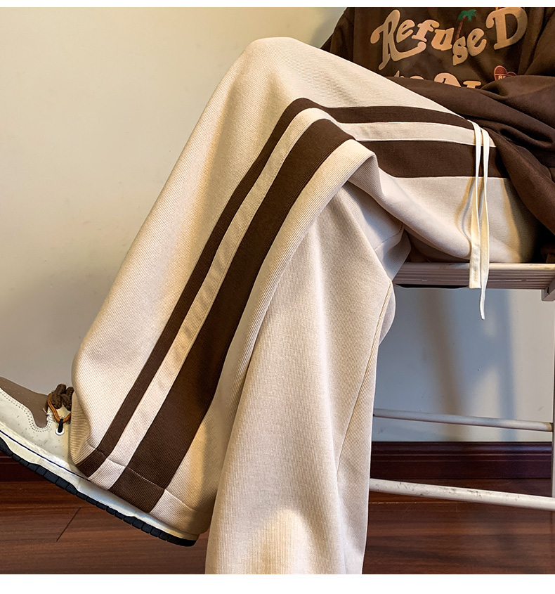 美式復古運動休閒褲女2023新款梨形身材褲子大尺碼高腰直筒寬褲潮