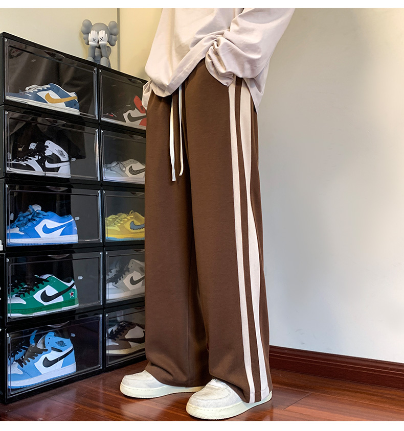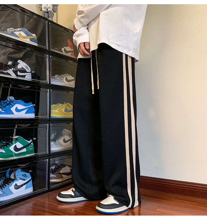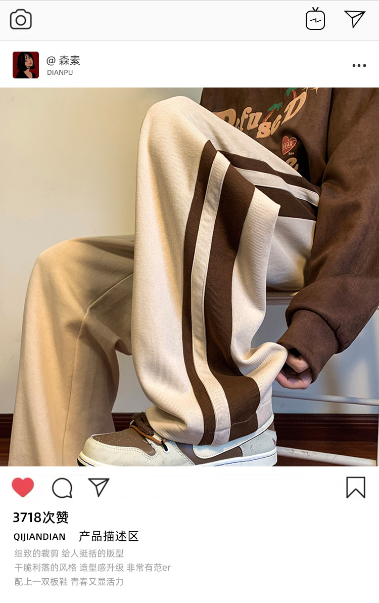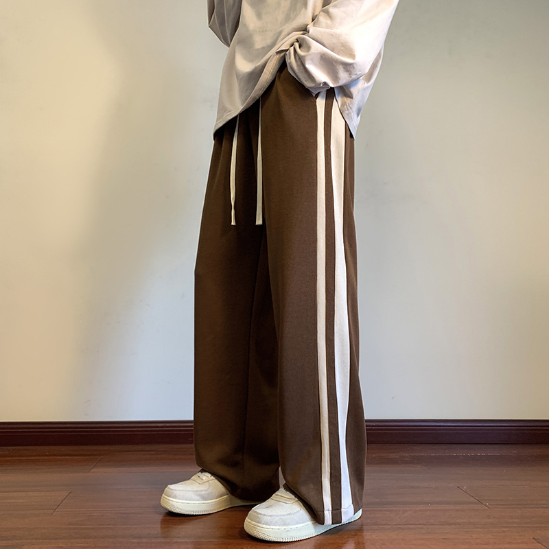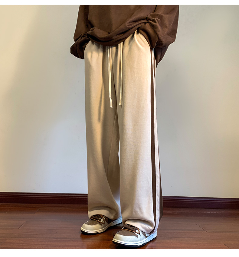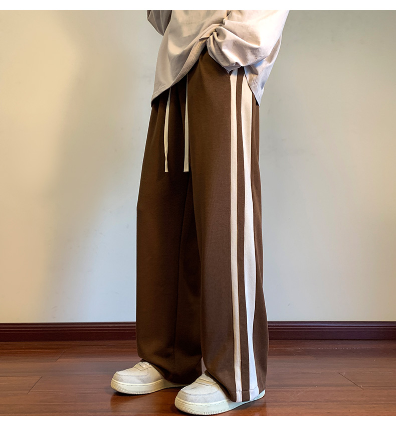 美式復古運動休閒褲女2023新款梨形身材褲子大尺碼高腰直筒寬褲潮