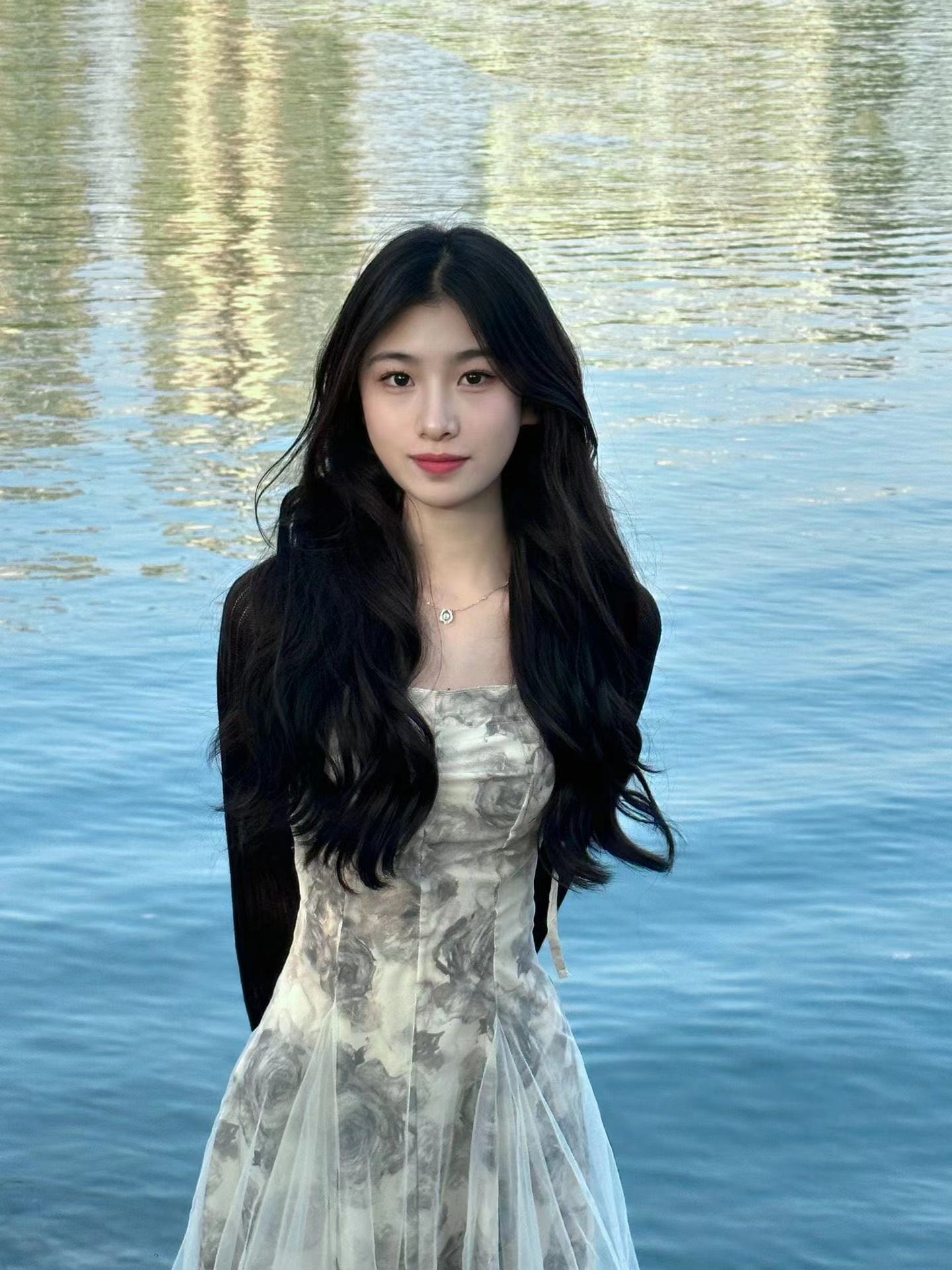顏色分類 水墨吊帶裙,黑色開衫