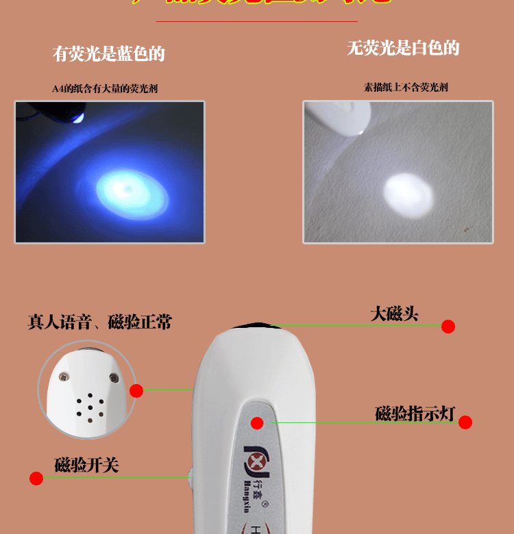 行鑫 验钞笔多功能小型磁验笔语音验钞机迷你荧光紫光验钞灯 批发